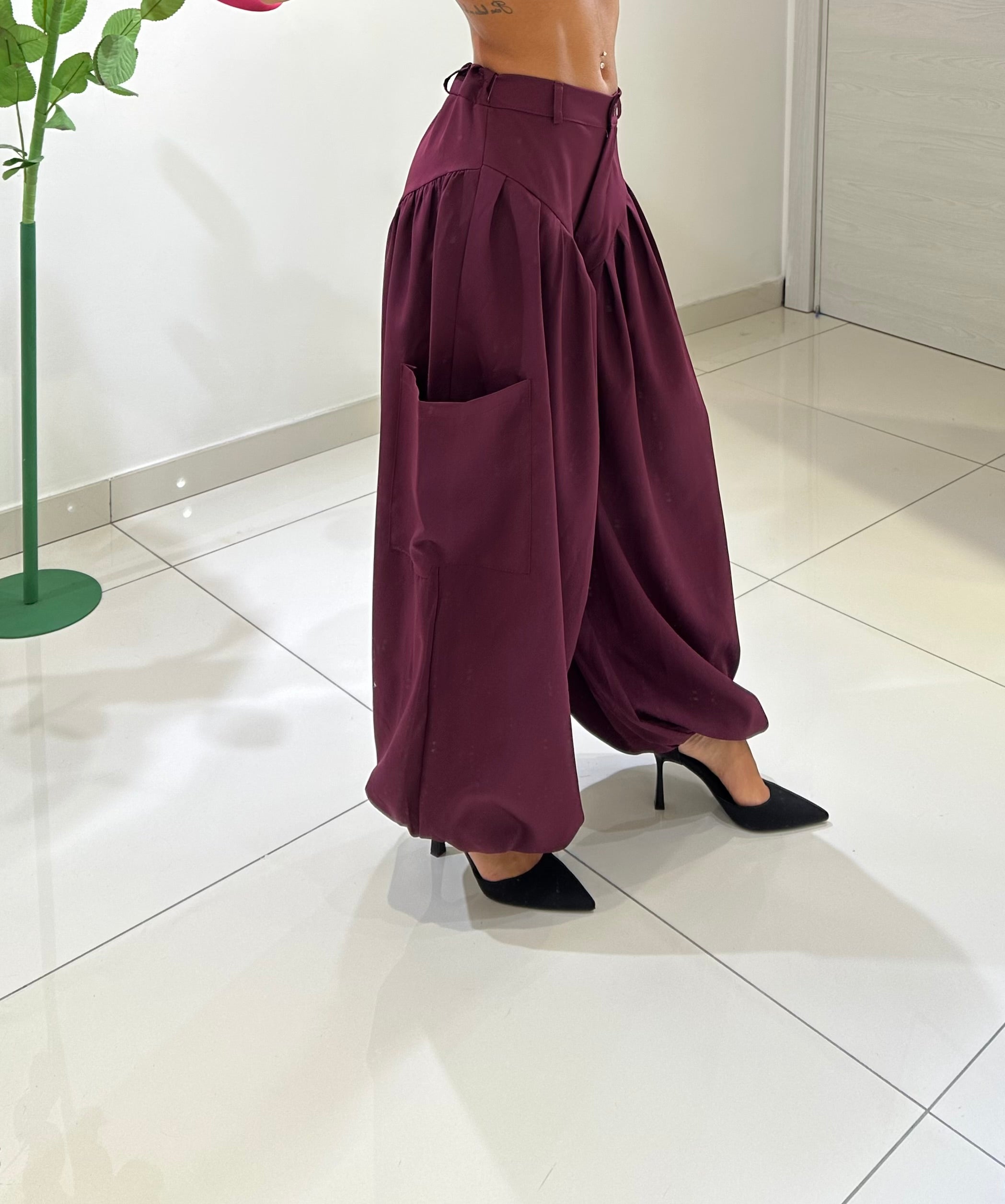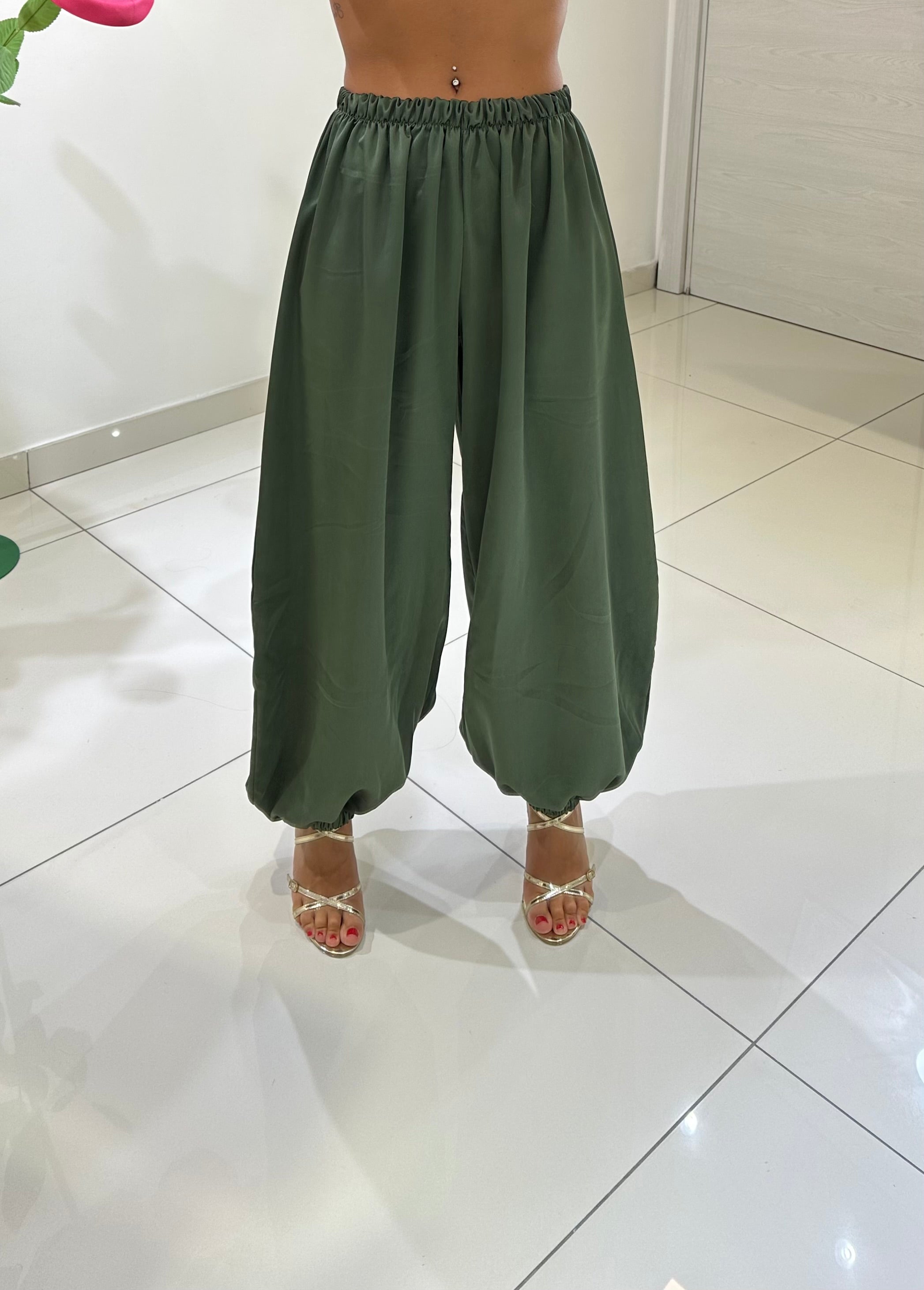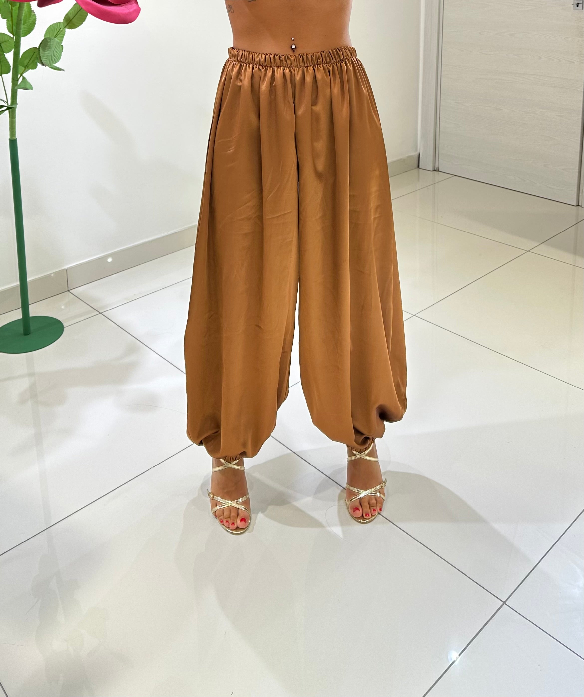 PANTALONE BALLOON IN RASO LUCIDO, ELASTICO IN VITA E ALLA CAVIGLIA. IN VARI COLORI
