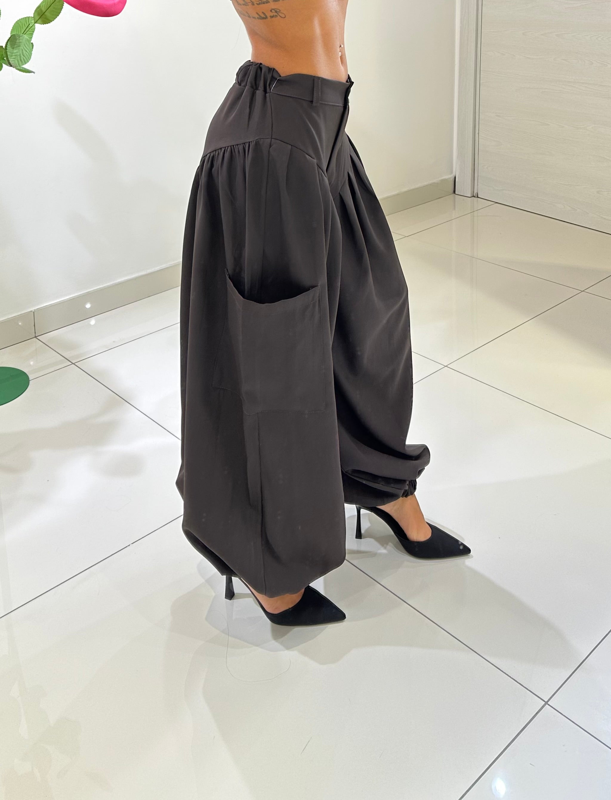 PANTALONE CARGO BALLOON, CON PIEGHE SUL DAVANTI, ELASTICO SUL RETRO E ALLA CAVIGLIA. IN VARI COLORI