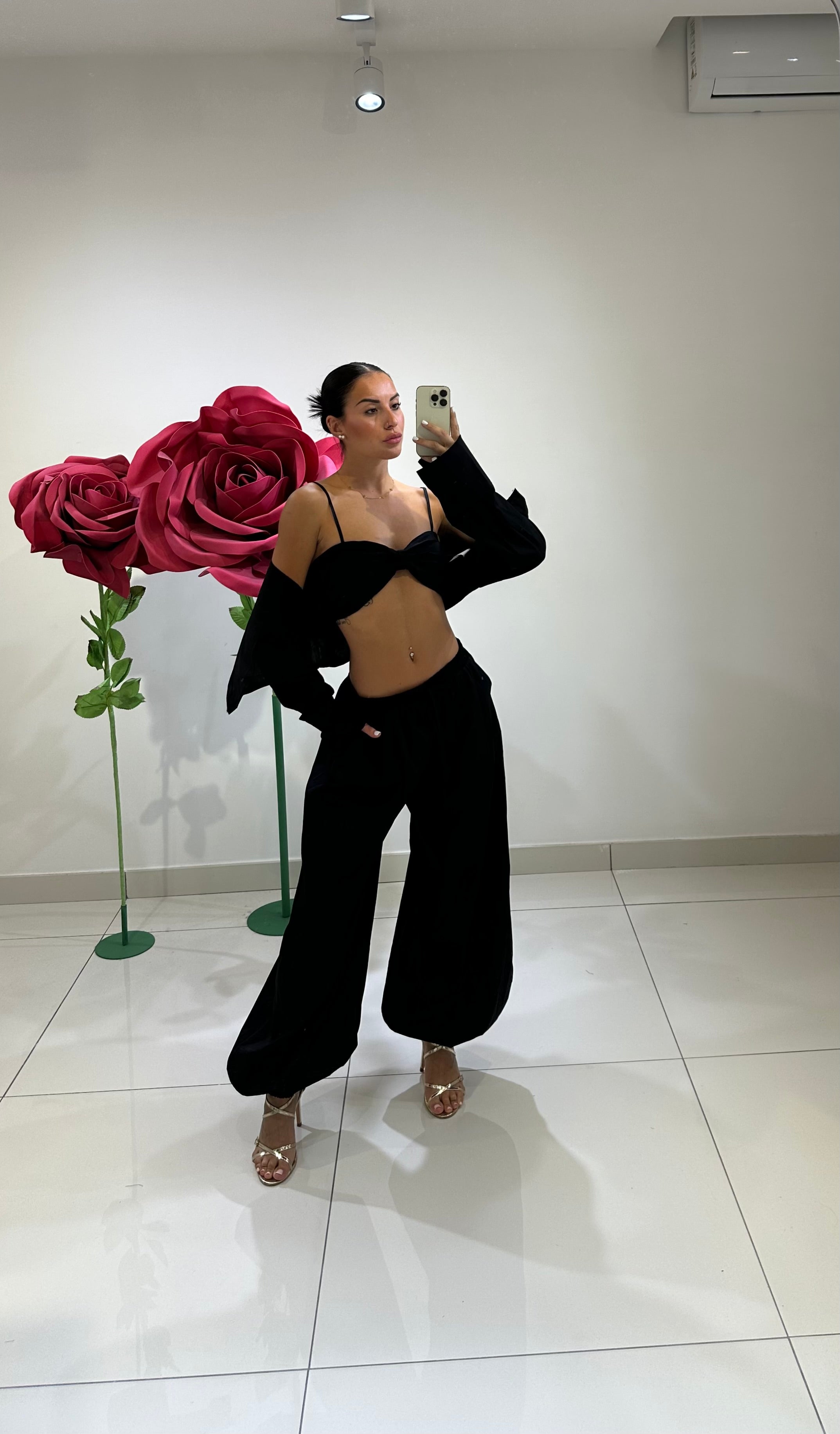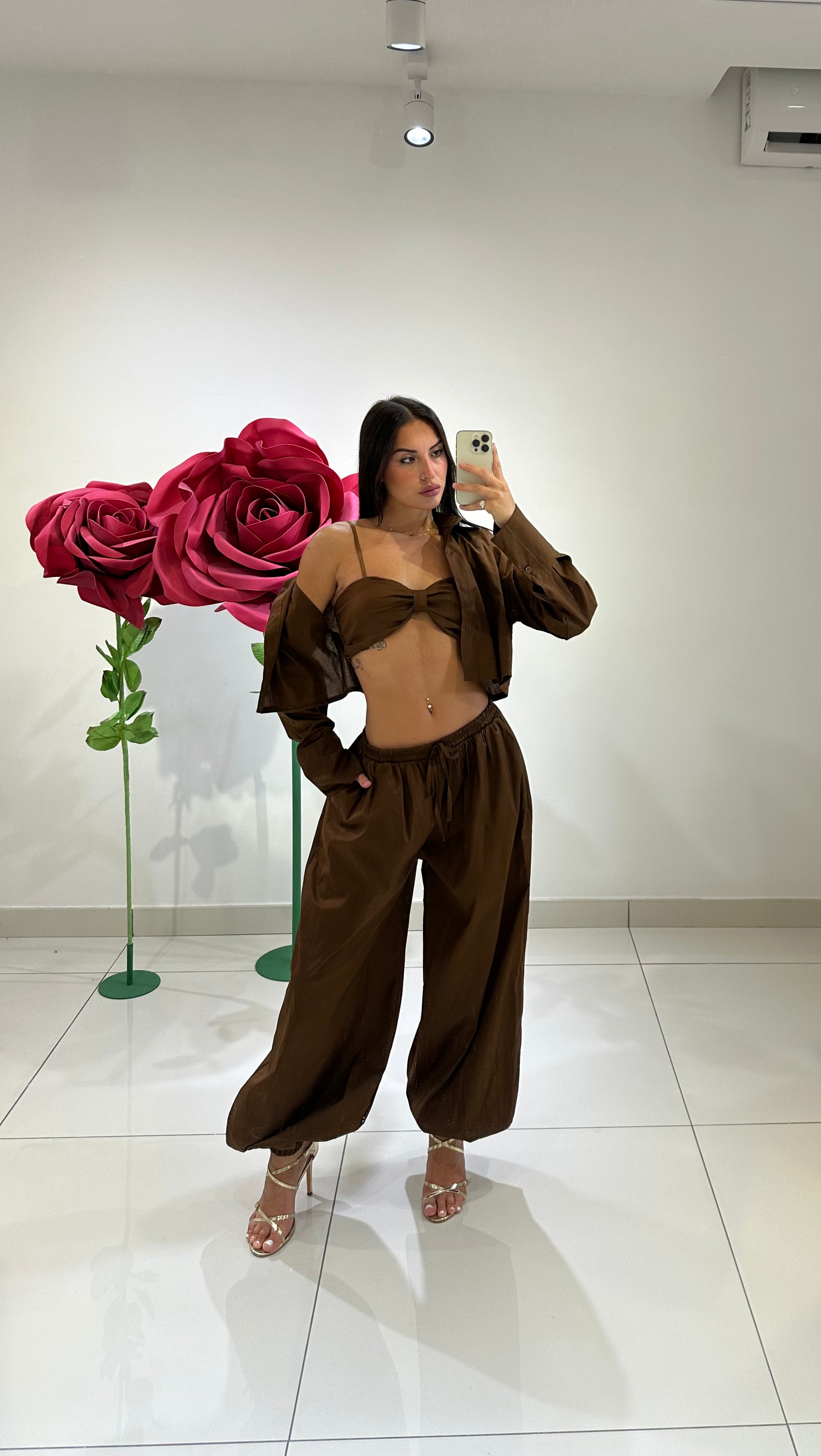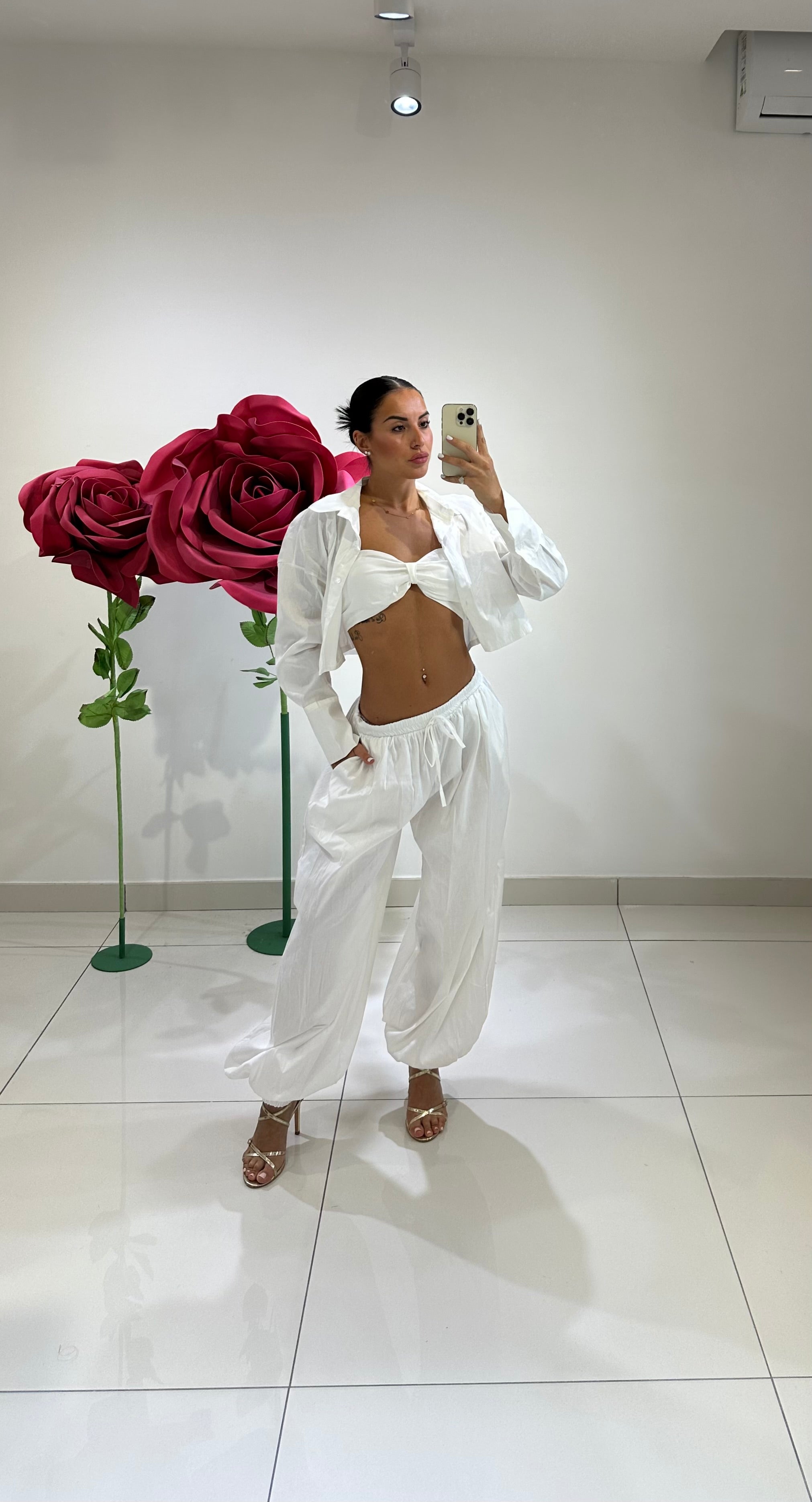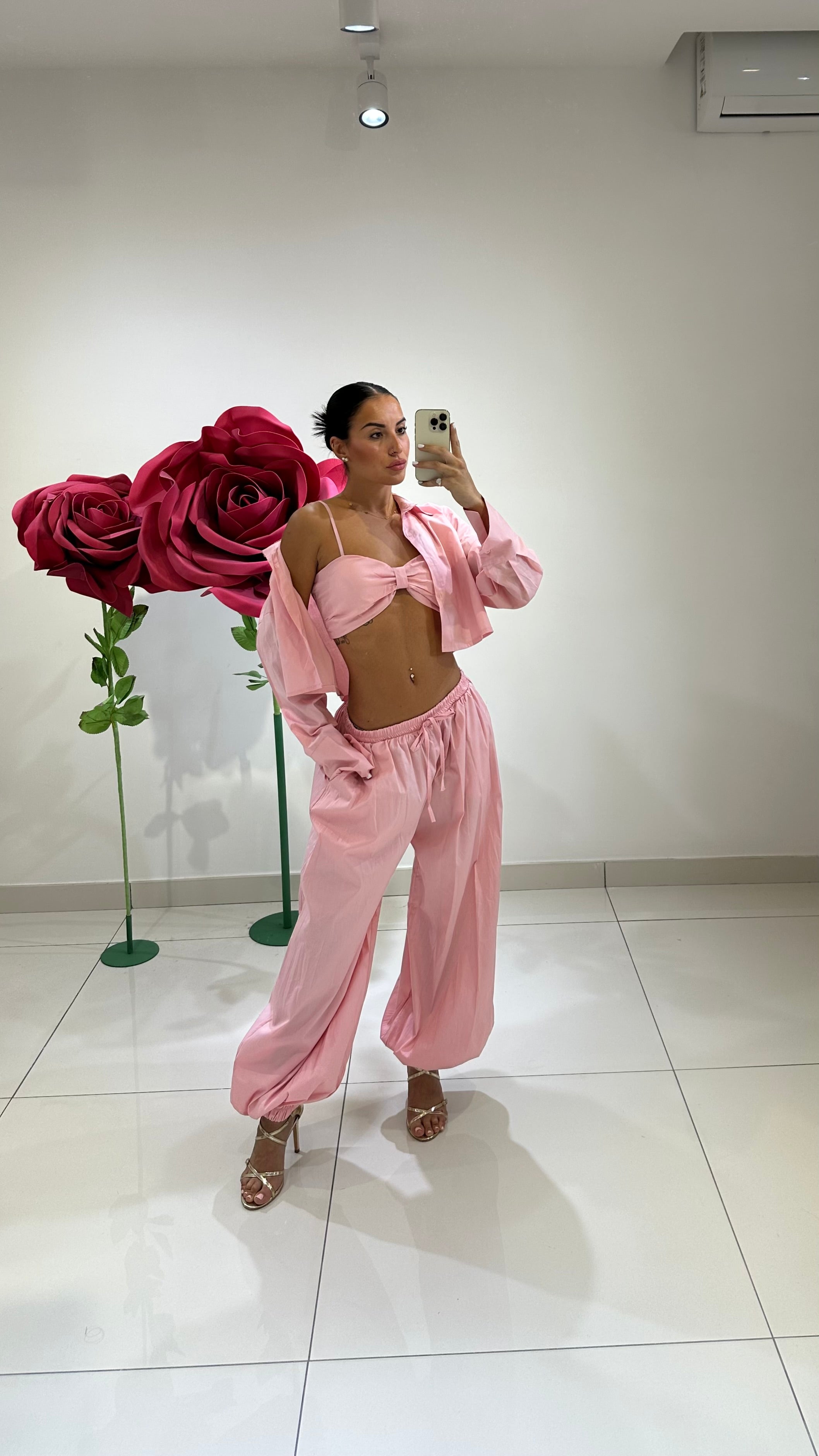 SET IN COTONE CON TOP A FIOCCO, COPPE PREFORMATE, CAMICIA CROP E PANTALONE BALLON. IN VARI COLORI