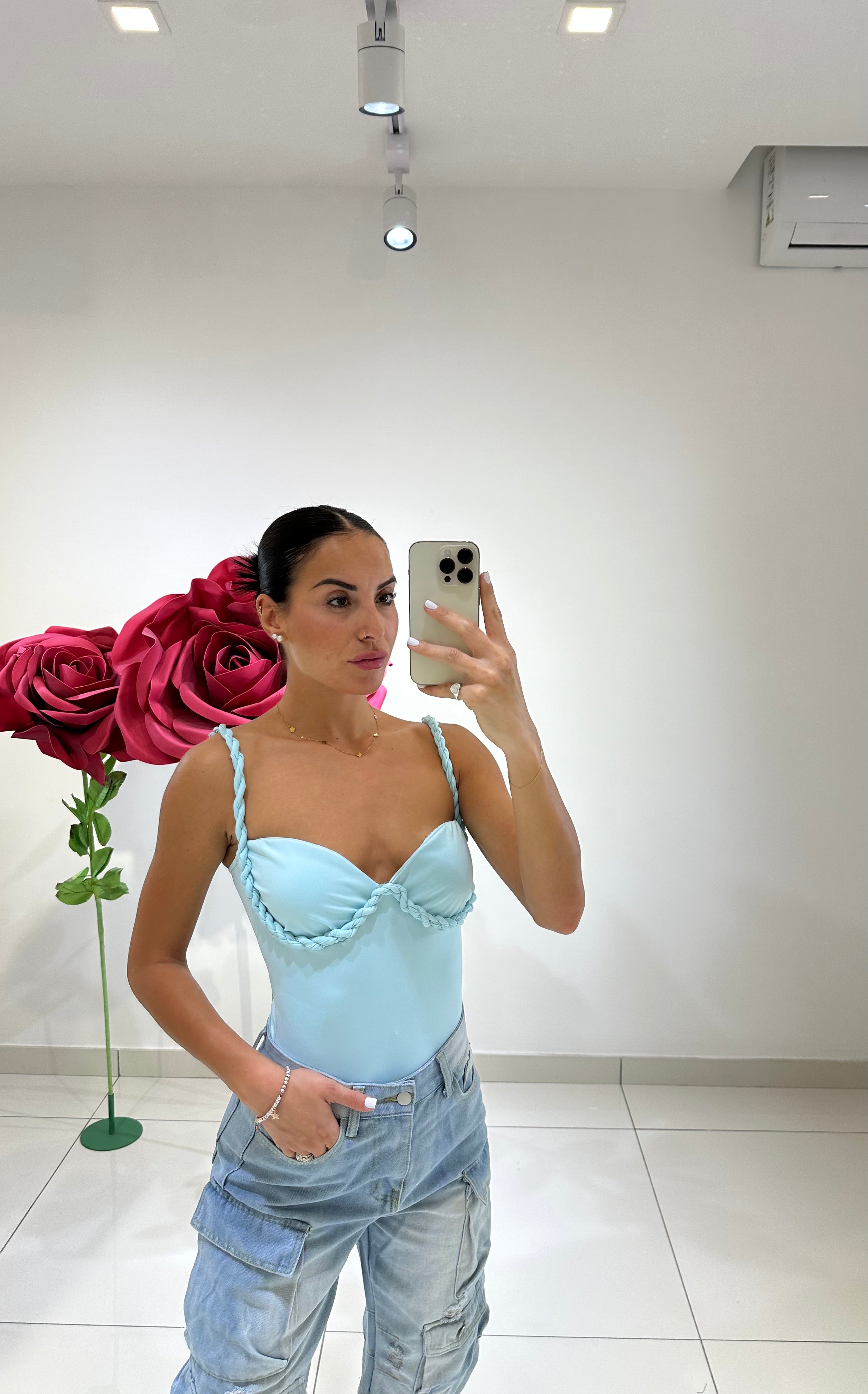 BODY IN LYCRA CON COPPE INCLUSE E DETTAGLIO TRECCIA, IN VARI COLORI
