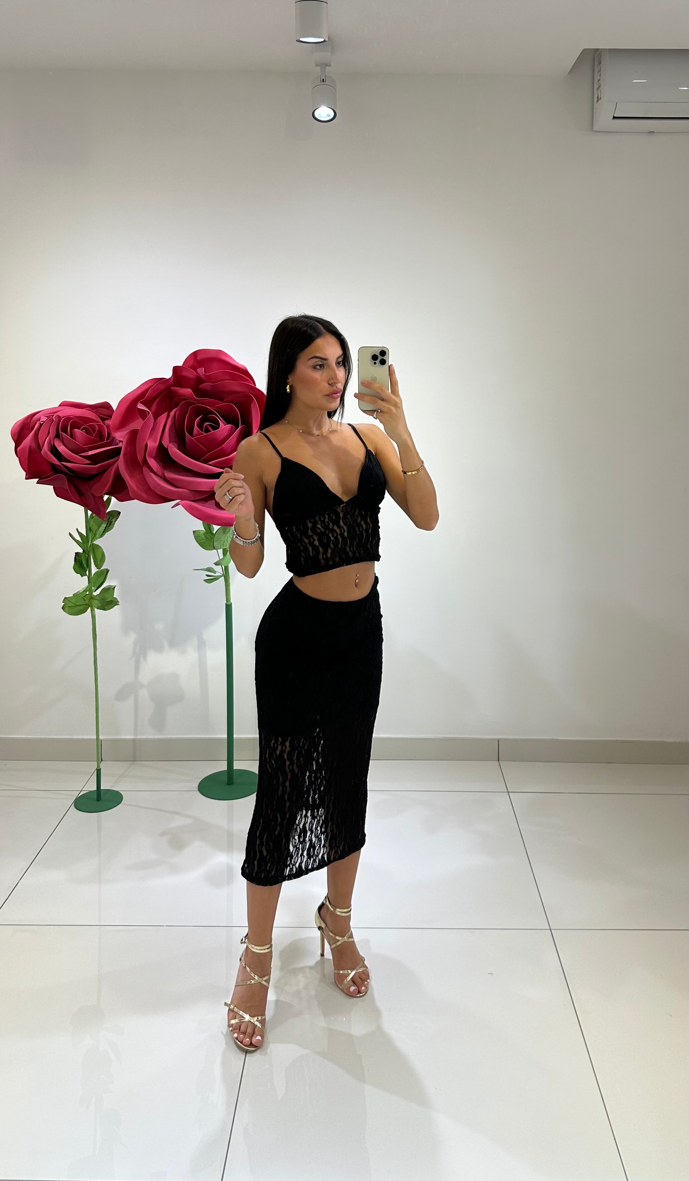 COORSET IN PIZZO, TOP CON COPPE E GONNA VITA ALTA CON ELASTICO. IN VARI COLORI