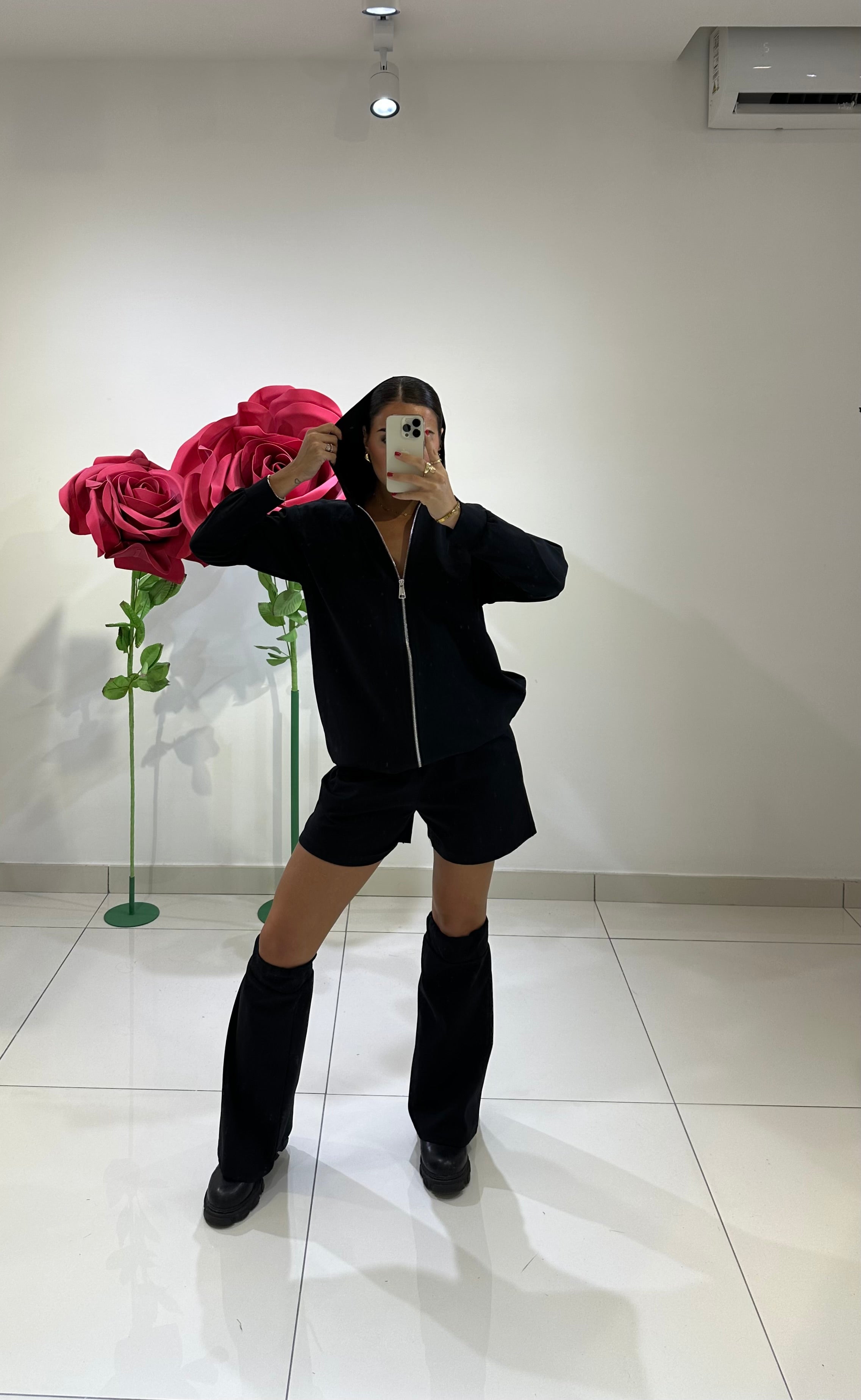 COORDINATO COMPOSTO DA FELPA CROP OVER CON ELASTICO UN VITA E AI POLSINI ,ZIP CENTRALE E TASCHINI LATERALI, PANTALONE CON ELASTICO IN VITA E GAMBA DRITTA....