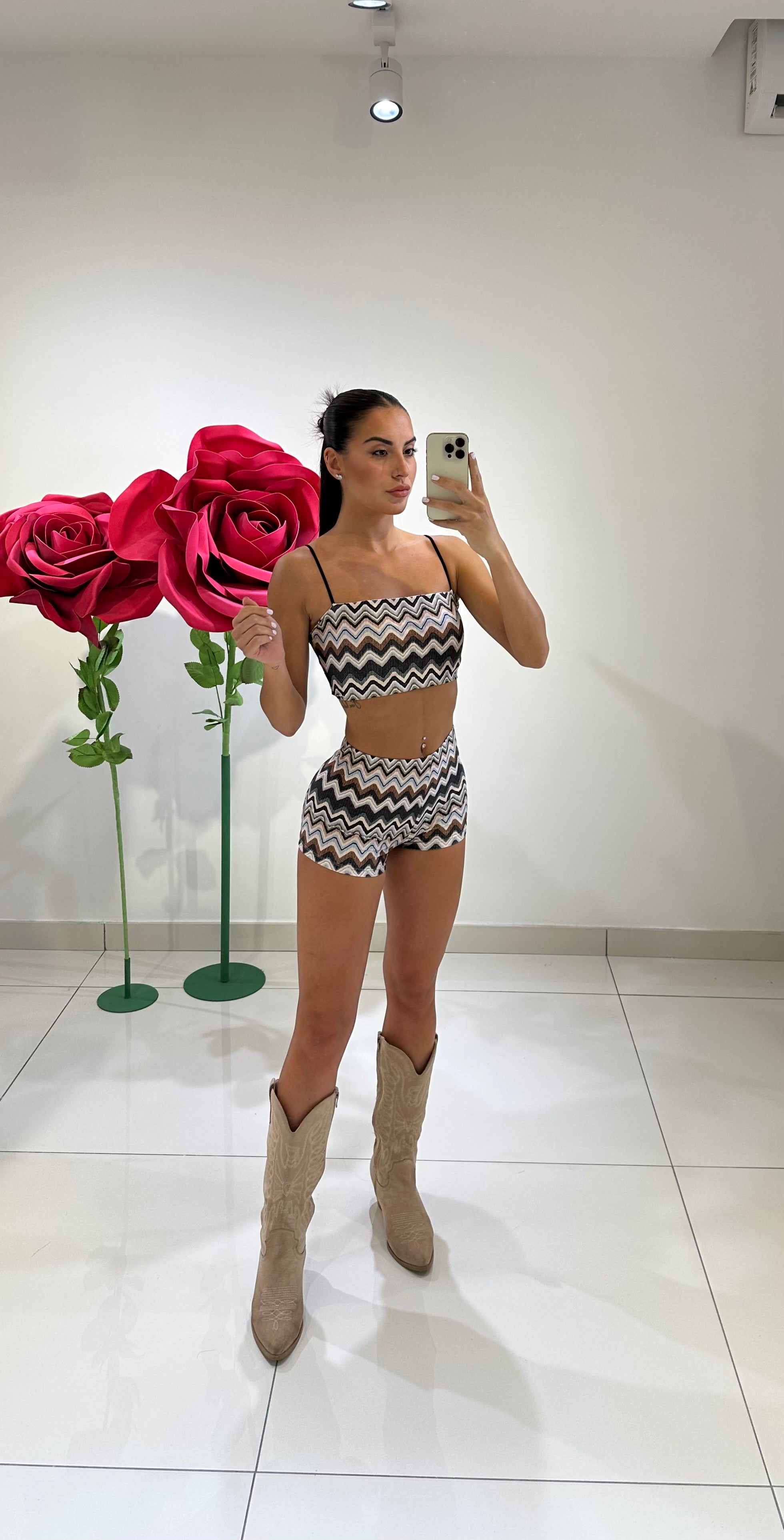 COORDSET IN LYCRA A FANTASIA, TOP E SHORTS, IN VARI COLORI