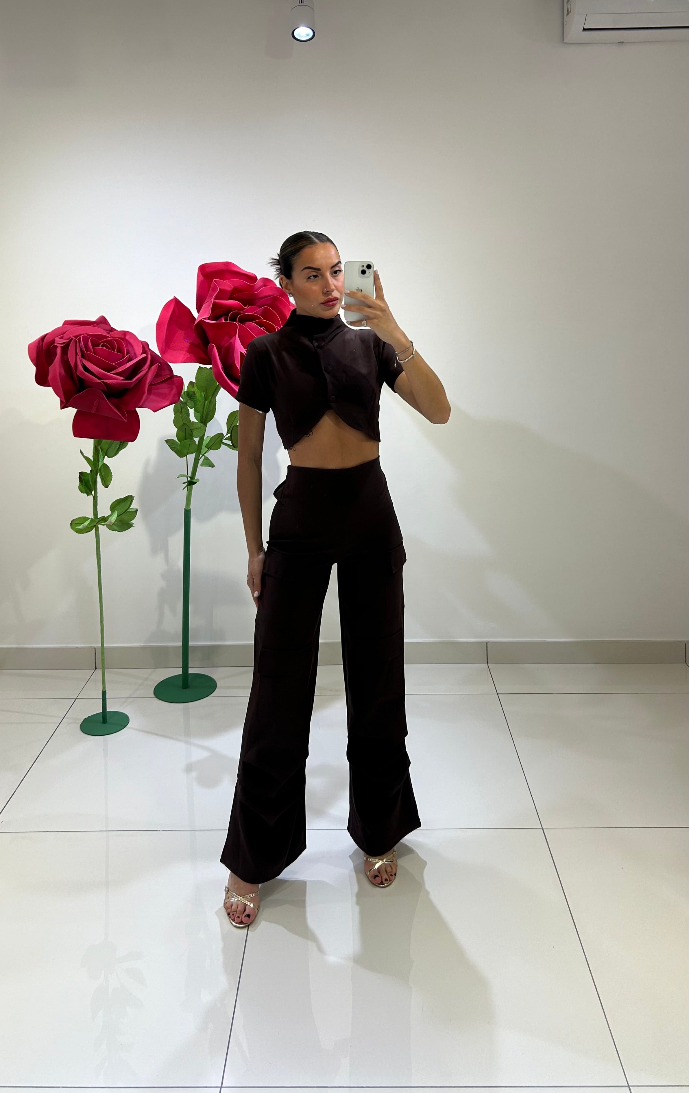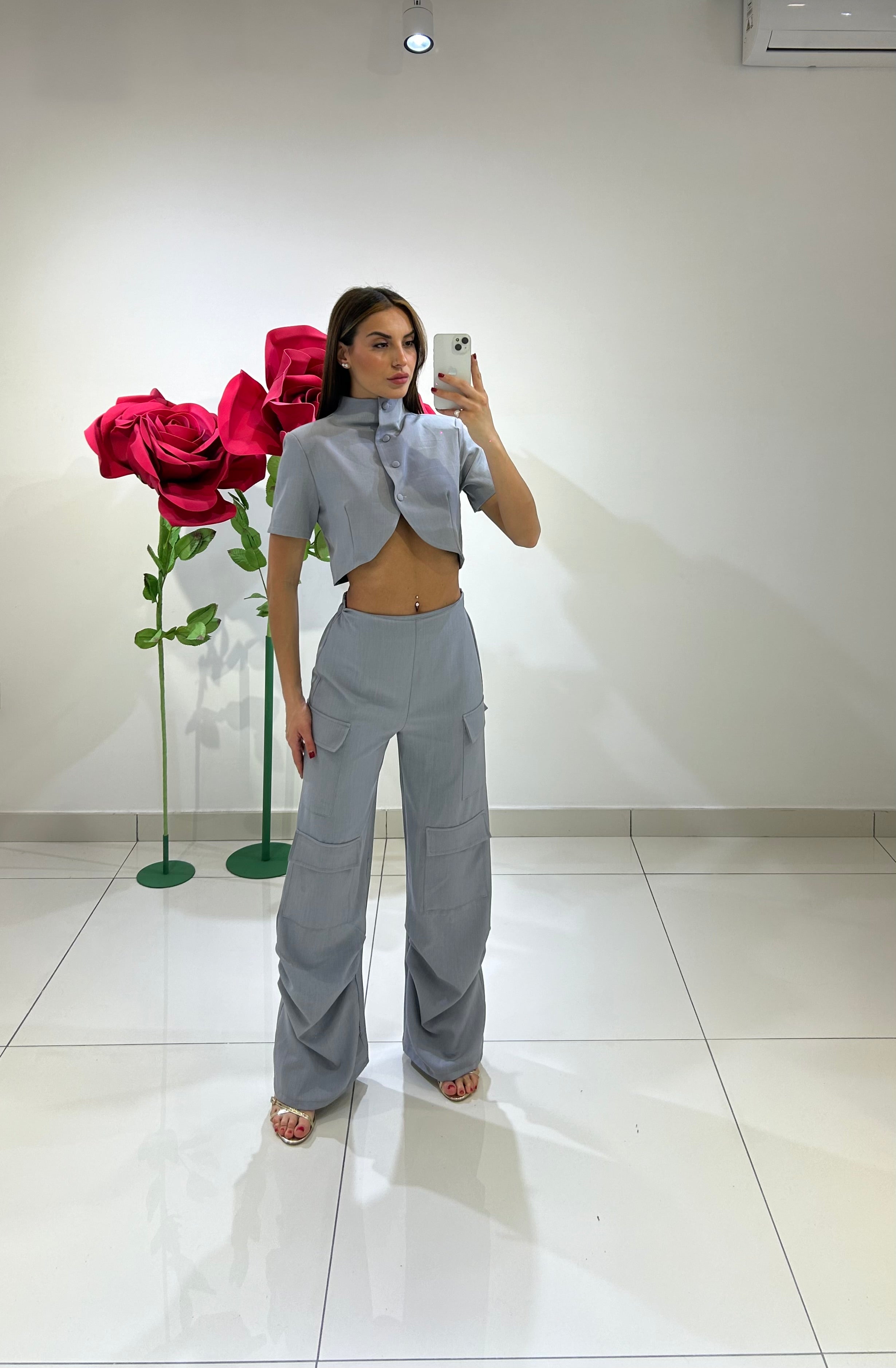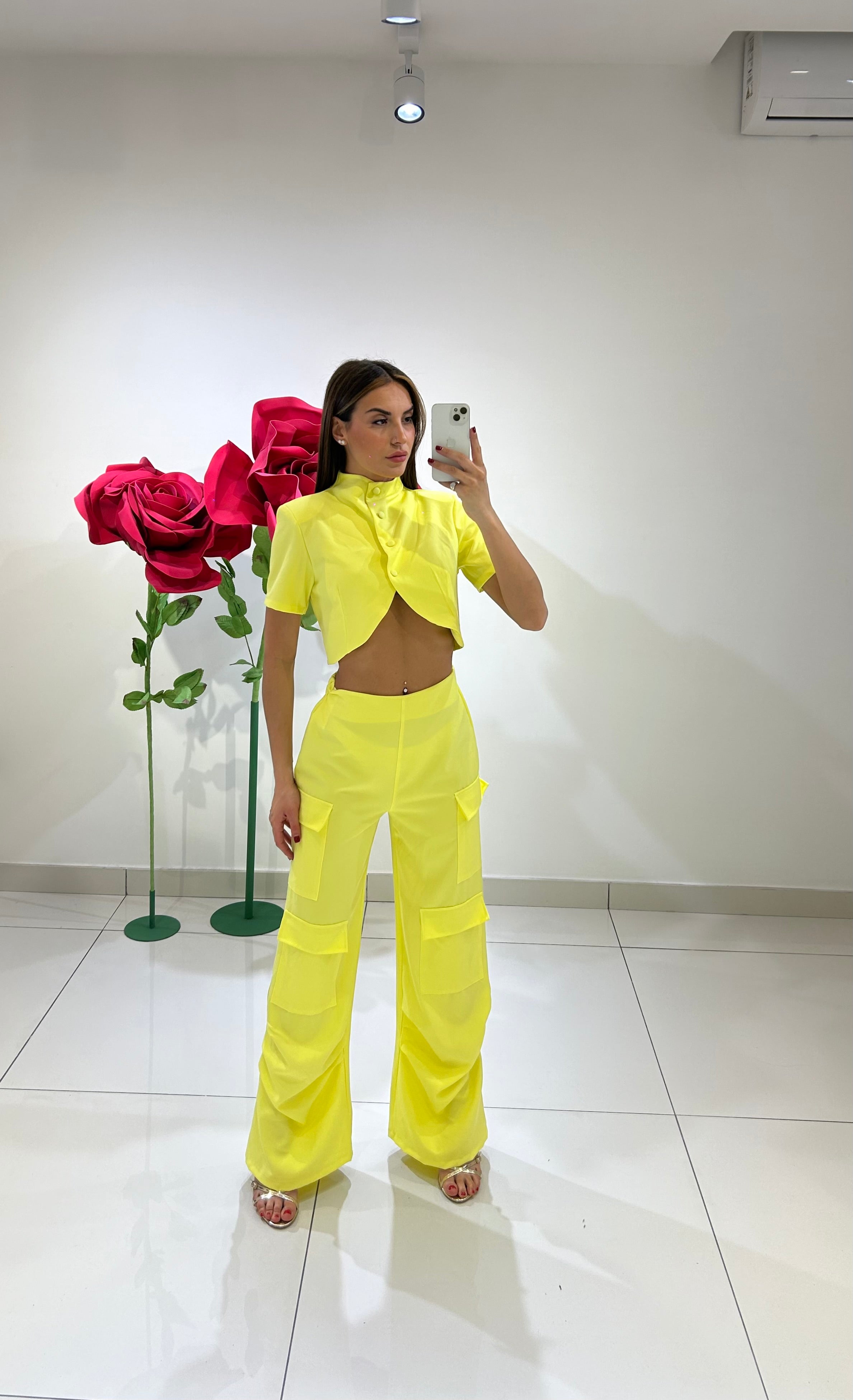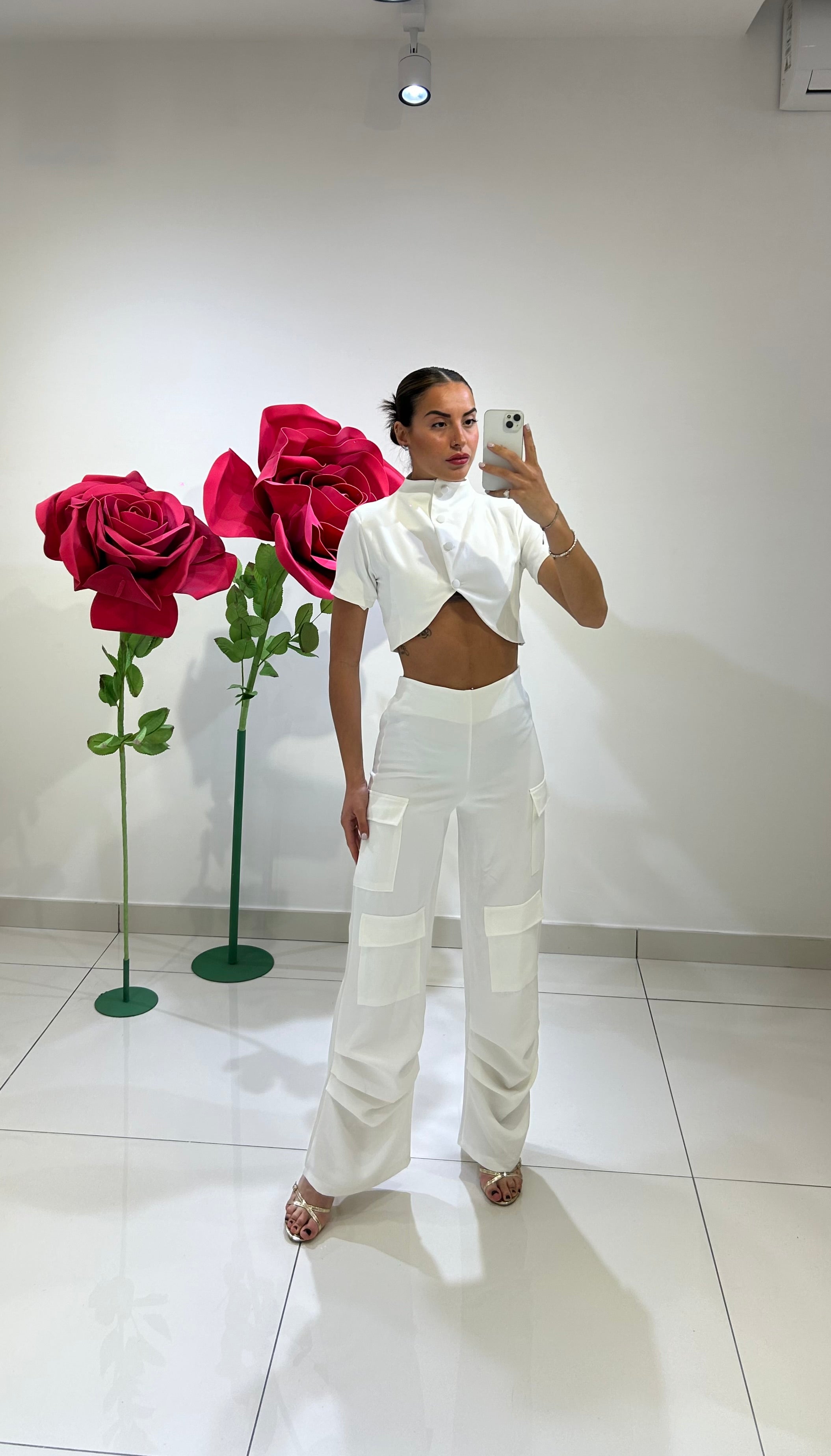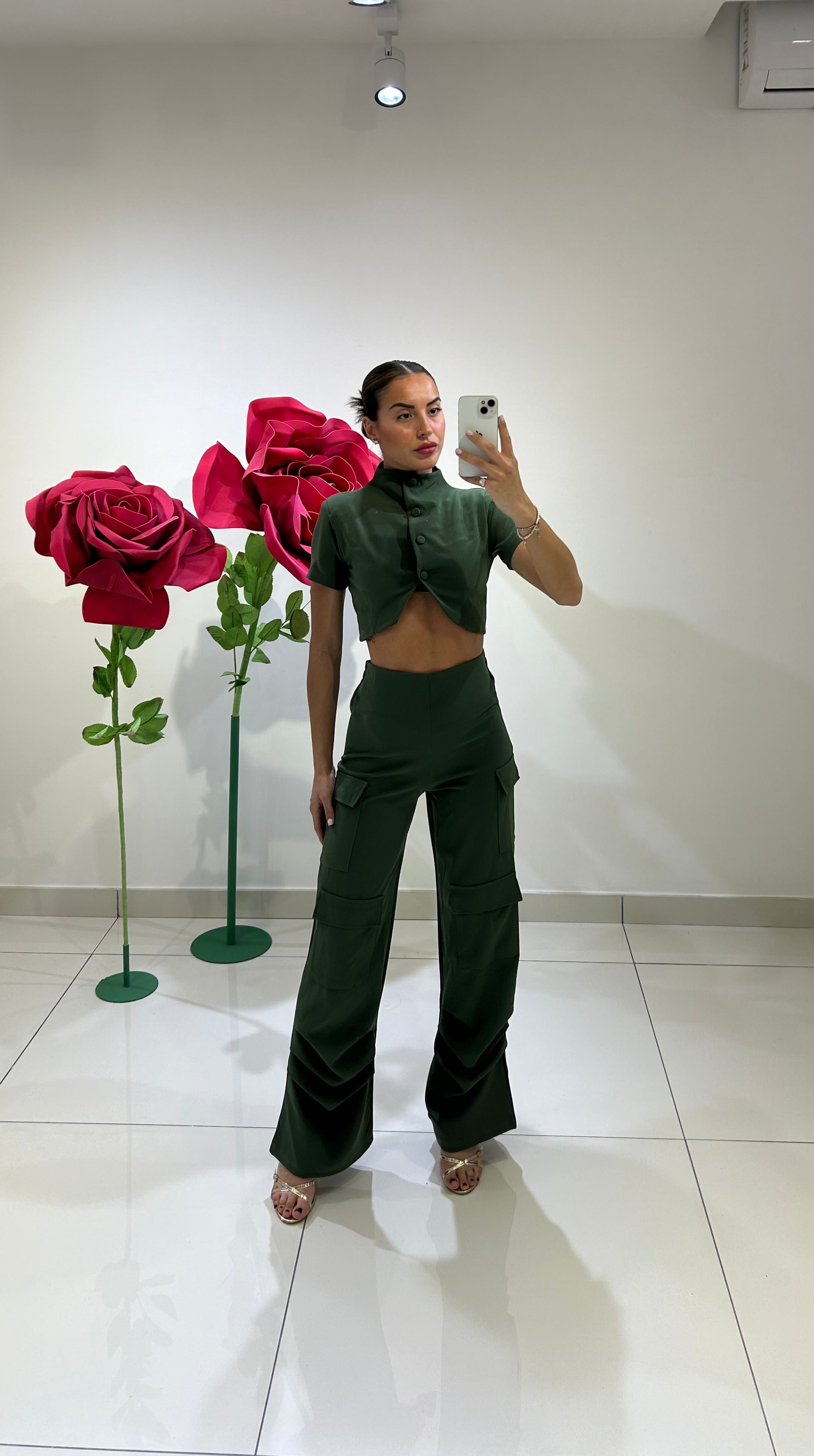 COORDINATO COMPOSTO DA GIACCA CROP E PANTALONE CARGO, TAGLIA UNICA