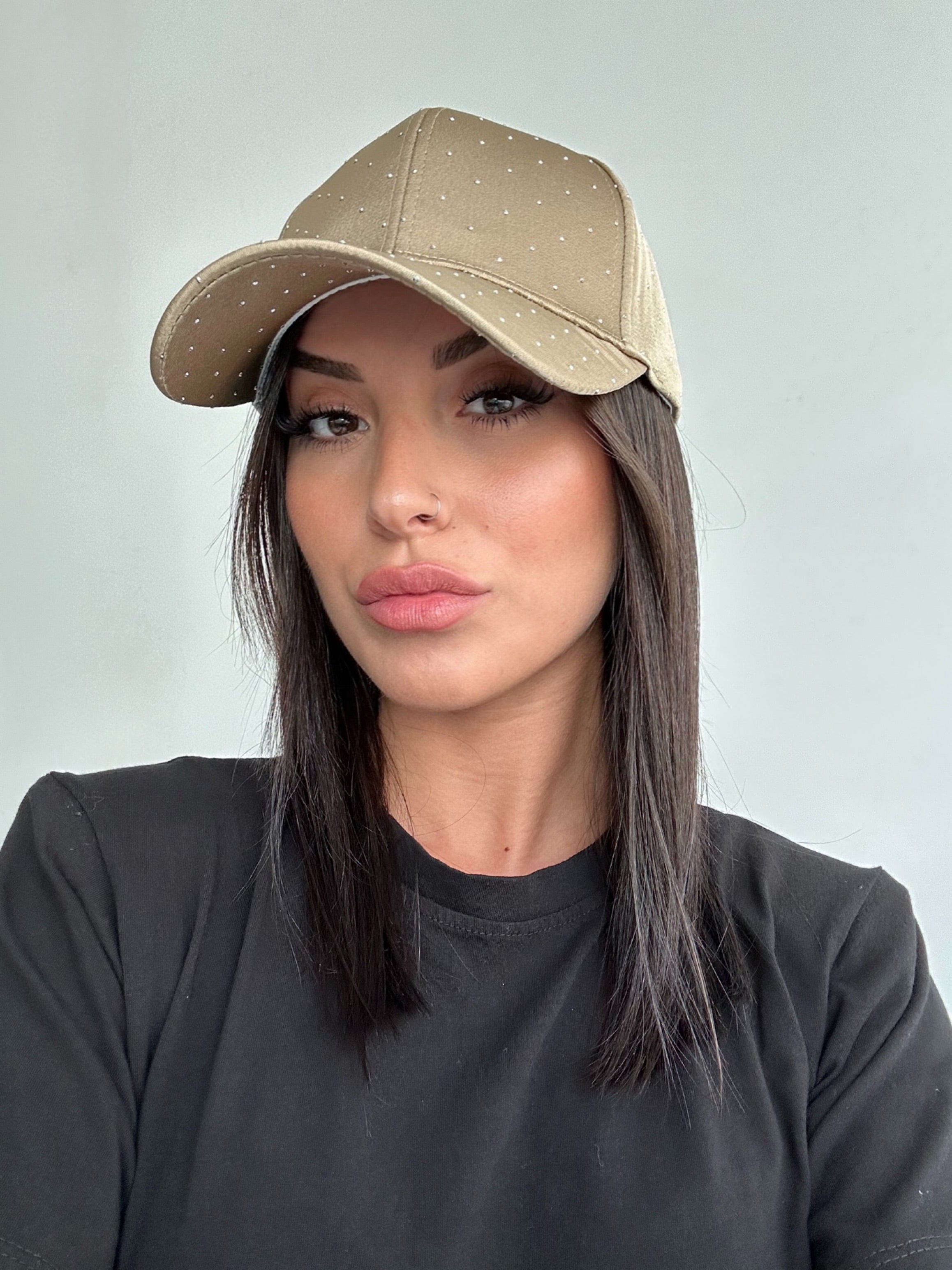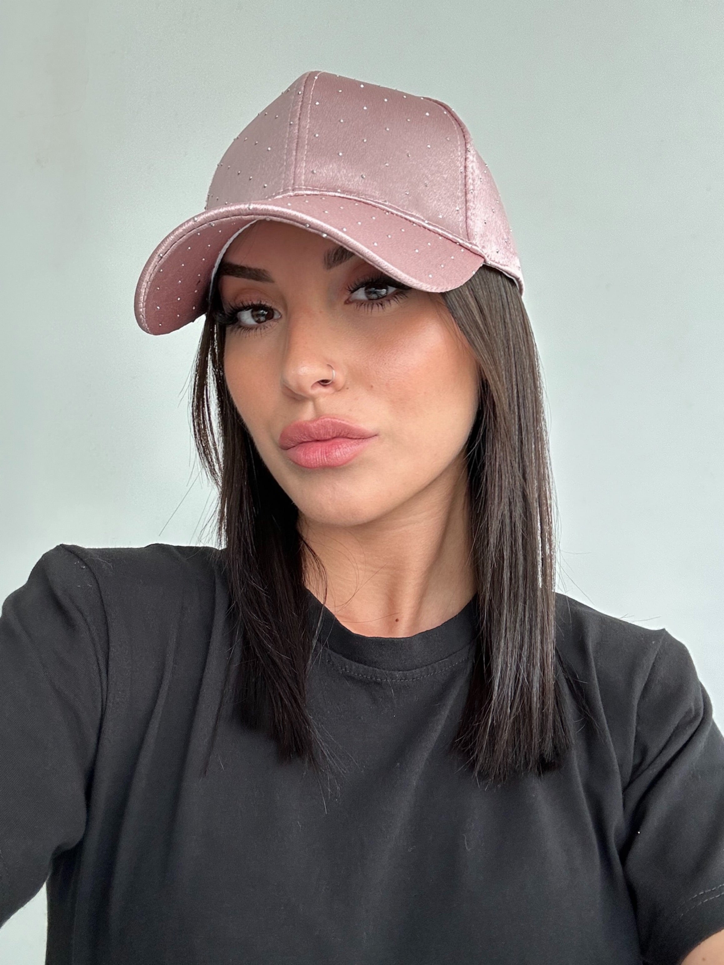 CAPPELLO CON VISIERA RICOPERTO DA STRASS, TAGLIA UNICA