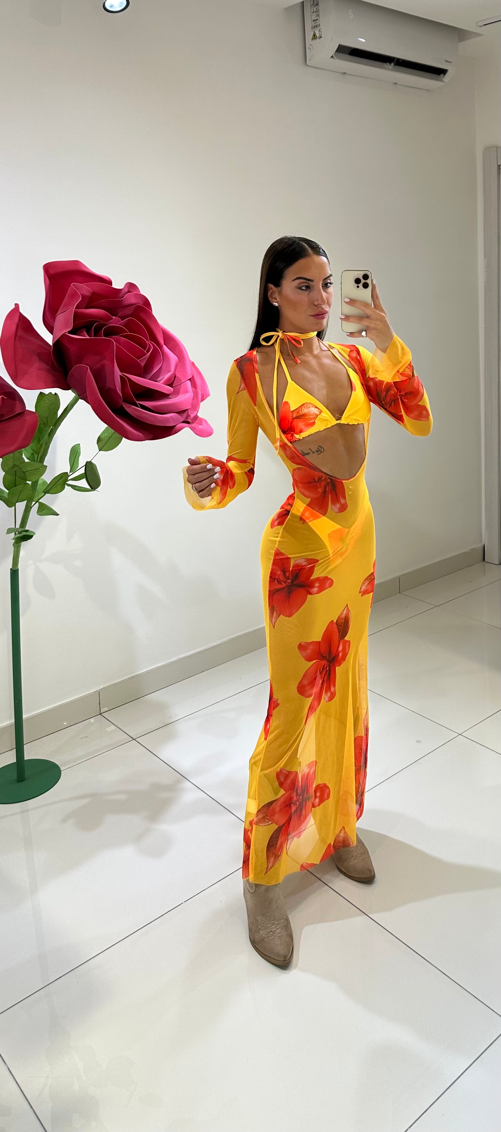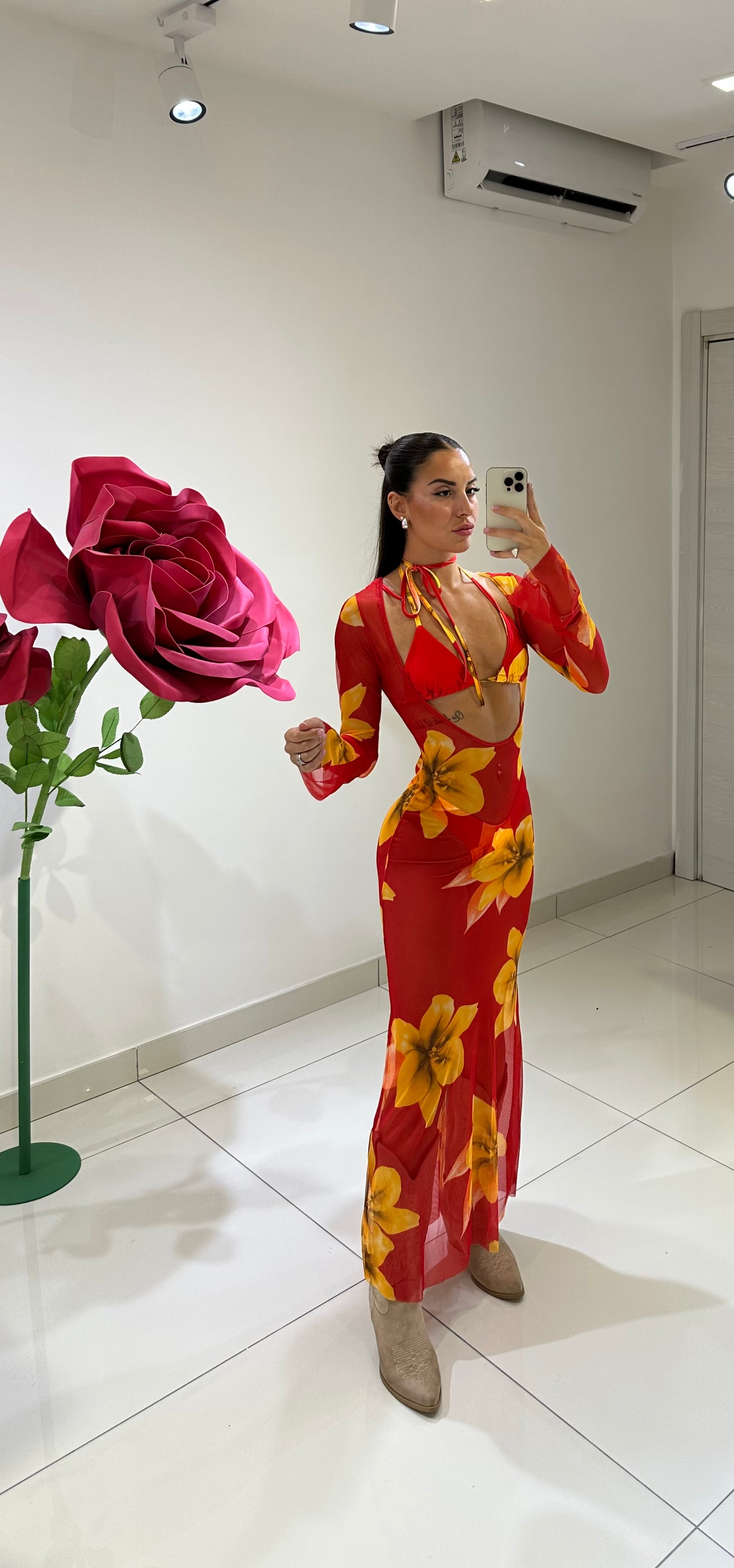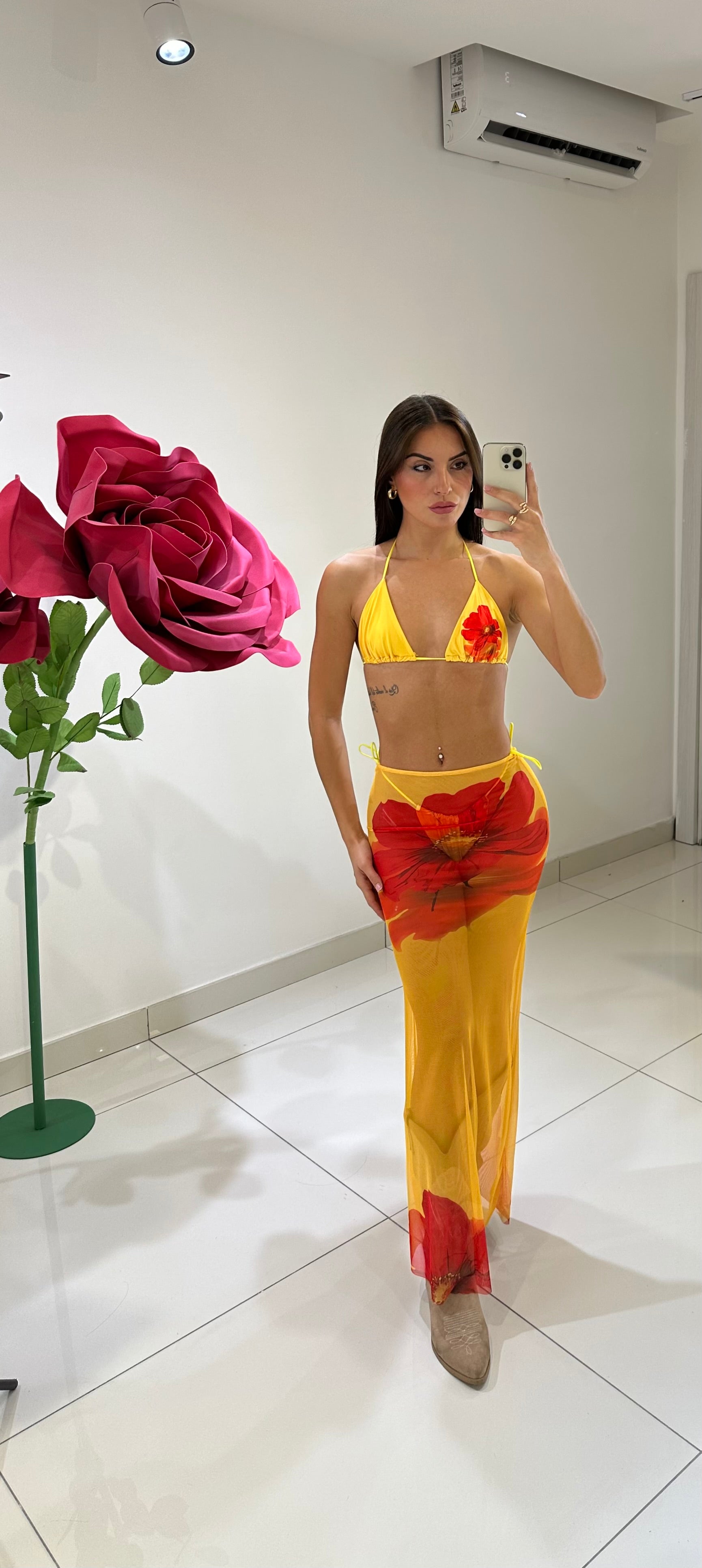 BIKINI REGOLABILE CON STAMPA FLOREALE, GONNA COPRICOSTUME IN TULLE DELLA STESSA STAMPA, IN VARI COLORI