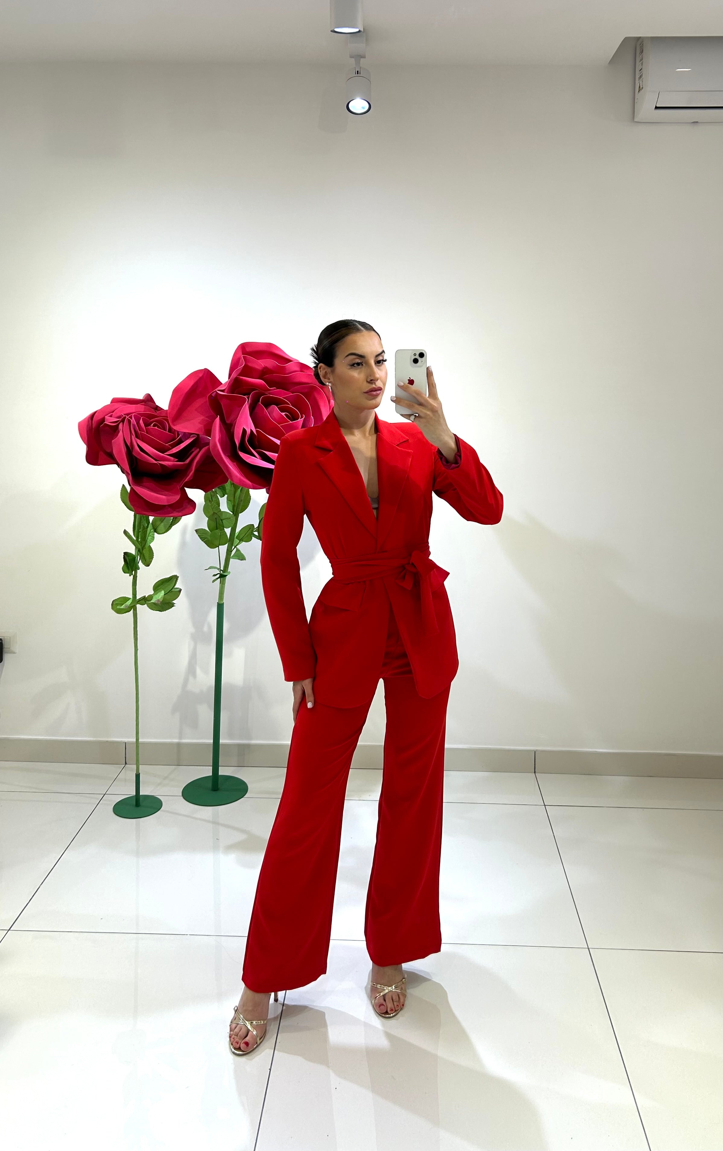 TAILLEUR BEST-SELLER COMPOSTO DA BLAZER CON CINTURA COLORE SU COLORE E PANTALONE, TAGLIA UNICA