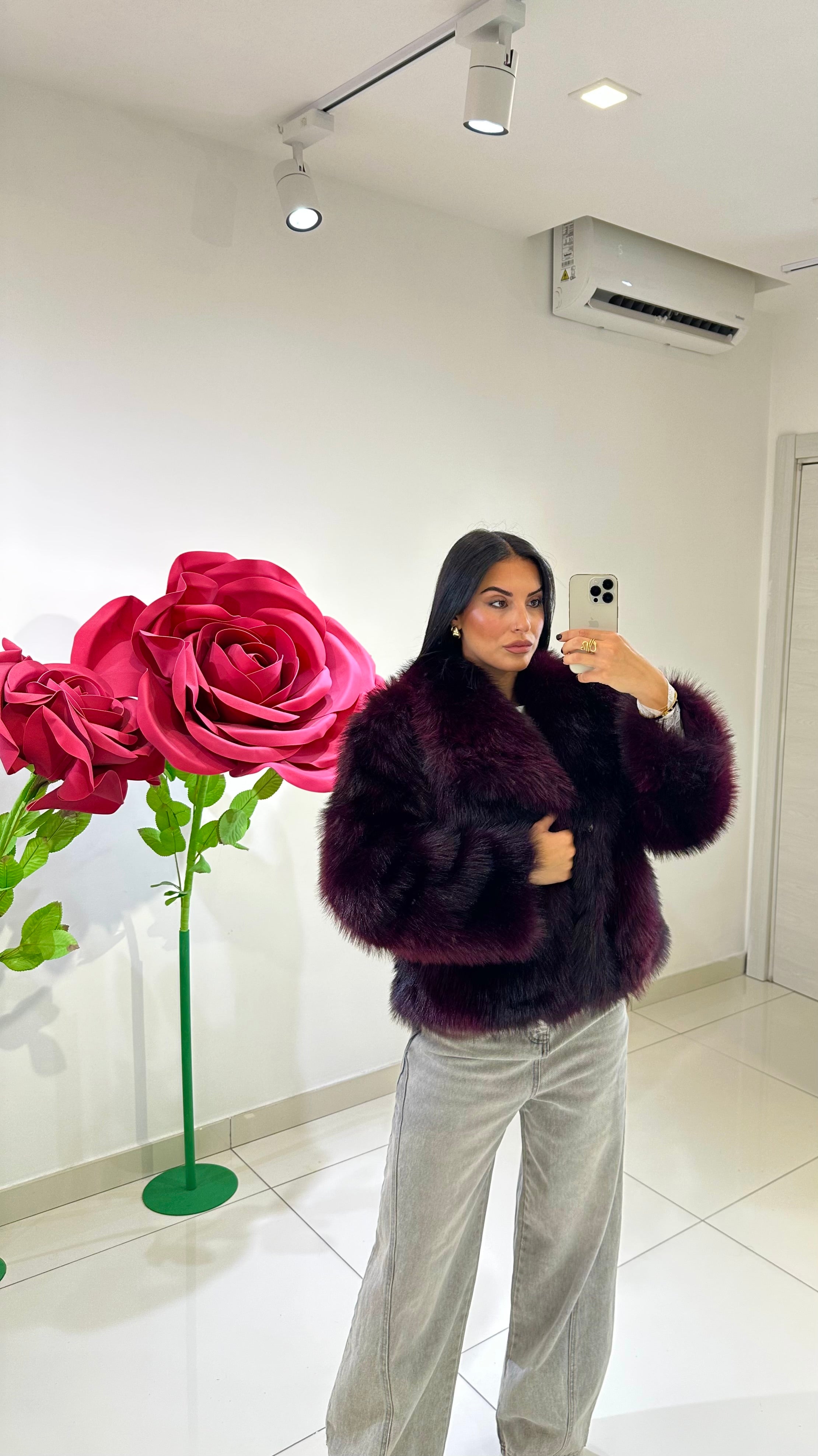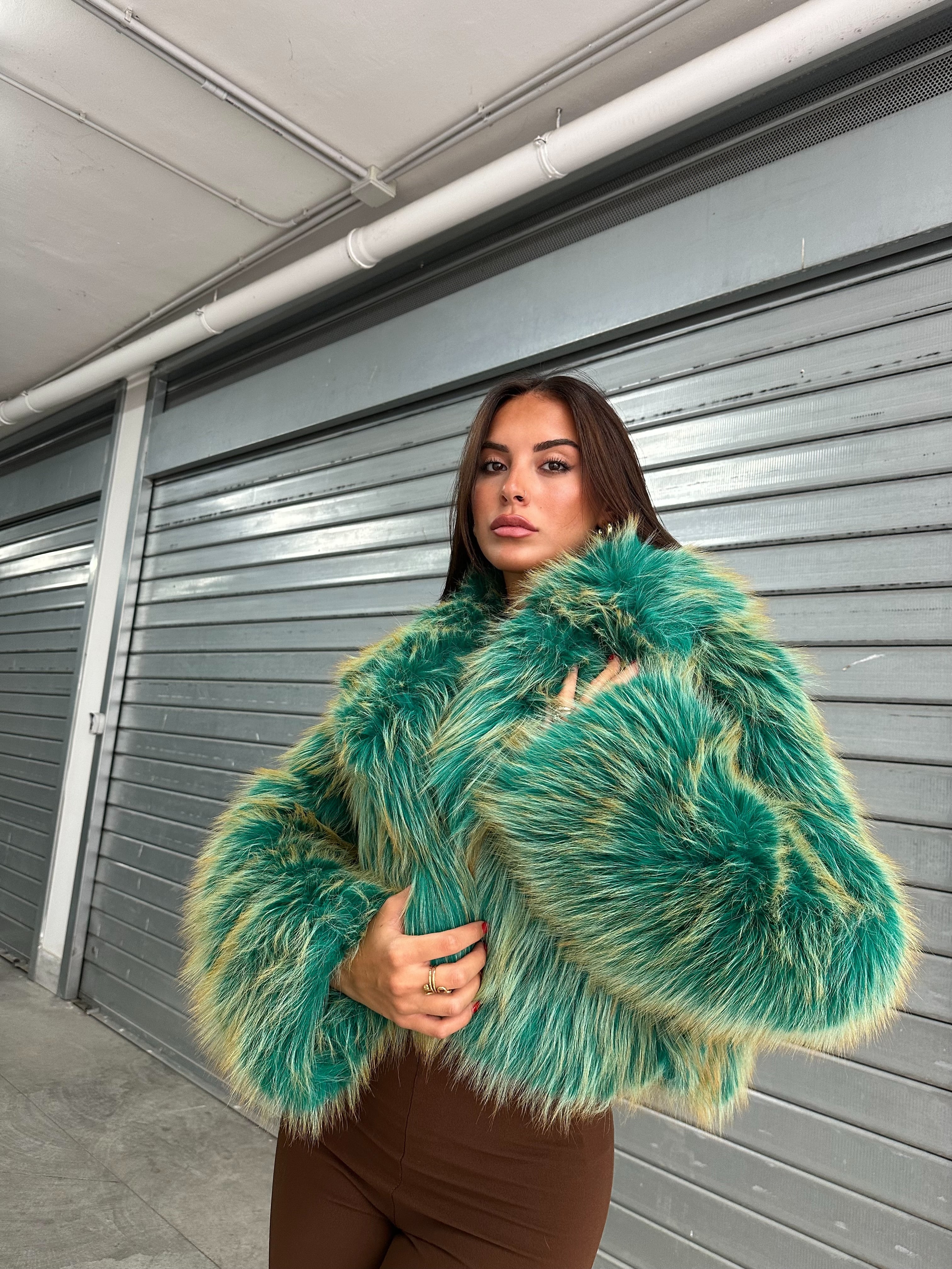 PELLICCIA CROP, DAL COLORE SFUMATO, FODERATA ALL’INTERNO, SCOLLO AMPIO, CON CHIAPPA COME CHIUSURA NASCOSTA. IN VARI COLORI