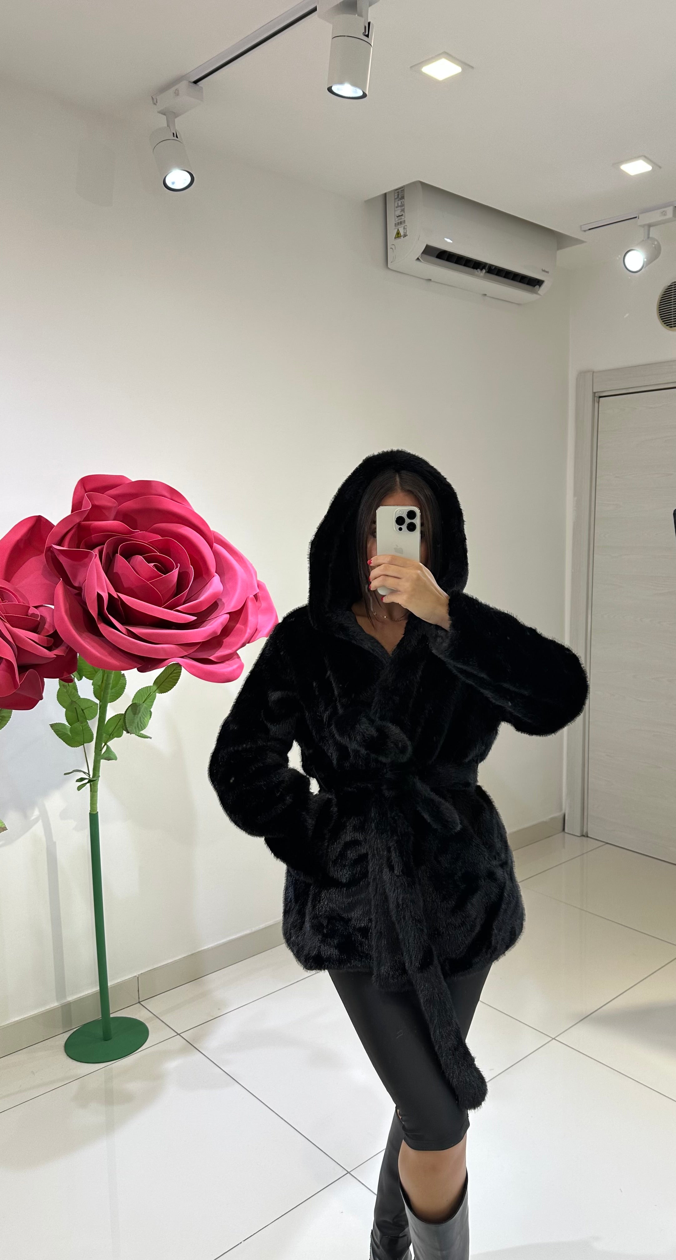PELLICCIA DA UNA PUNGHEZZA MEDIA, FODERATA ALL’INTERNO CON CAPPUCCIO, CHIUSURA A CIAOPE NASCOSTE E CINTURA INCLUSA. IN VARI COLORI.