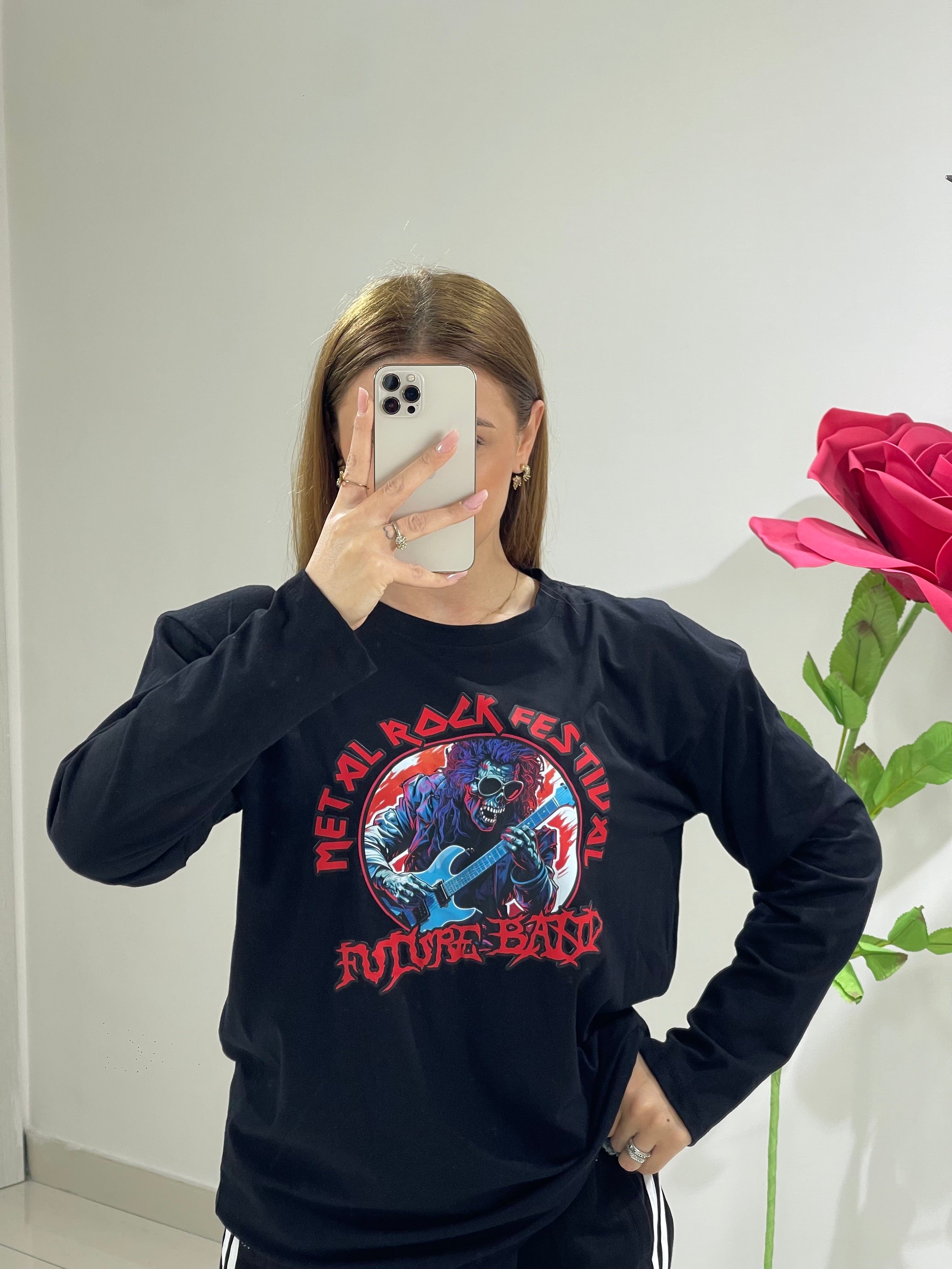 MAGLIA CON STAMPA A MANICHE LUNGHE, TAGLIA UNICA