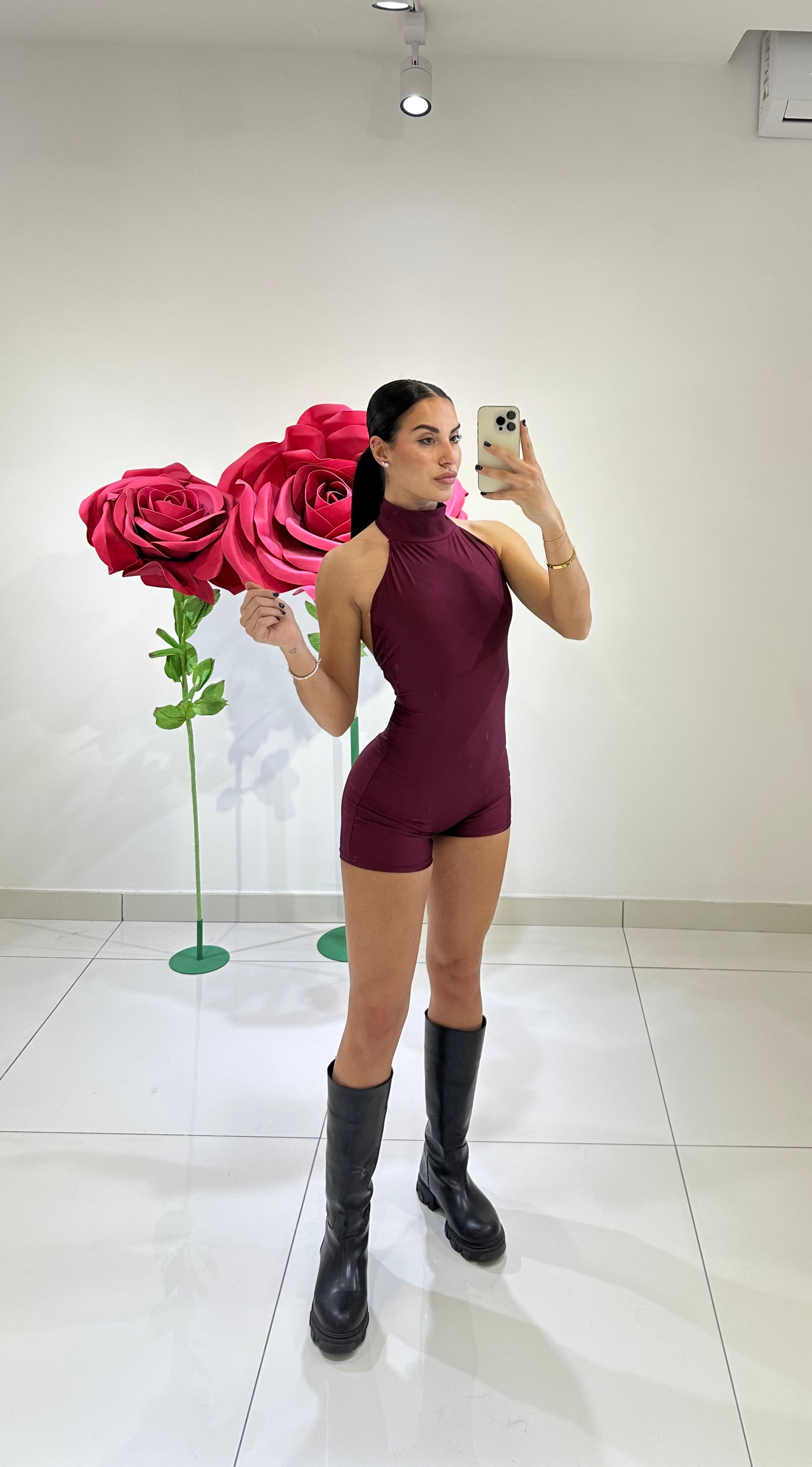 JUMPSUITE CICLISTA, SCOLLO PROFONDO SUL DAVANTI, SCHIENA SCOPERTA DETTAGLIATA DA INCROCIO. IN VARI COLORI.