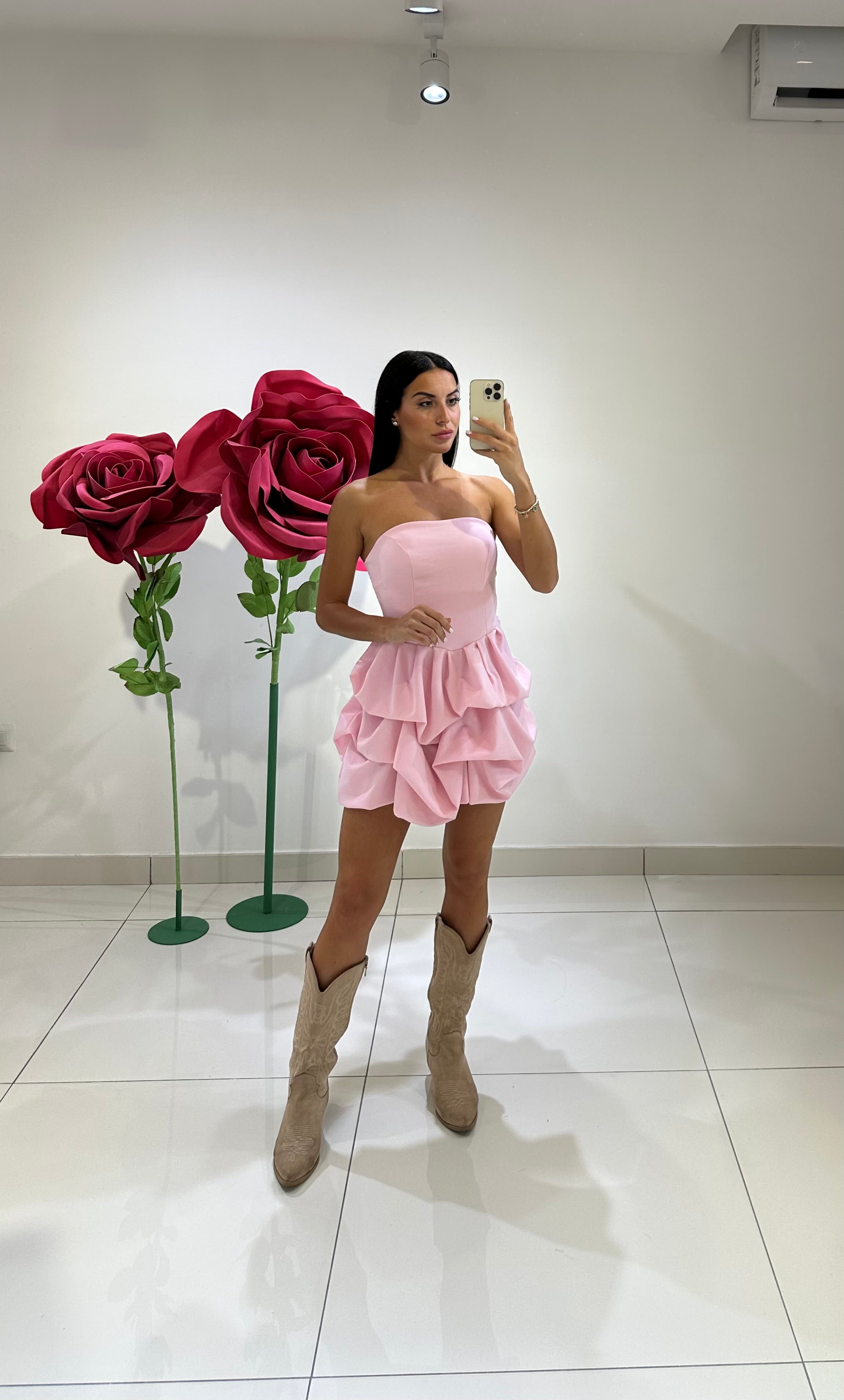 DRESS CON COPPE E GONNA CON BALZE, IN VARI COLORI