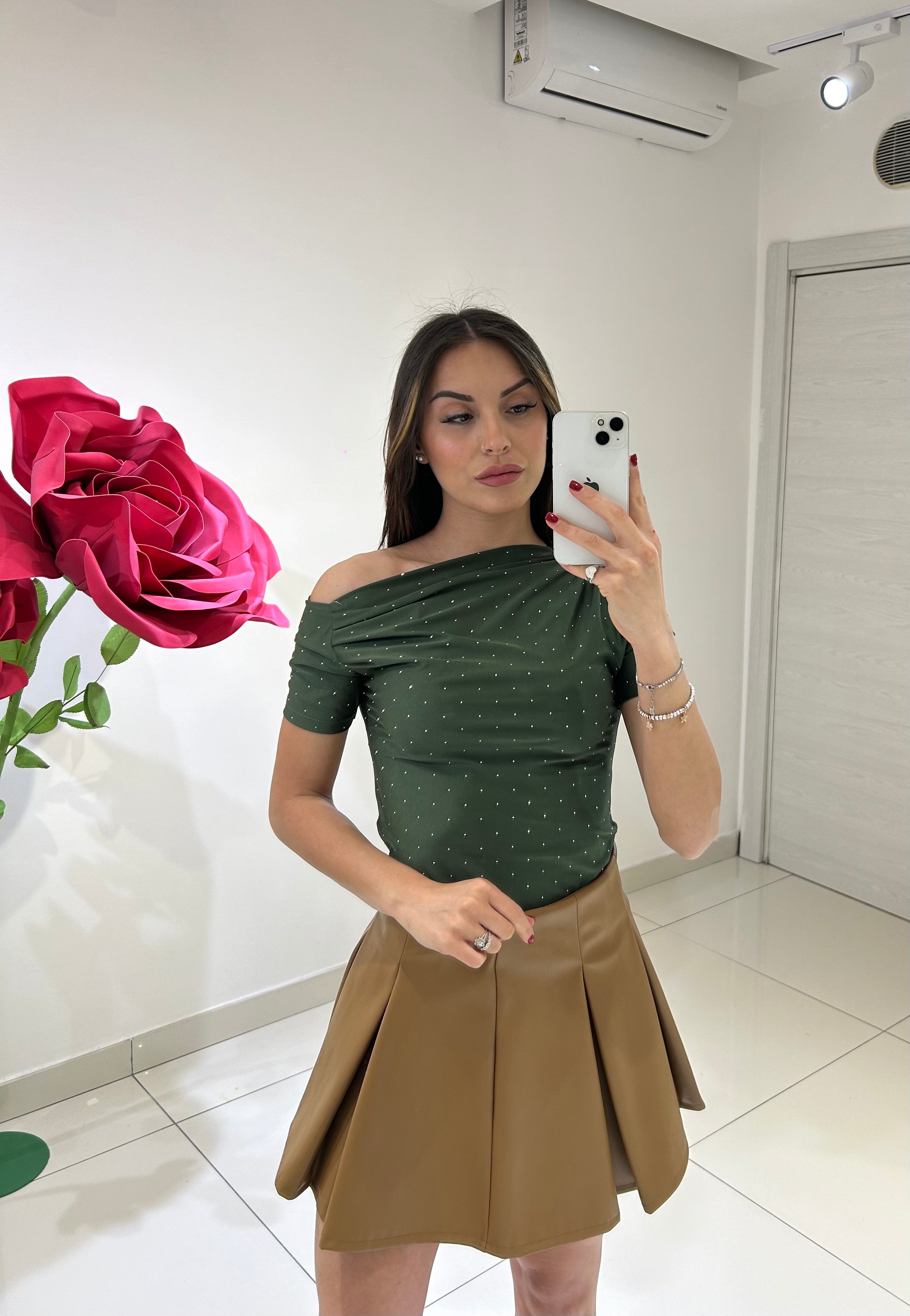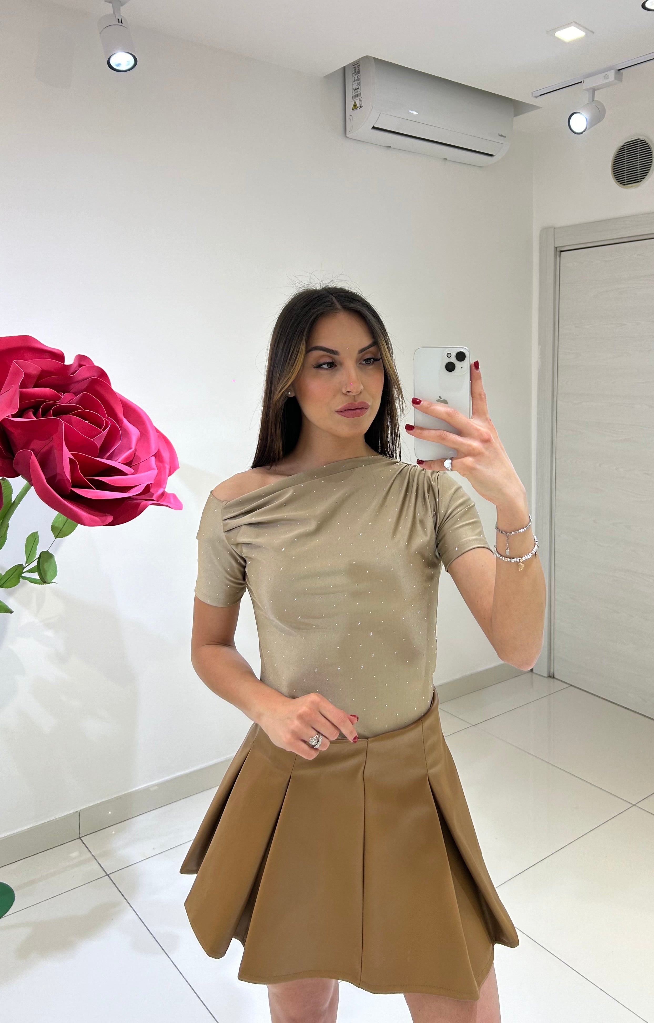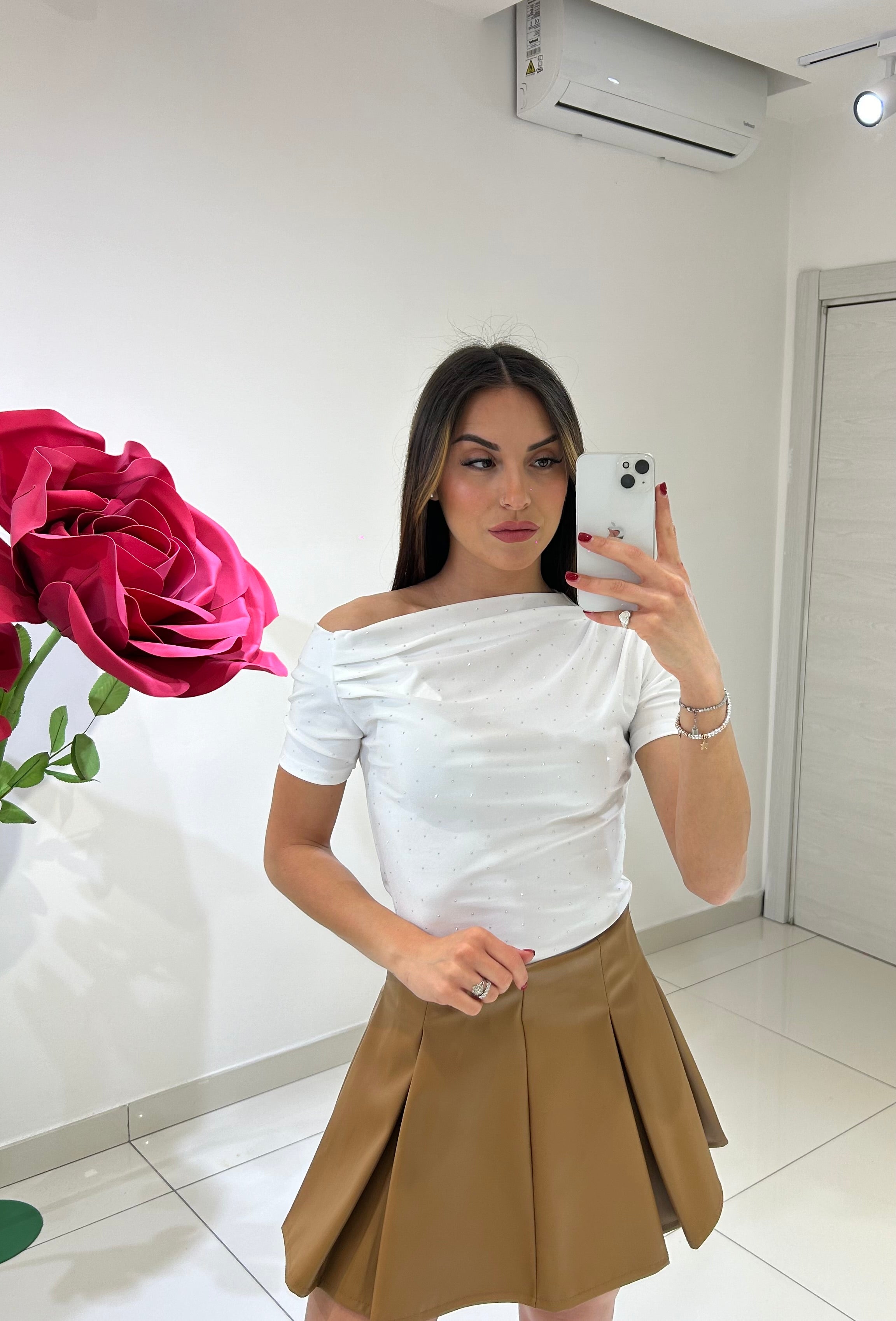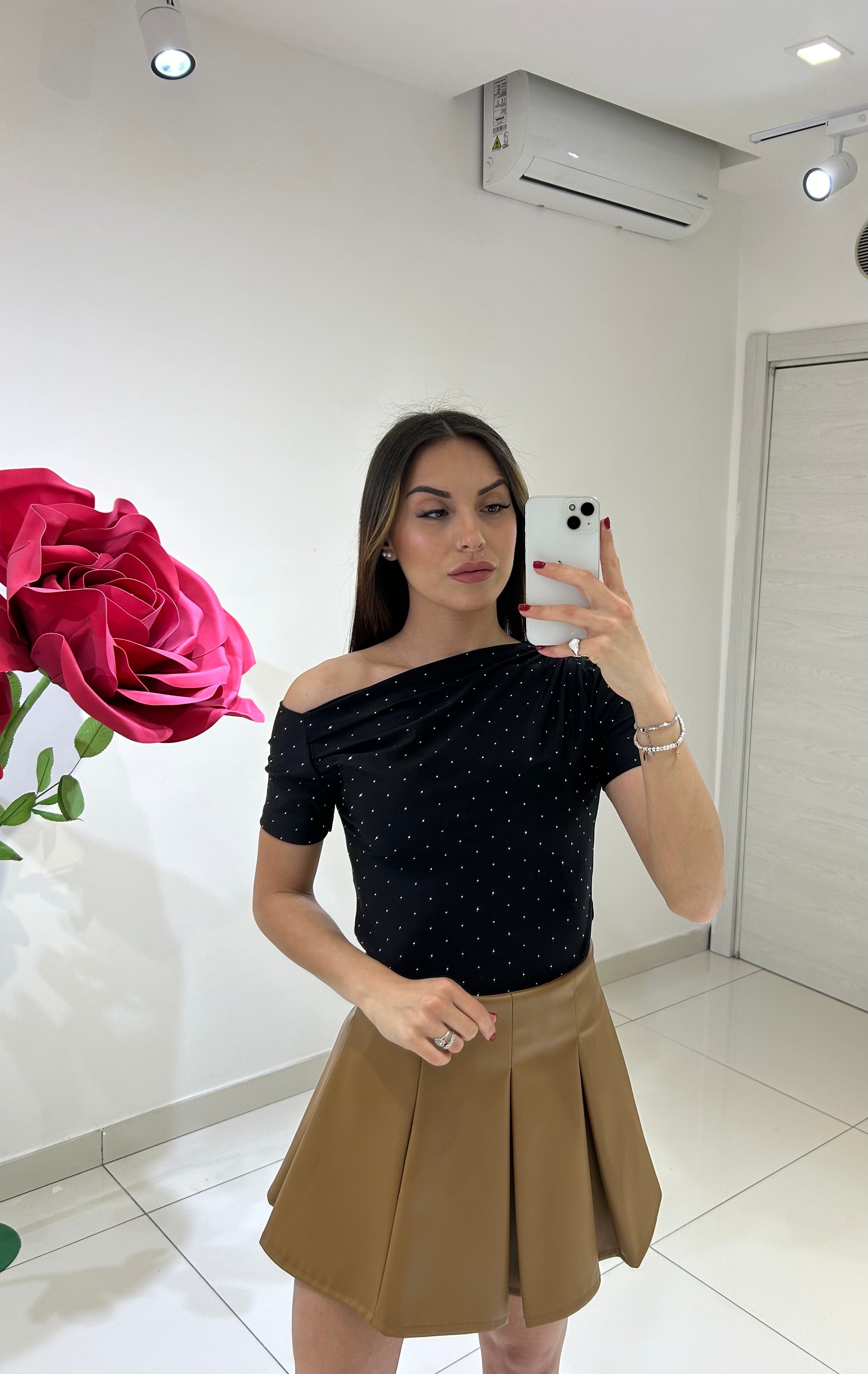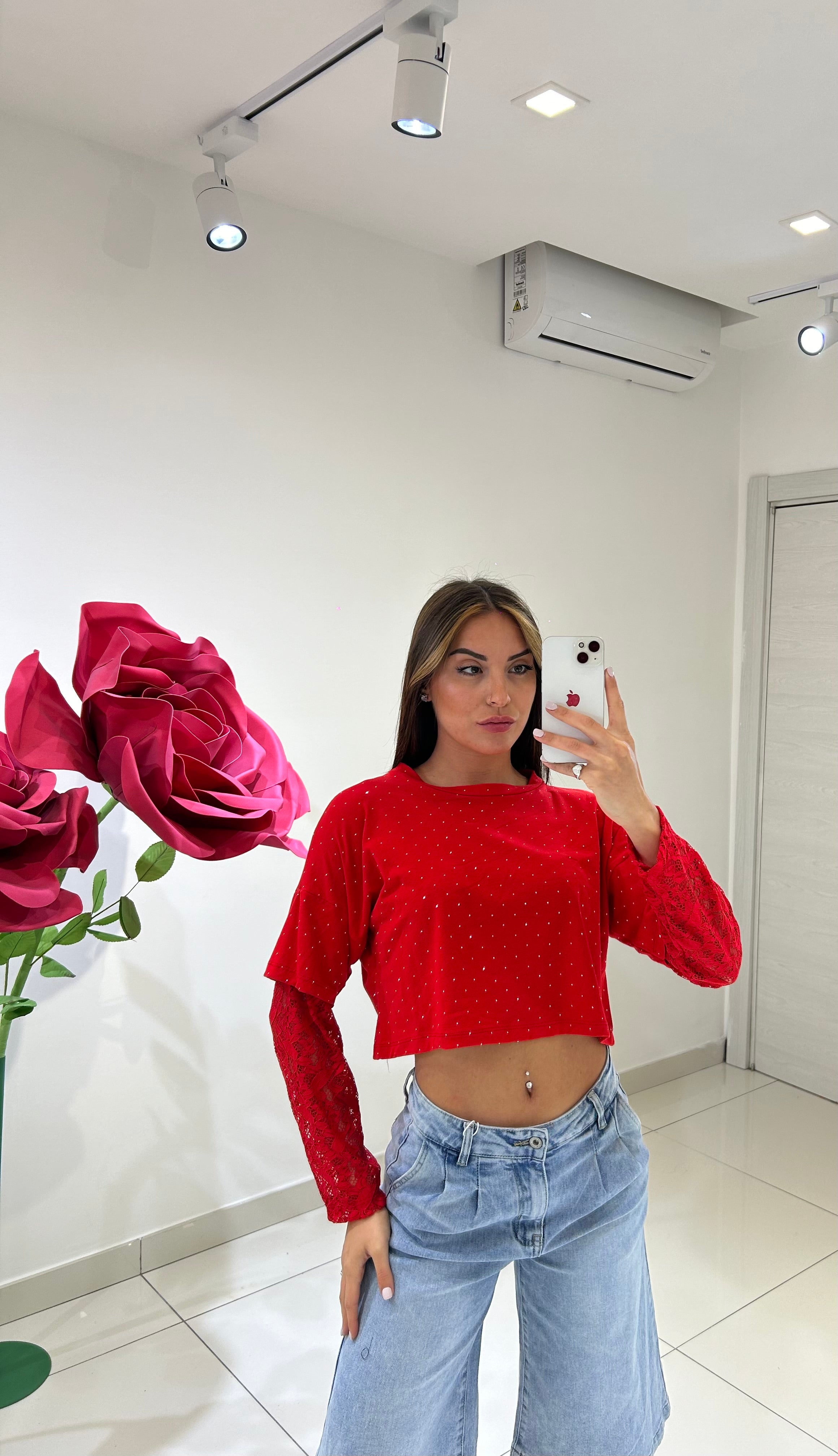 MAGLIA CROP CON STRASS E MANICOTTI IN PIZZO E STRASS, TAGLIA UNICA