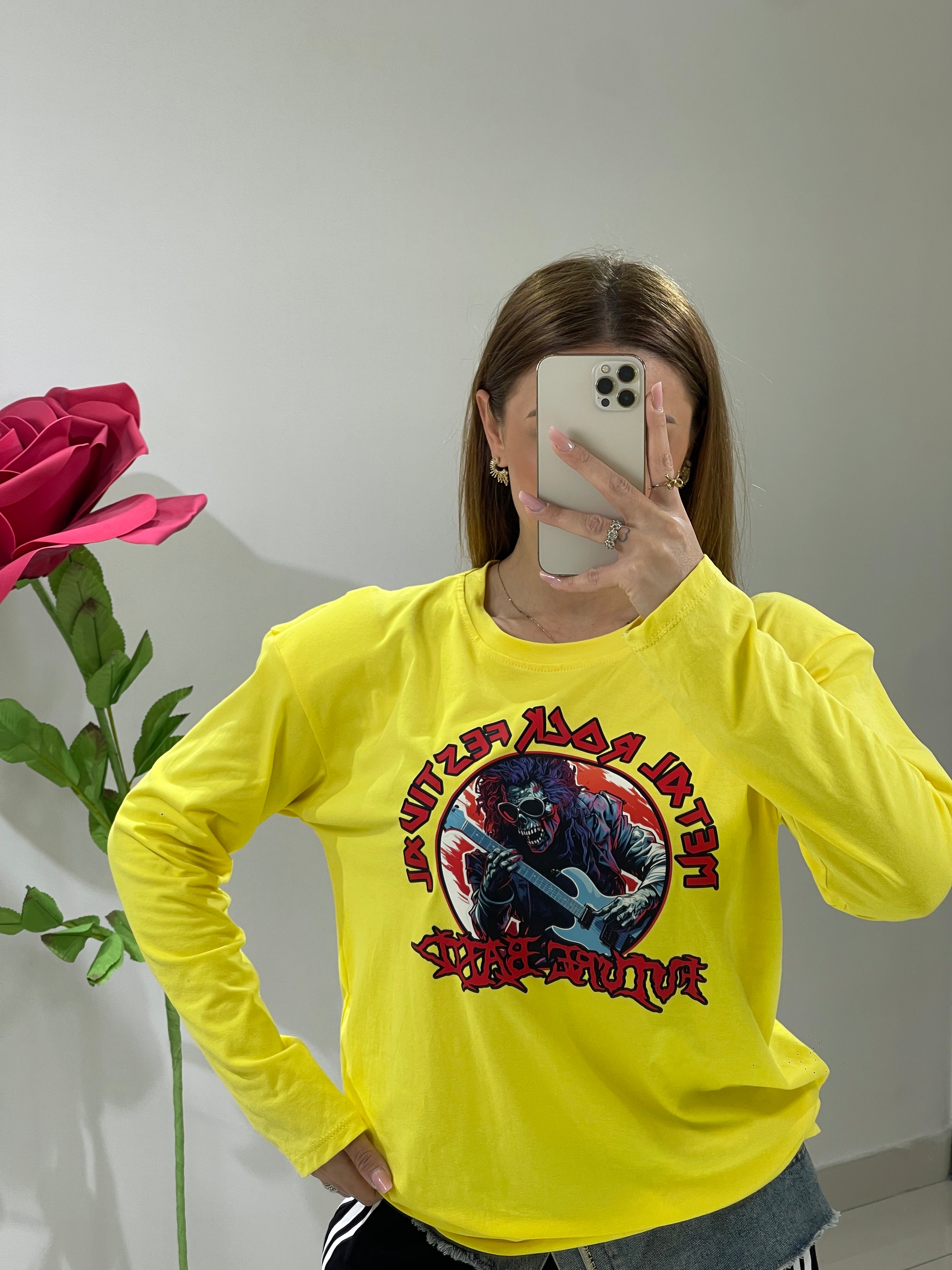 MAGLIA CON STAMPA A MANICHE LUNGHE, TAGLIA UNICA