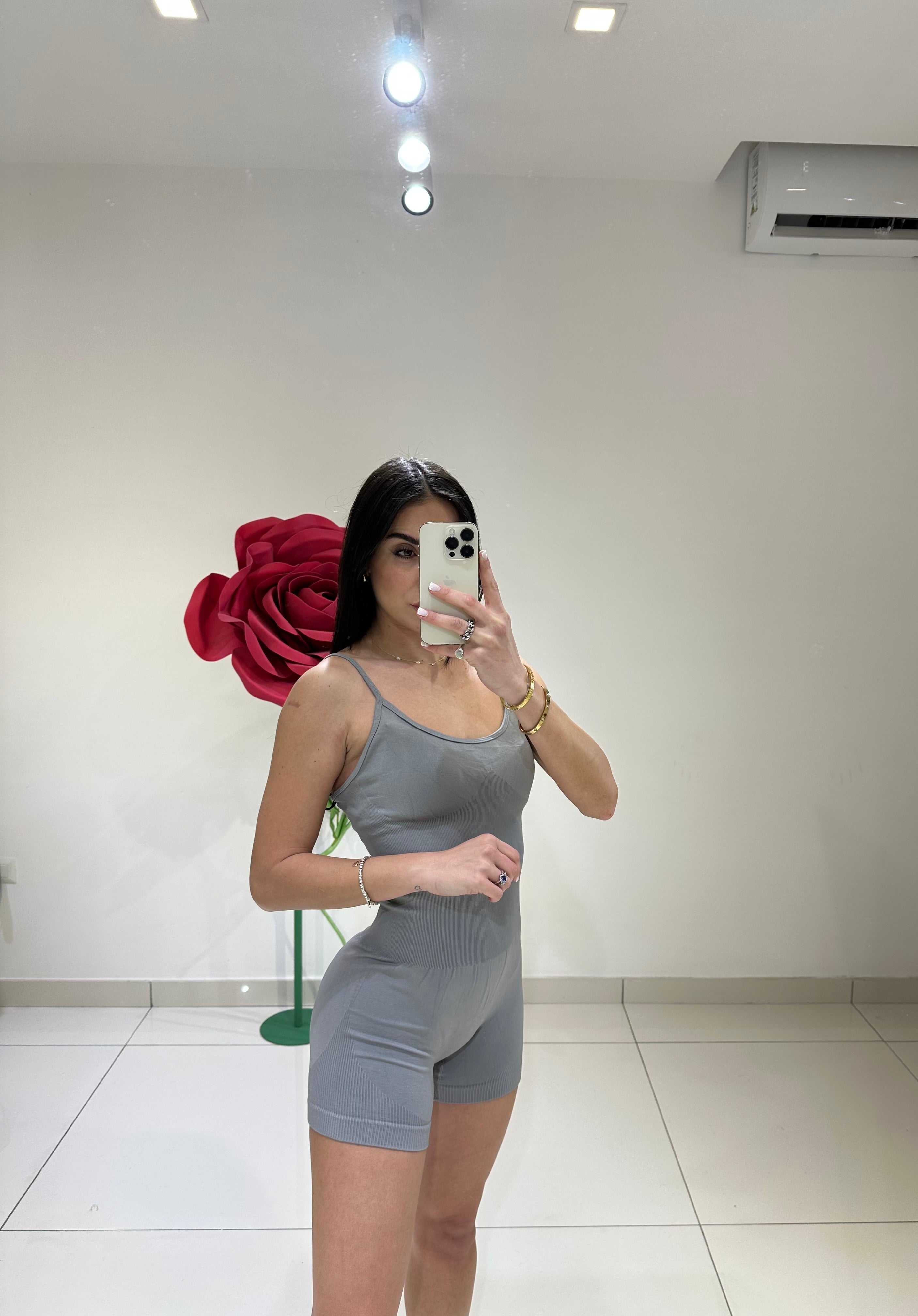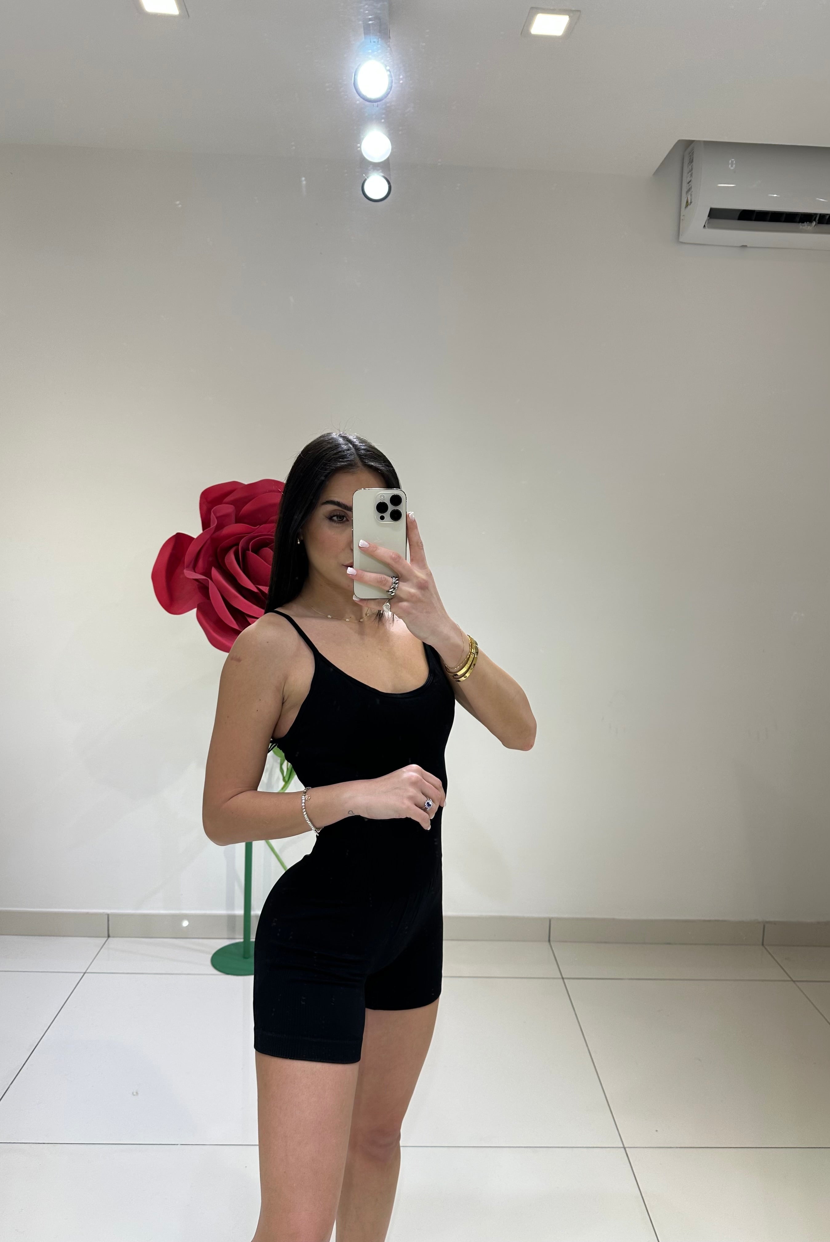 TUTINA EFFETTO SMOKING CON REVER IN RASO LUCIDO SIA SULLO SCOLLO, SUI BOTTONI DOME DETTAGLIO E SULLE TASCHE PATTE, SHORTS ED ELASTICO SUL RETRO.