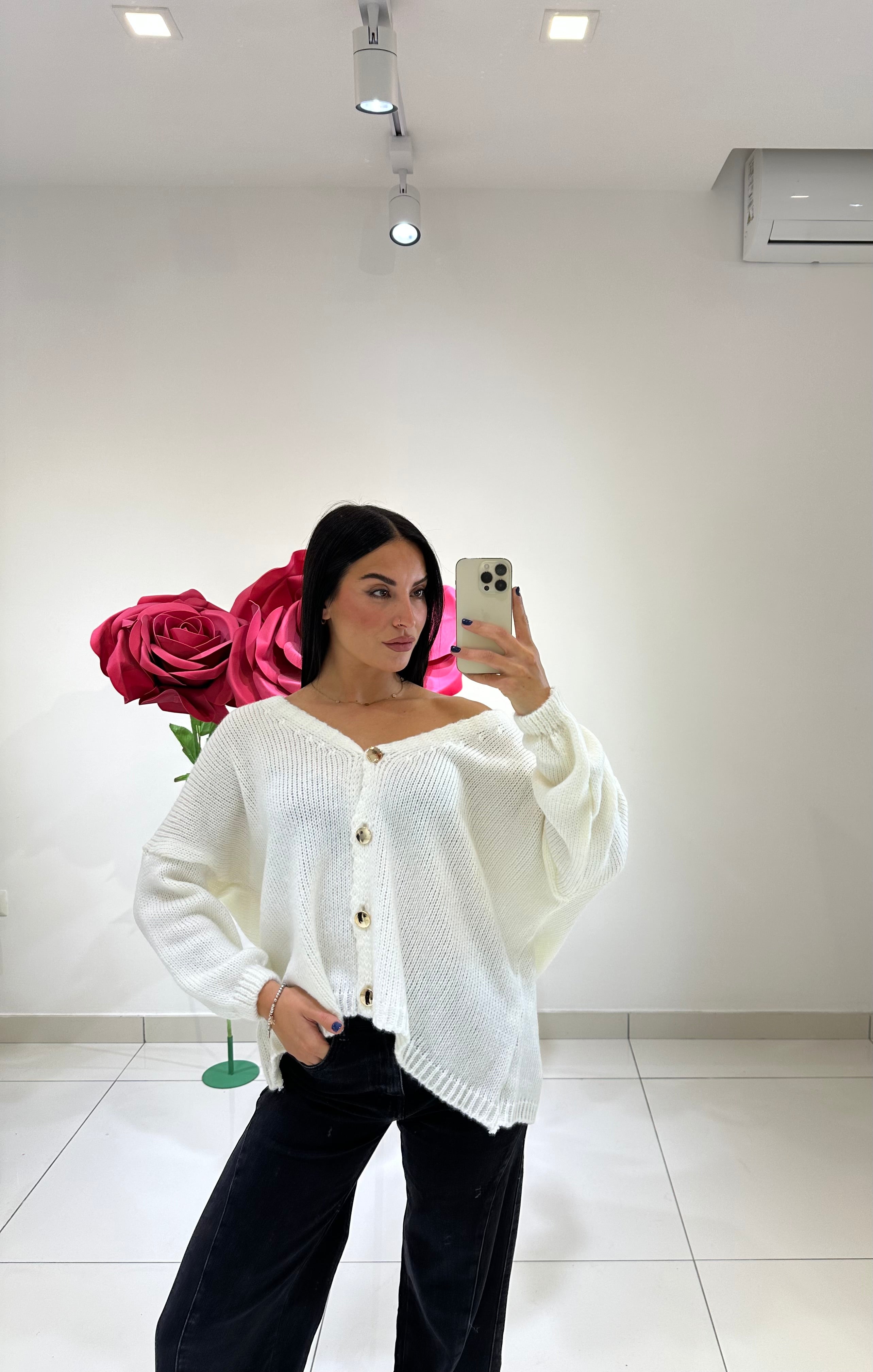 CARDIGAN IN LANA OVER, AMPIO SCOLLO E BOTTONI ORO. IN VARI COLORI