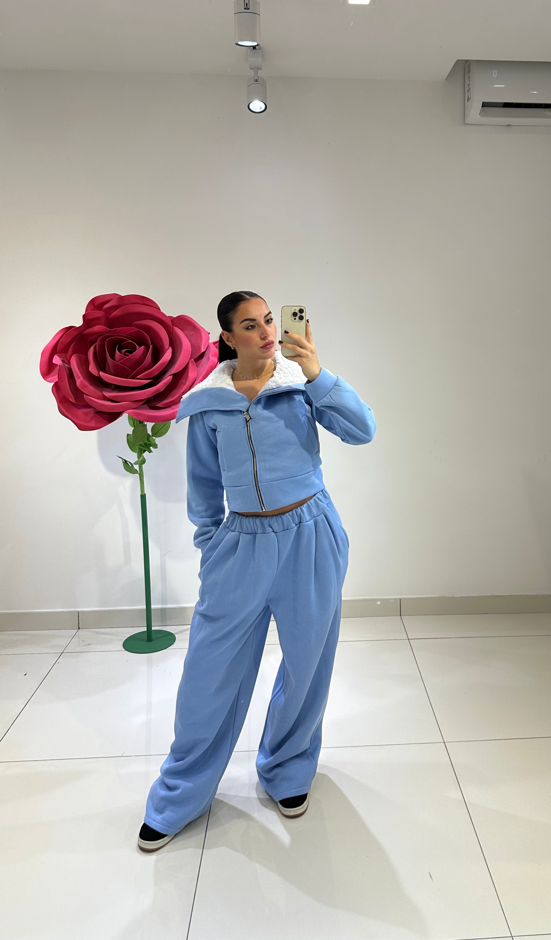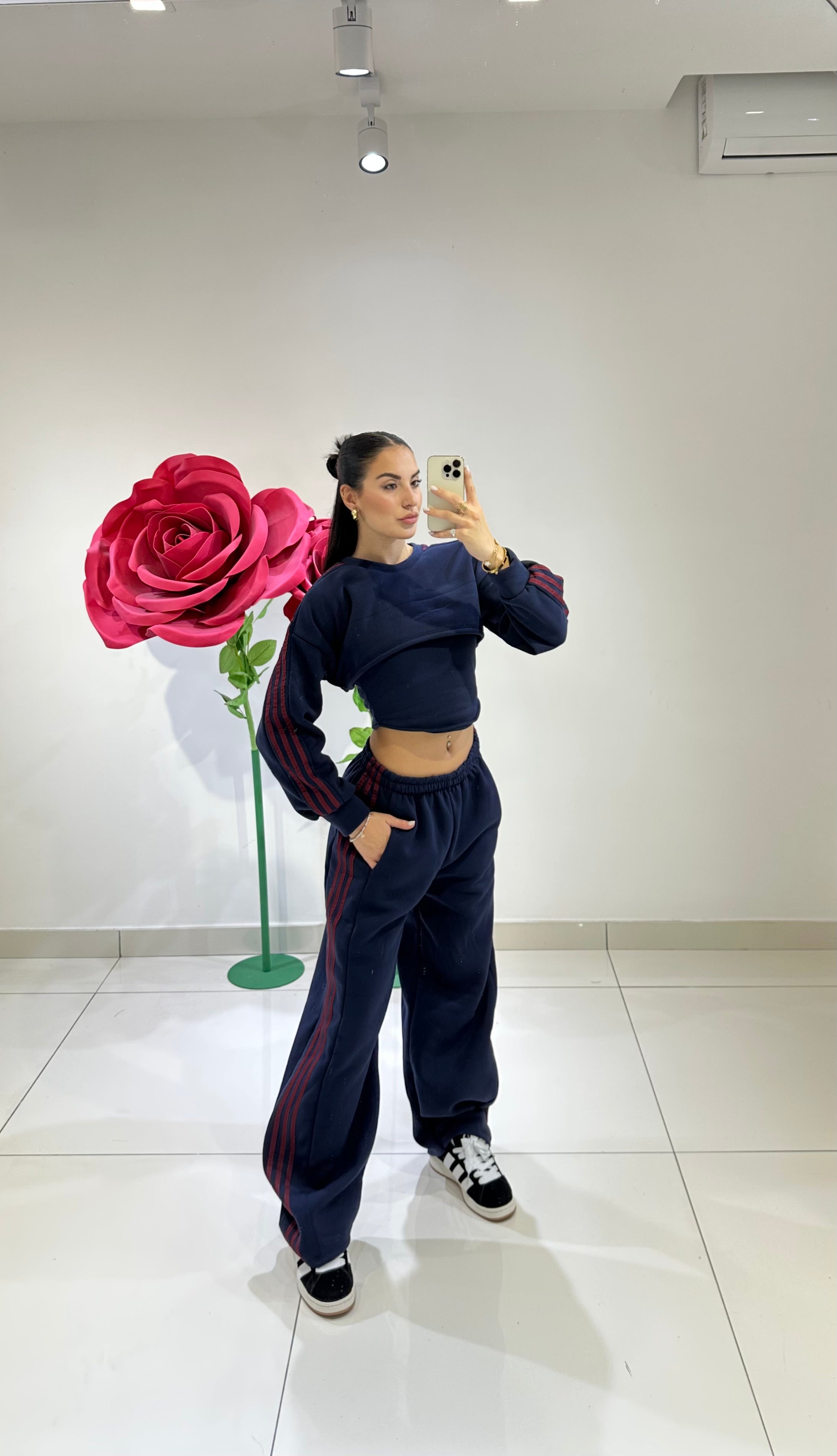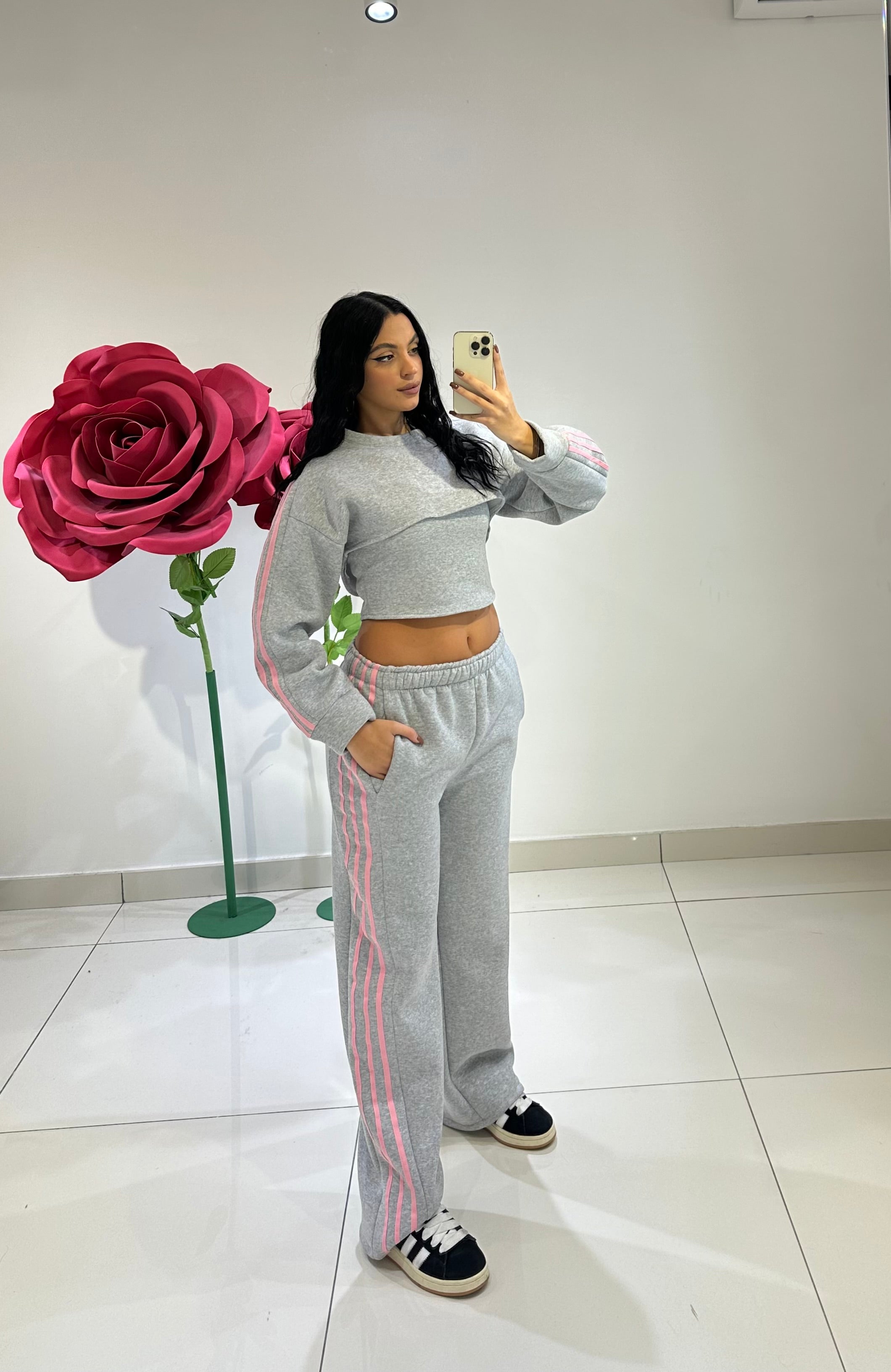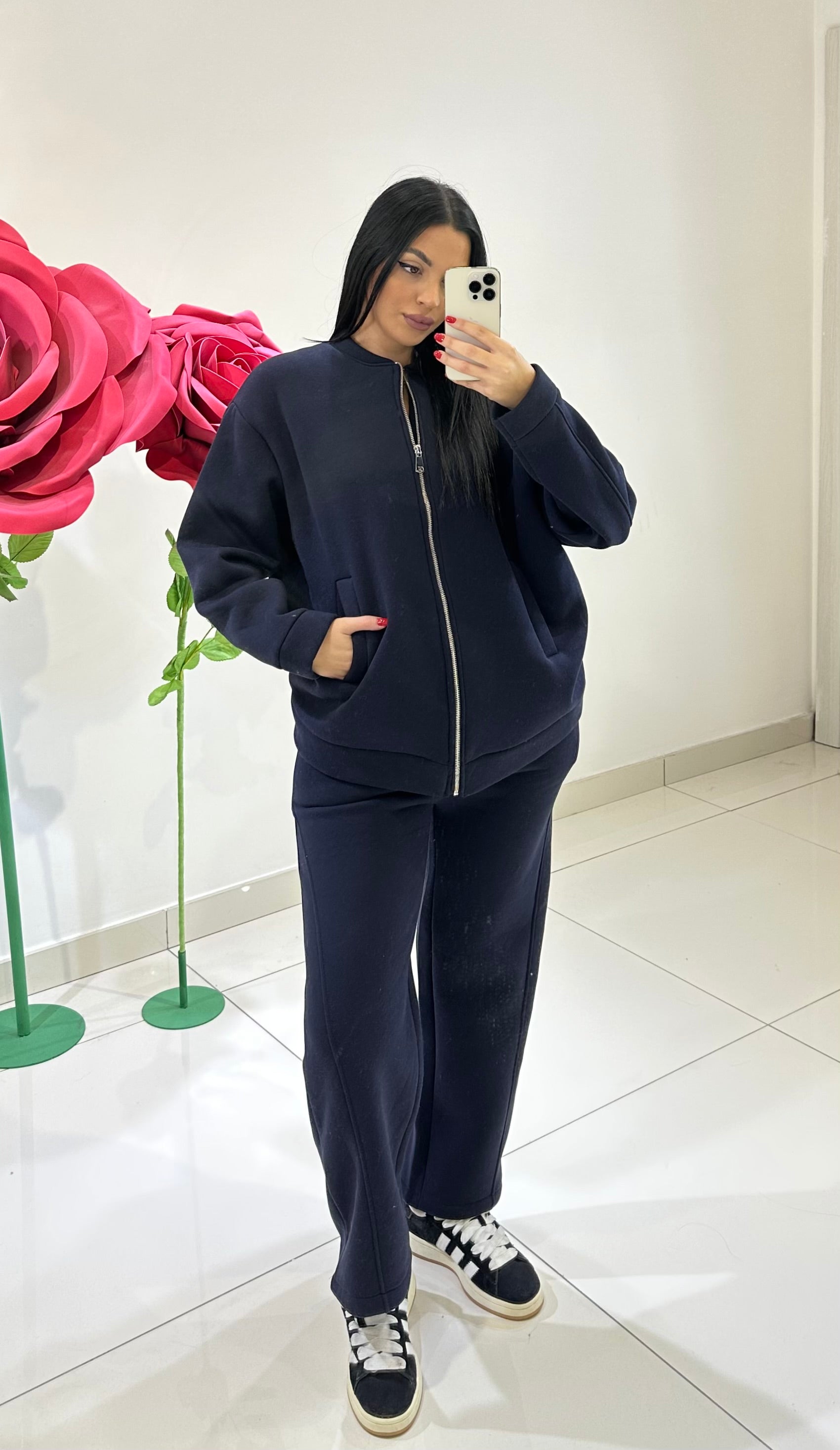 COORDINATO COMPOSTO DA FELPA CROP OVER CON ELASTICO UN VITA E AI POLSINI ,ZIP CENTRALE E TASCHINI LATERALI, PANTALONE CON ELASTICO IN VITA E GAMBA DRITTA....