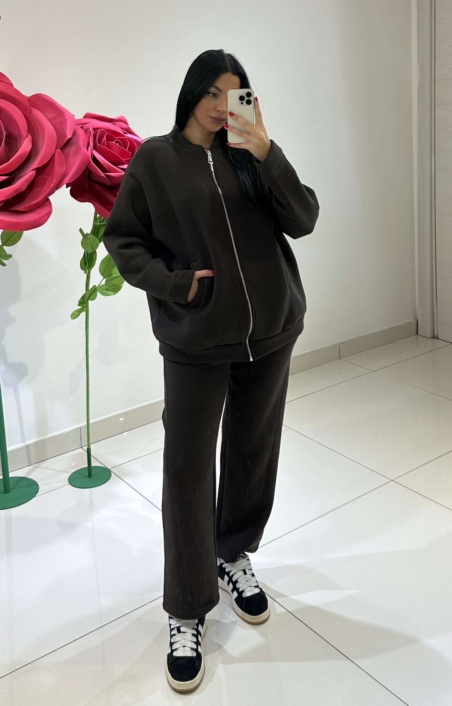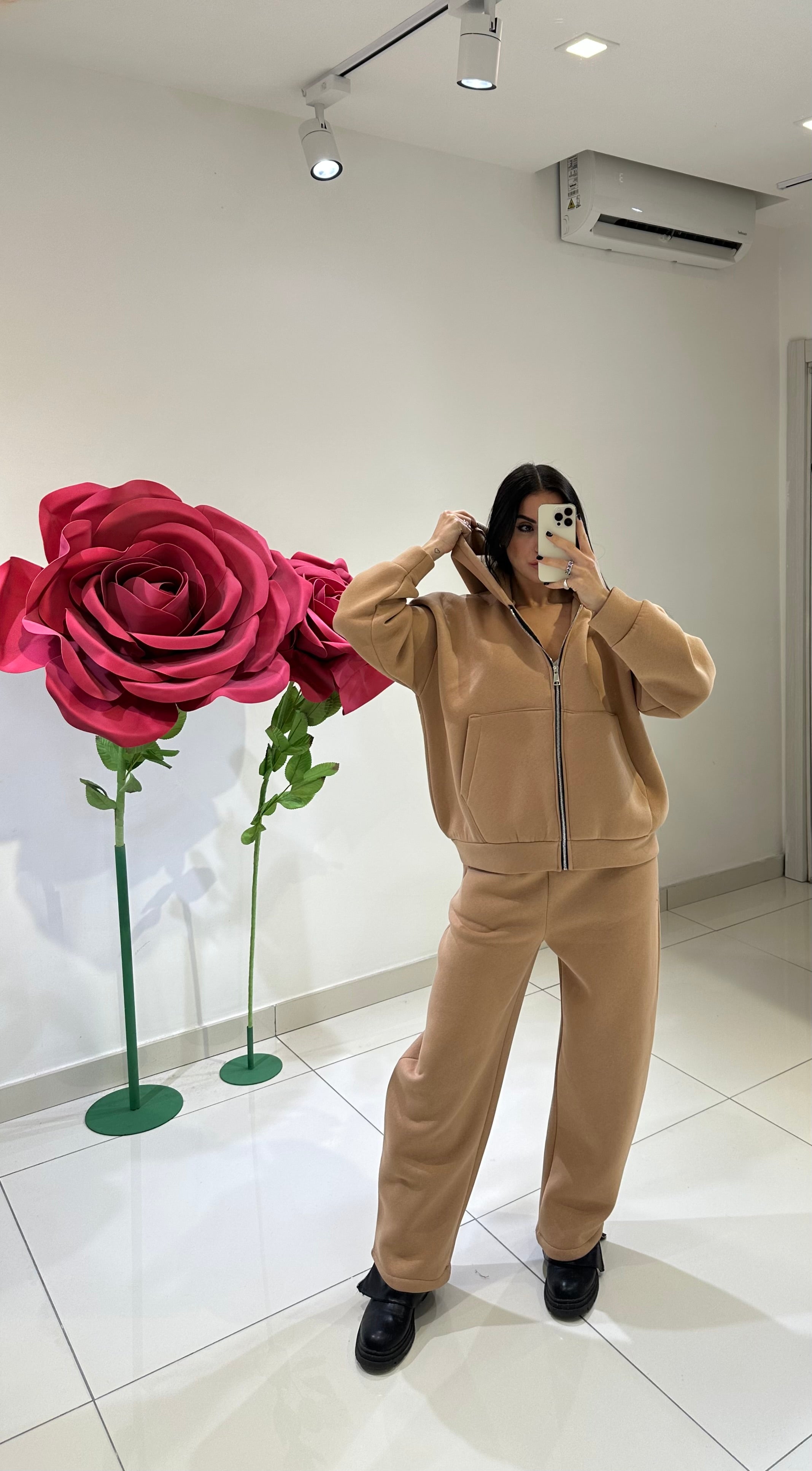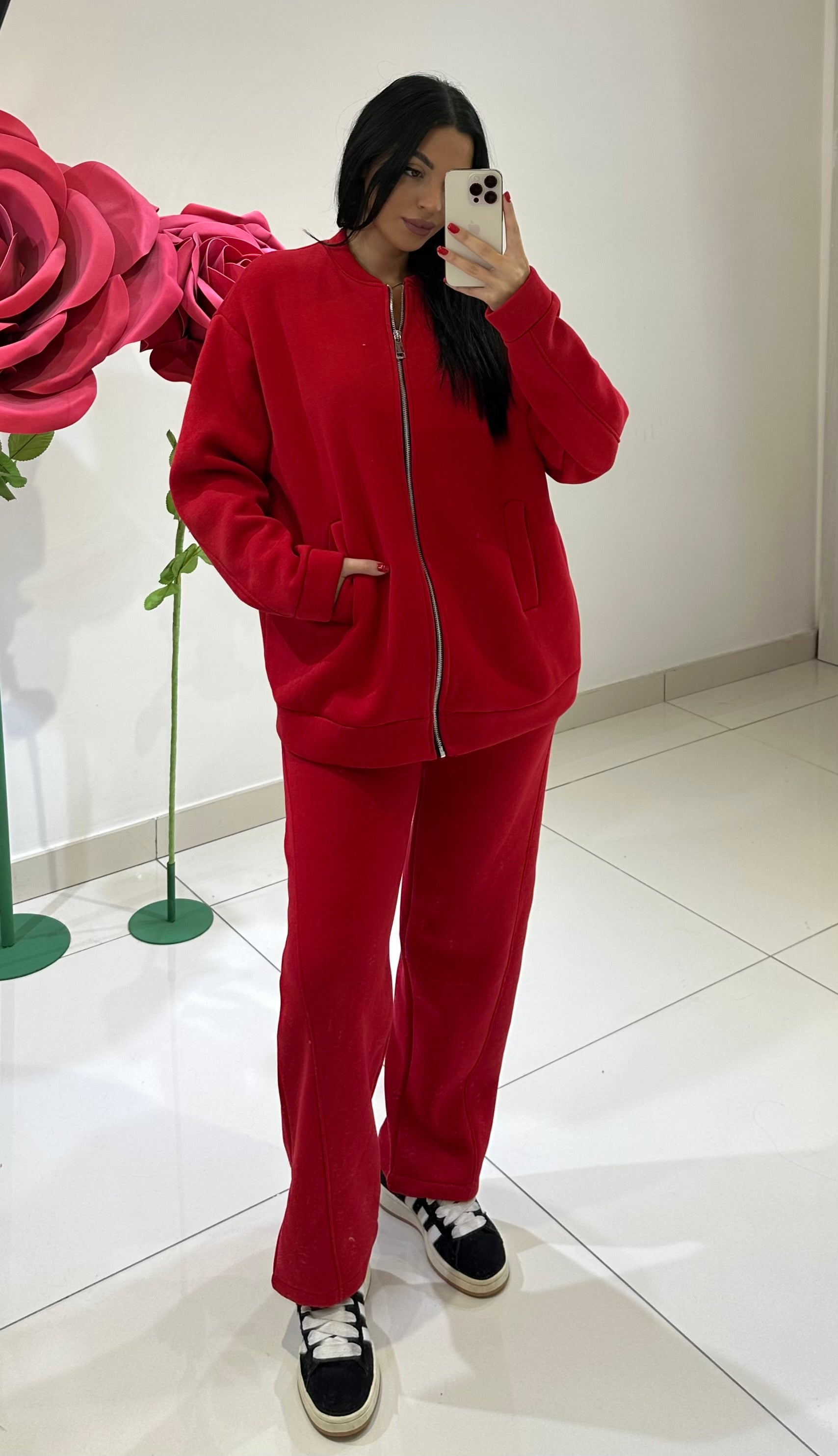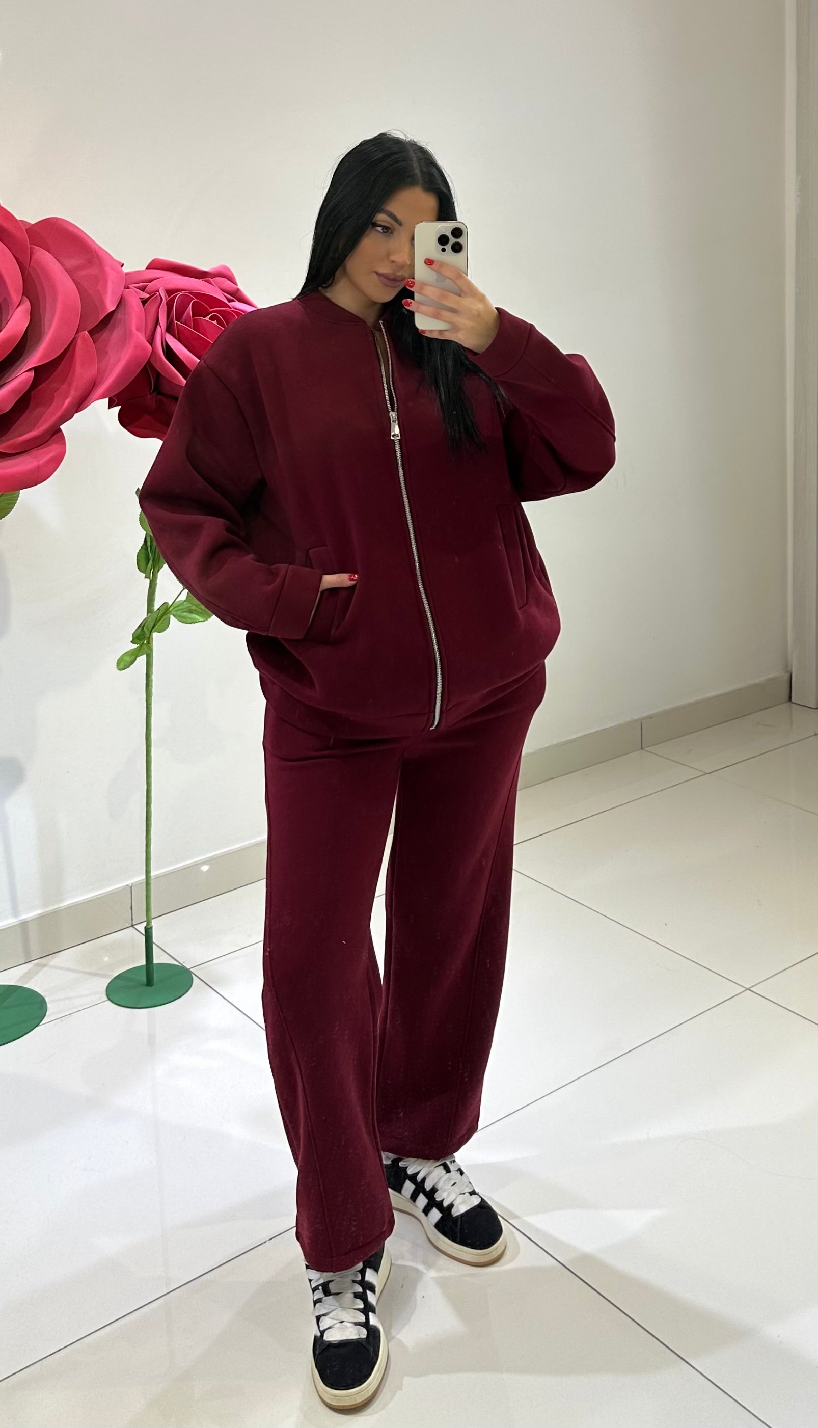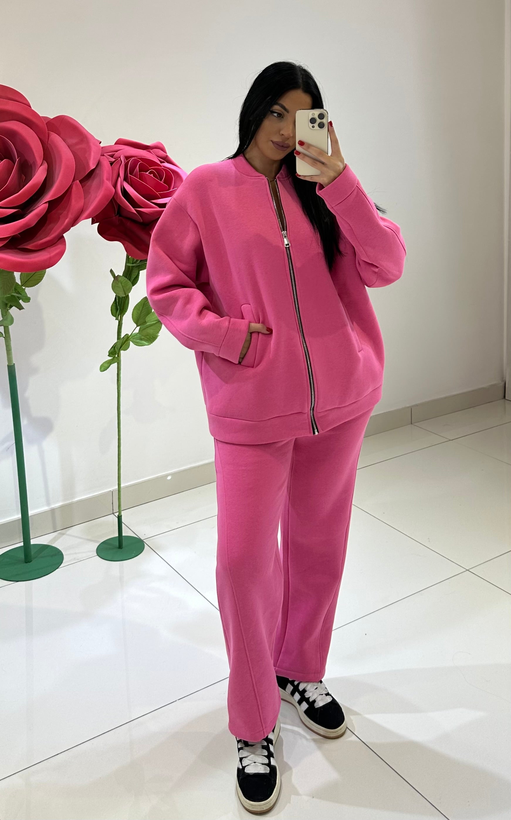 COORDSET COMPOSTO DA FELPA OVER CON ZIP E TASCHE LATERALI, PANTALONE CON ELASTICO IN VITA, GAMBA DRITTA E TASCHE LATERALI. VARI COLORI.