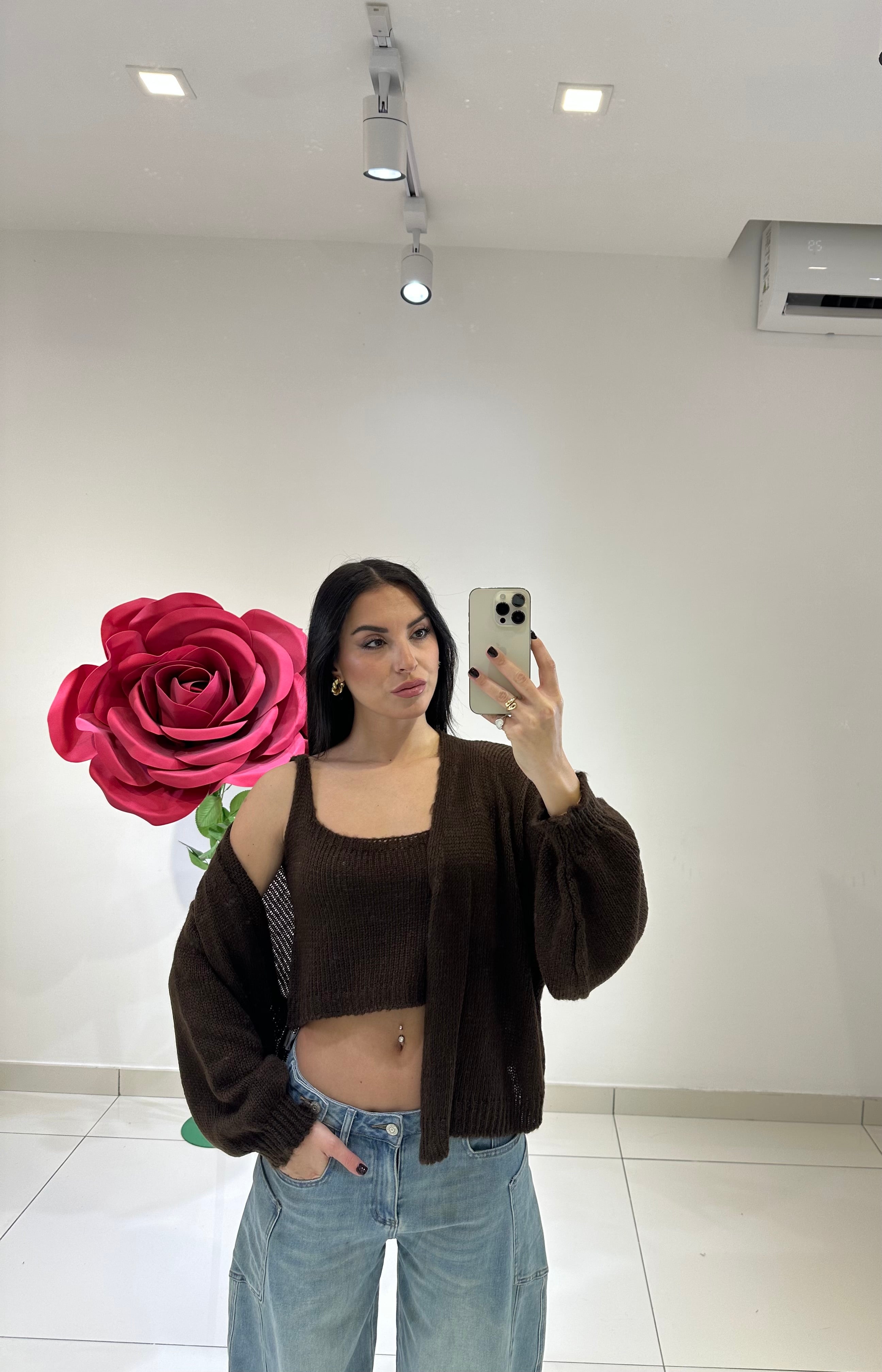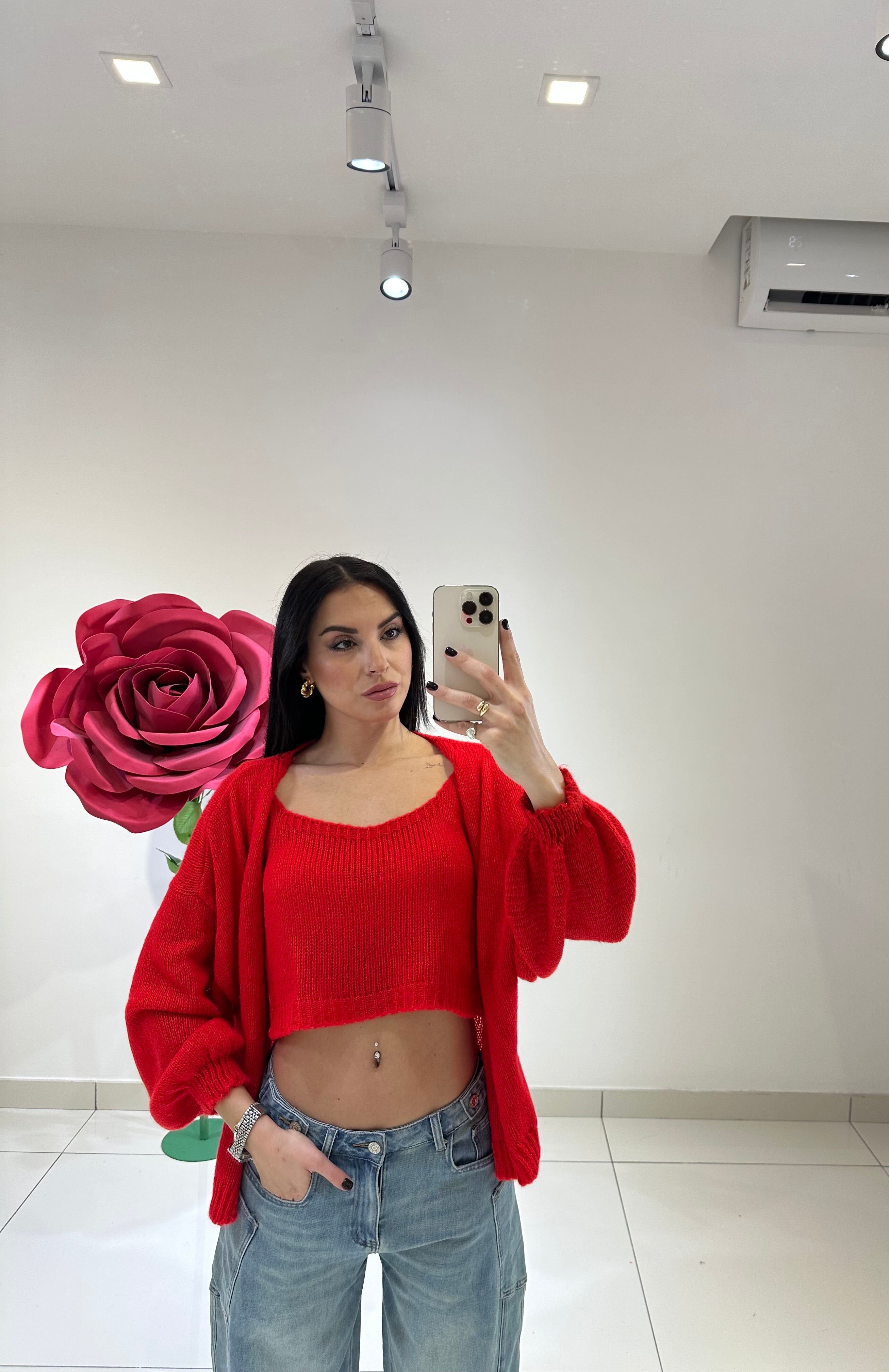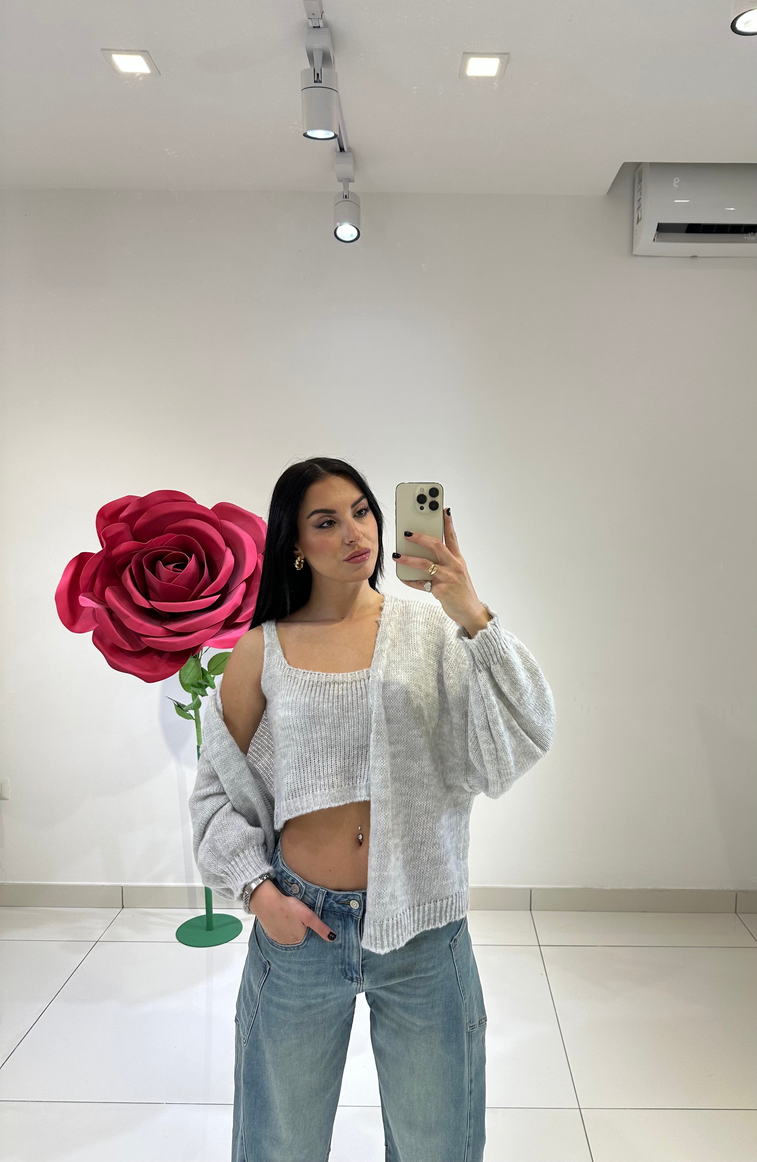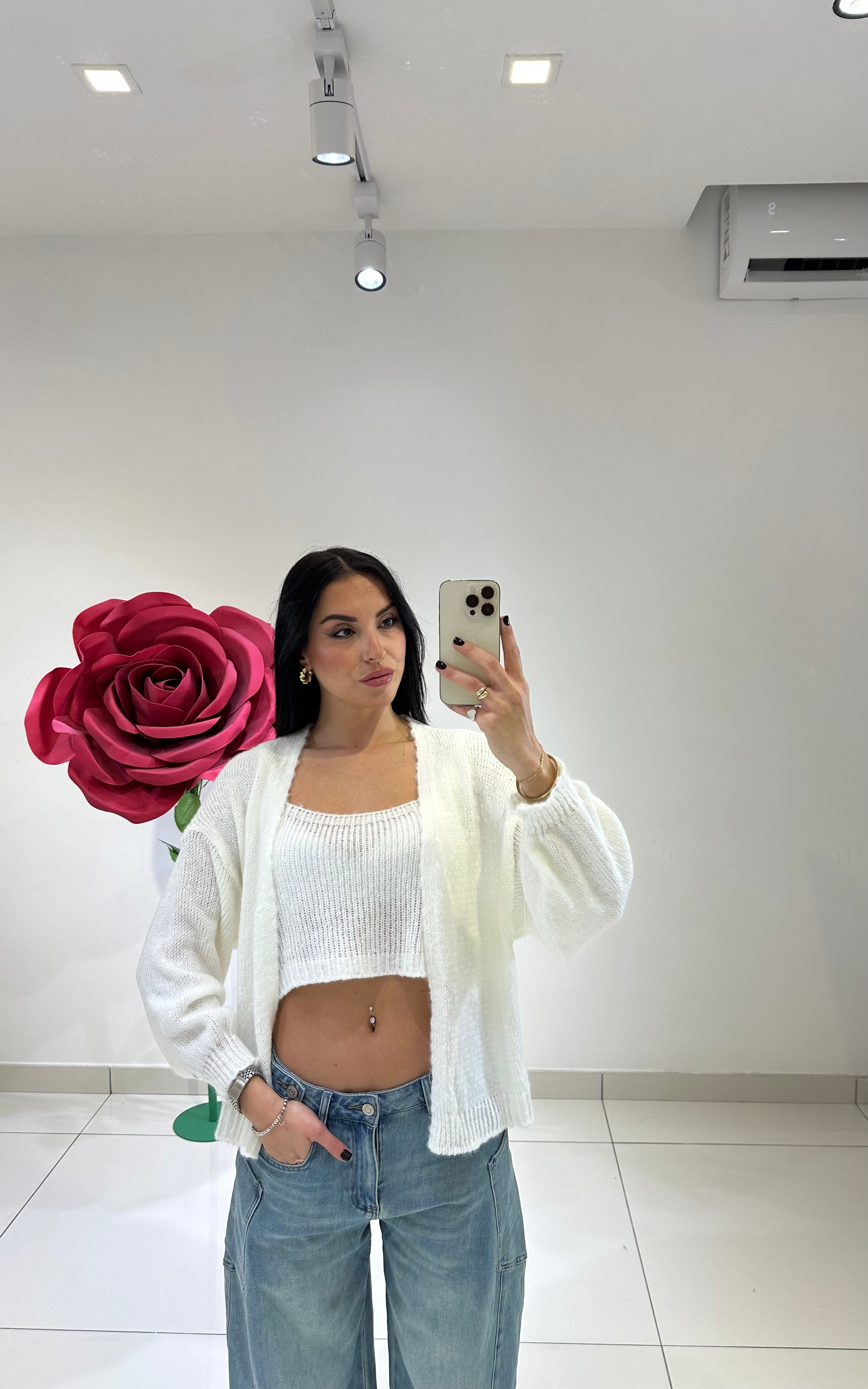 SET IN MAGLIA COMPOSTO DA TOP CROP E CARDIGAN DA UNA MORBIDA VESTIBILITÁ. IN VARI COLORI