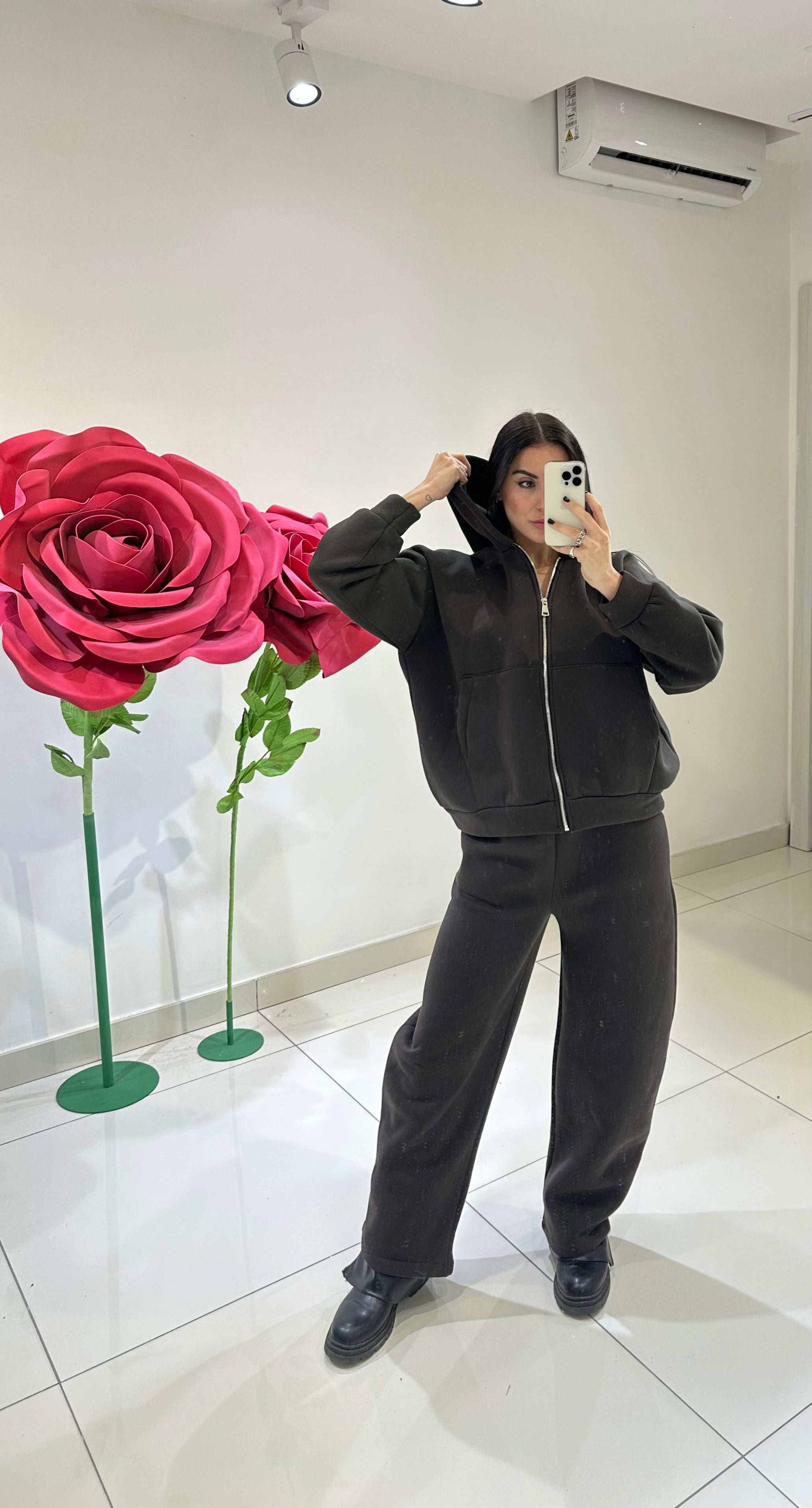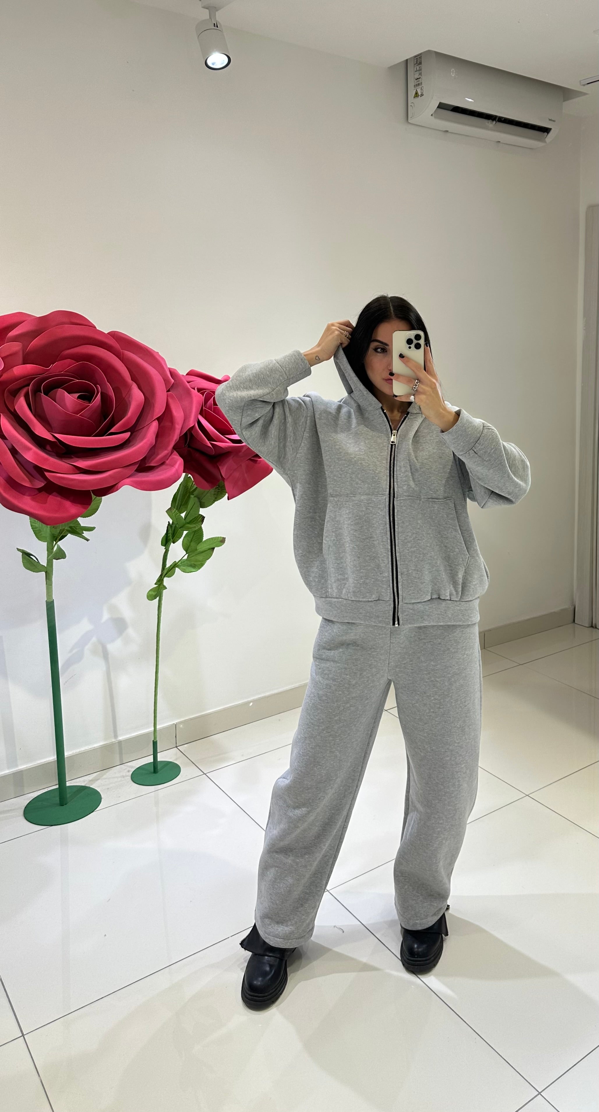 COORDSET COMPOSTO DA FELPA CROP OVER CON CAPPUCCIO ,ZIP CENTRALE E COULISSE IN VITA REGOLABILE, PANTALONE MORBIDO CON ELASTICO IN VITA E ALLA CAVIGLIA