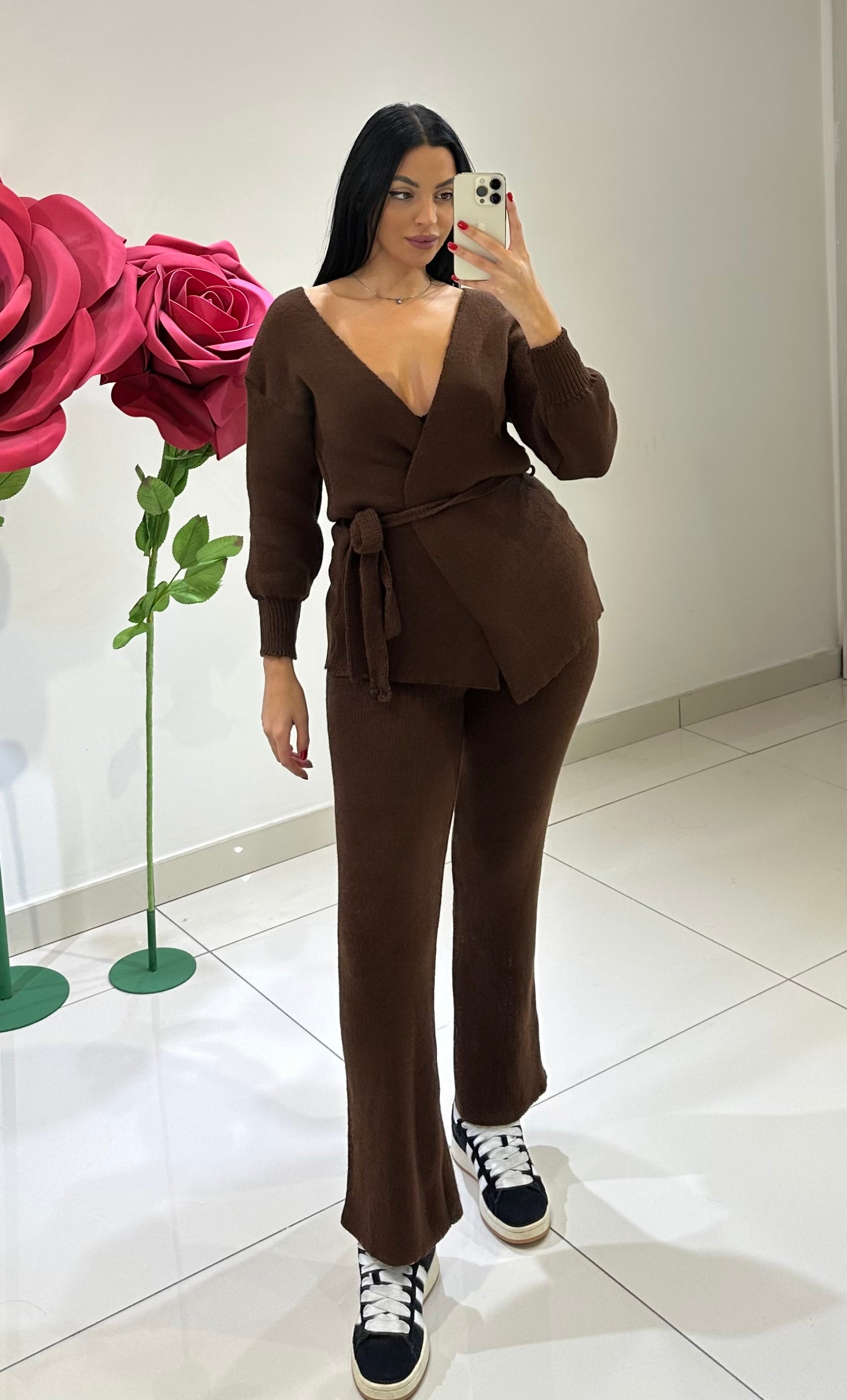 COORDSET IN LANA, CARDIGAN CHIUSURA KIMONO, PANTALONE GAMBA DRITTA VITA ALTA CON ELASTICO. IN VARI COLORI