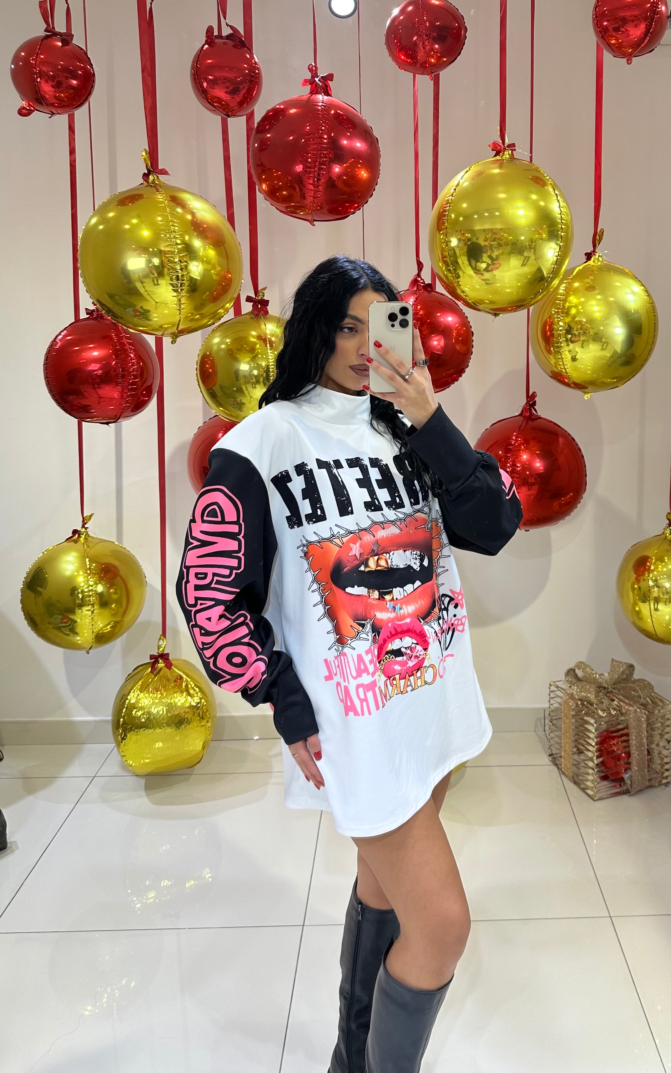 FELPA LONG SLEEVE CON SPALLINE IMBOTTITE E MEZZO COLLO, DETTAGLIATA INTERAMENTE DA STAMPE . IN VARI COLORI