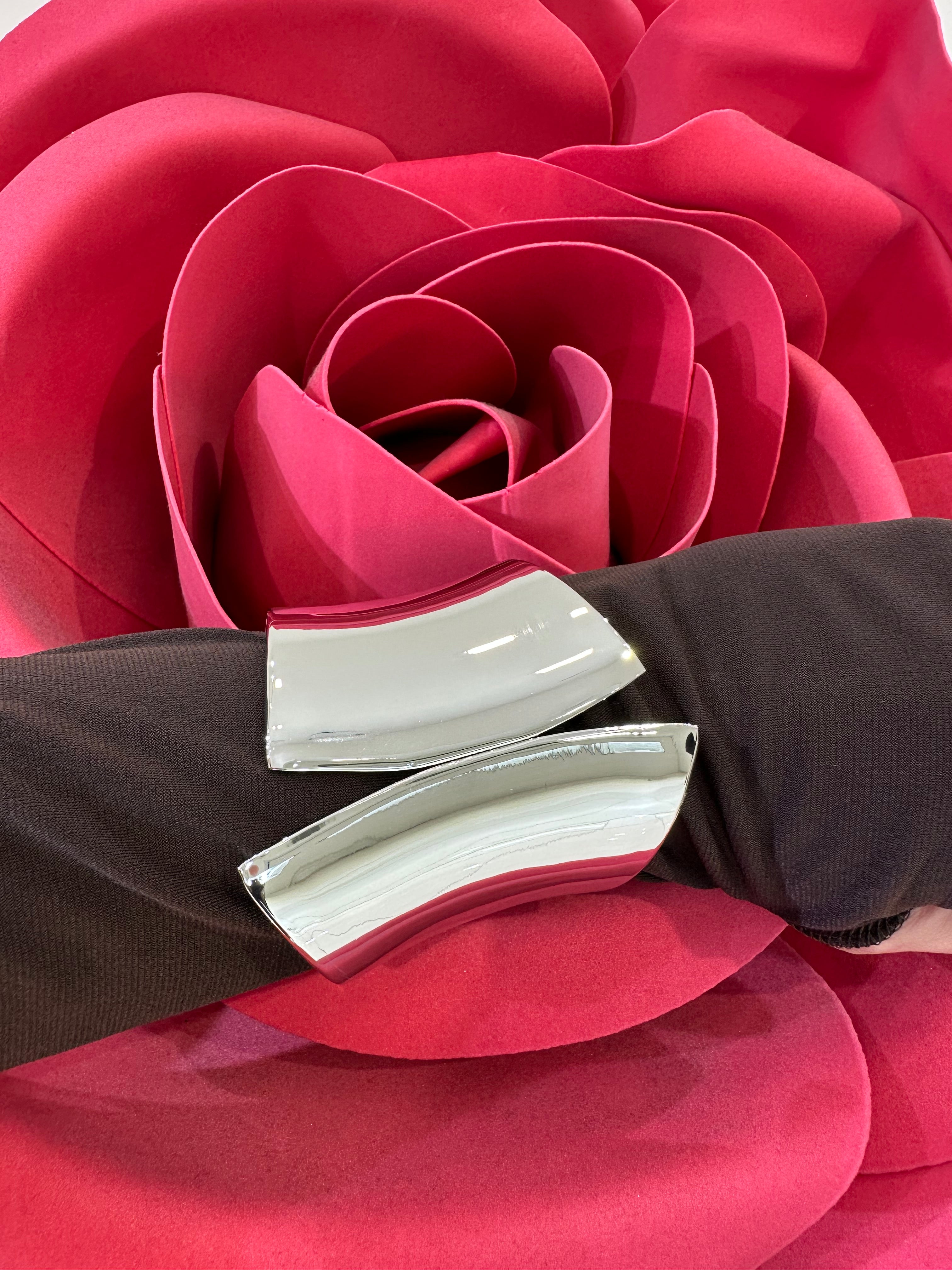 BRACCIALE RIGIDO ELEGANTE,COLOR ORO CHIARO,CARATTERIZZATO DA ELEMENTI METALLICI LEGGERMENTE CURVATI.PERFETTI COME ACCESSORIO FEMMINILE E DI CARATTERE!