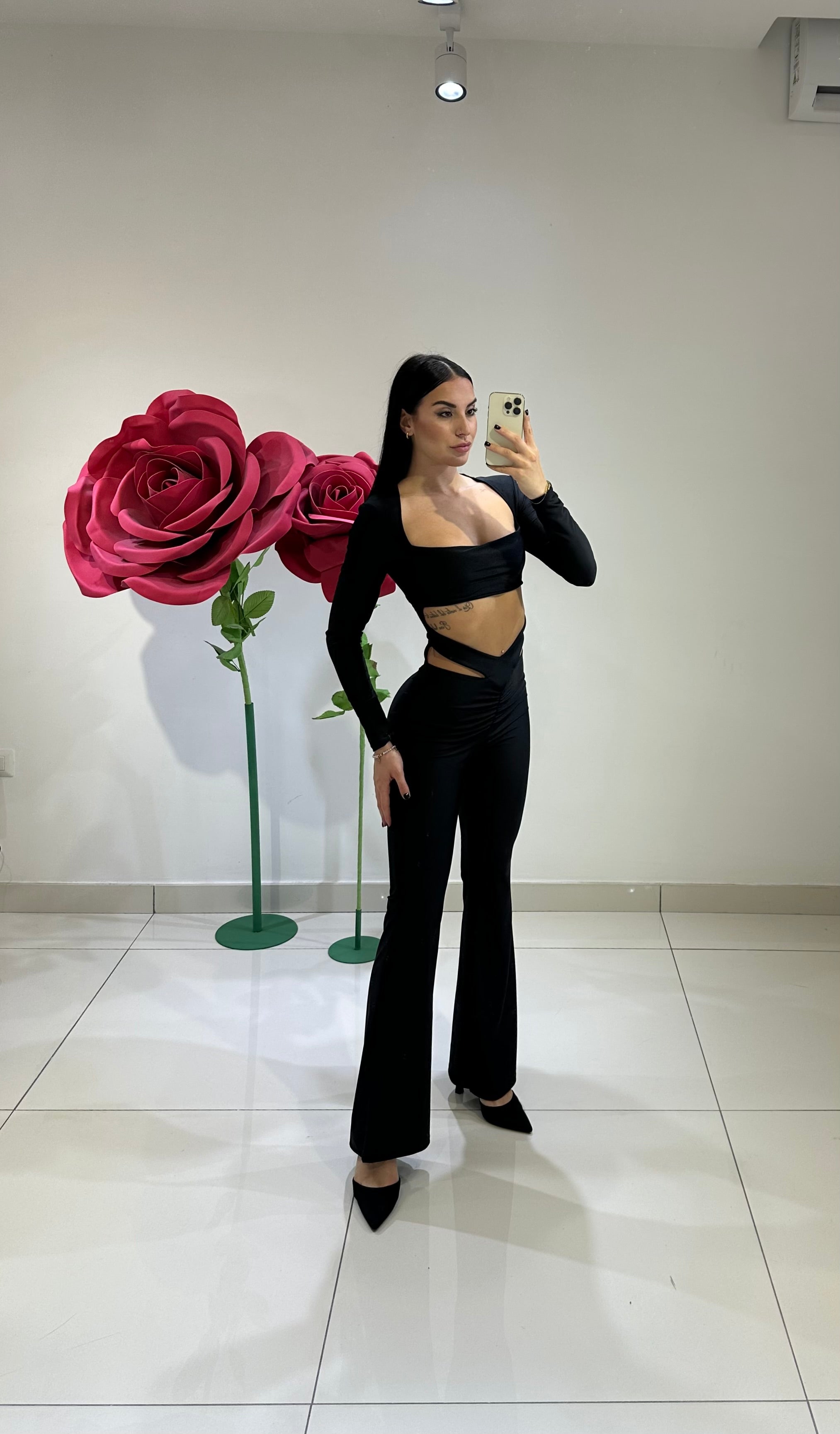 JUMPSUITE TOTAL LYCRA ,SUPER MODELLANTE CON SCOLLO TRASVERSALE E MANICA A MEZZO GUANTO, FINISCE A ZAMPA.