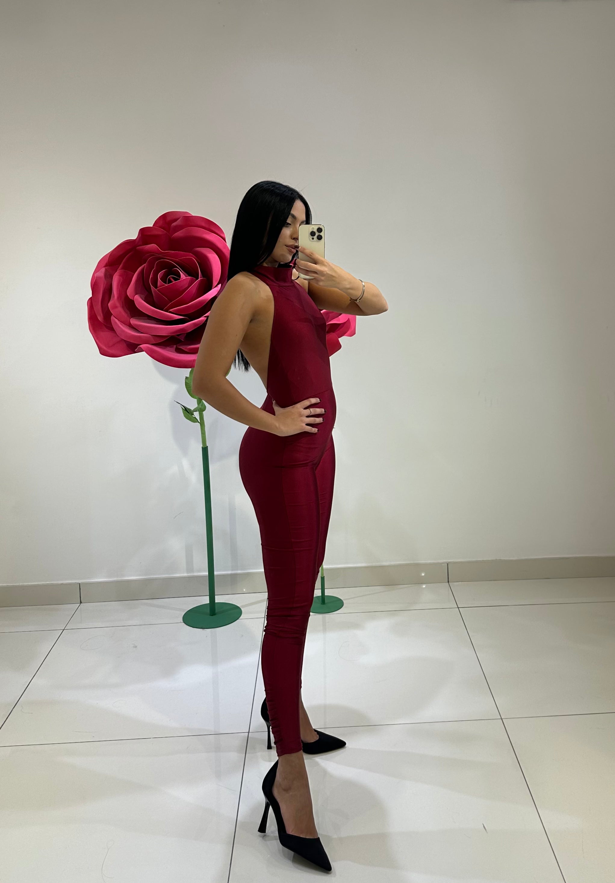 JUMPSUITE IN ECOPELLE, COPPE PREFORMATE E PANTALONE A SIGARETTA, COPRISPALLE MEZZO GUANTO. IN VARI COLORI