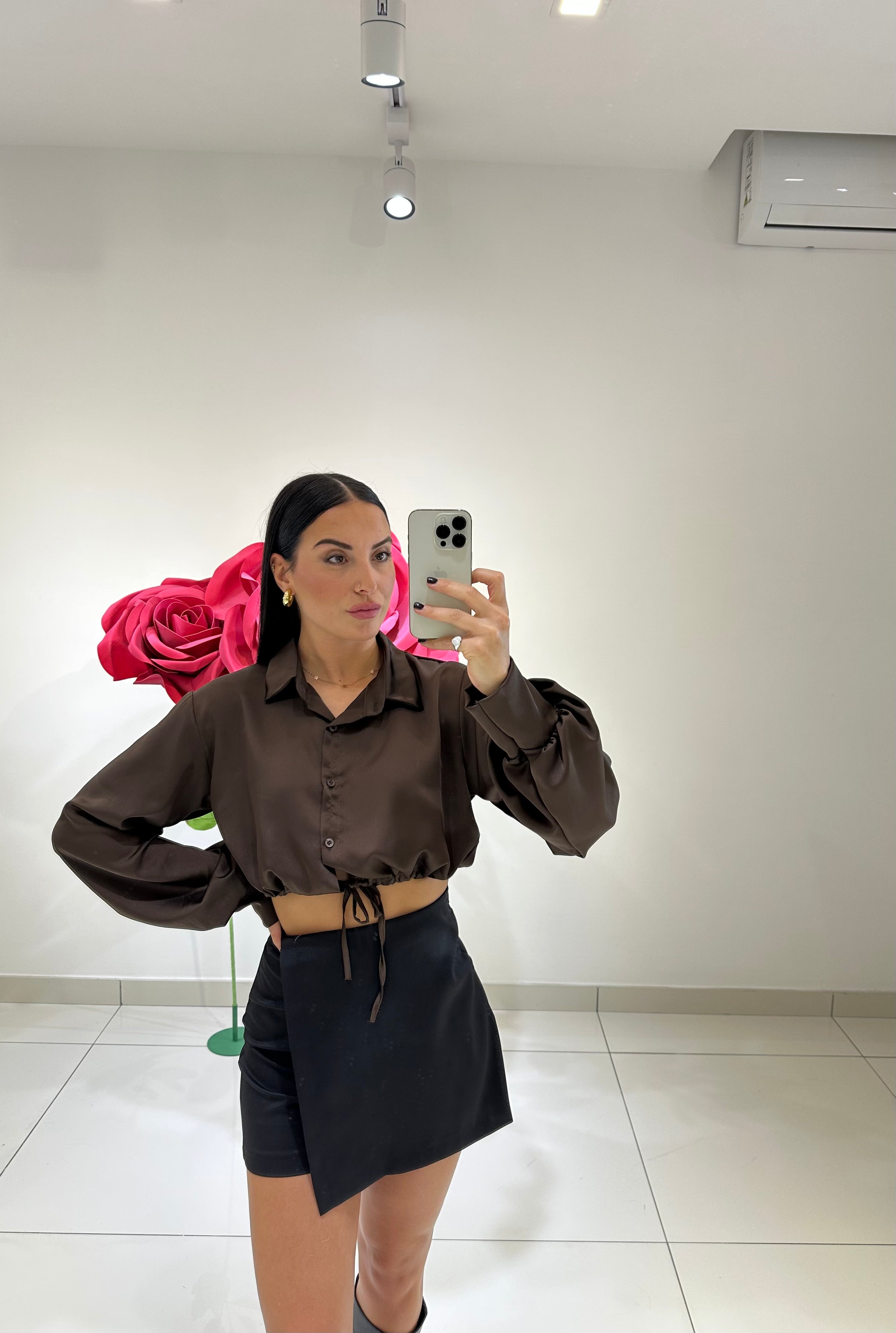 BLUSA IN RASO CON LACCI REGOLABILI AL FONDO, MANICA A SBUFFO E POLSINO AMPIO. IN VARI COLORI