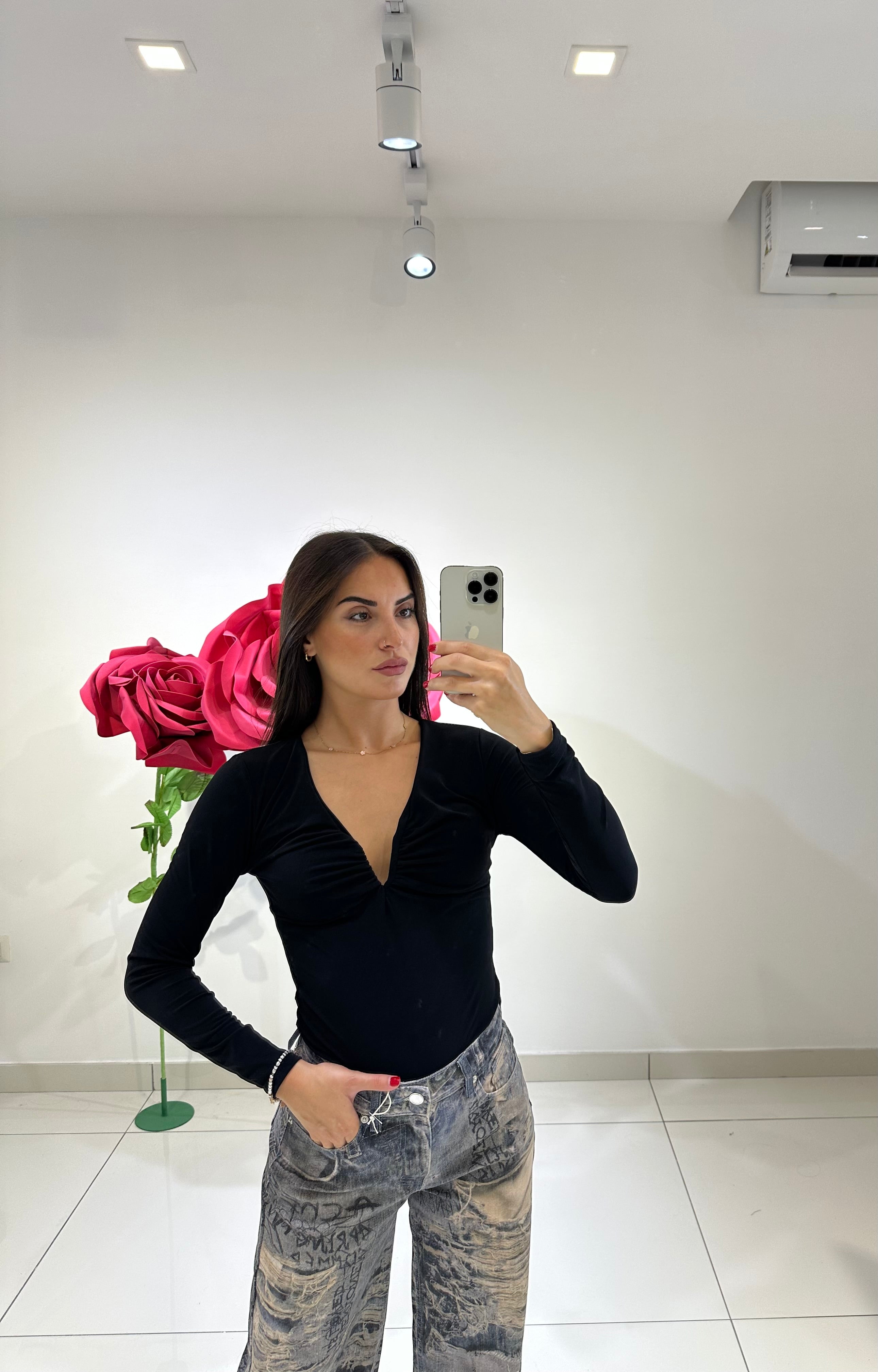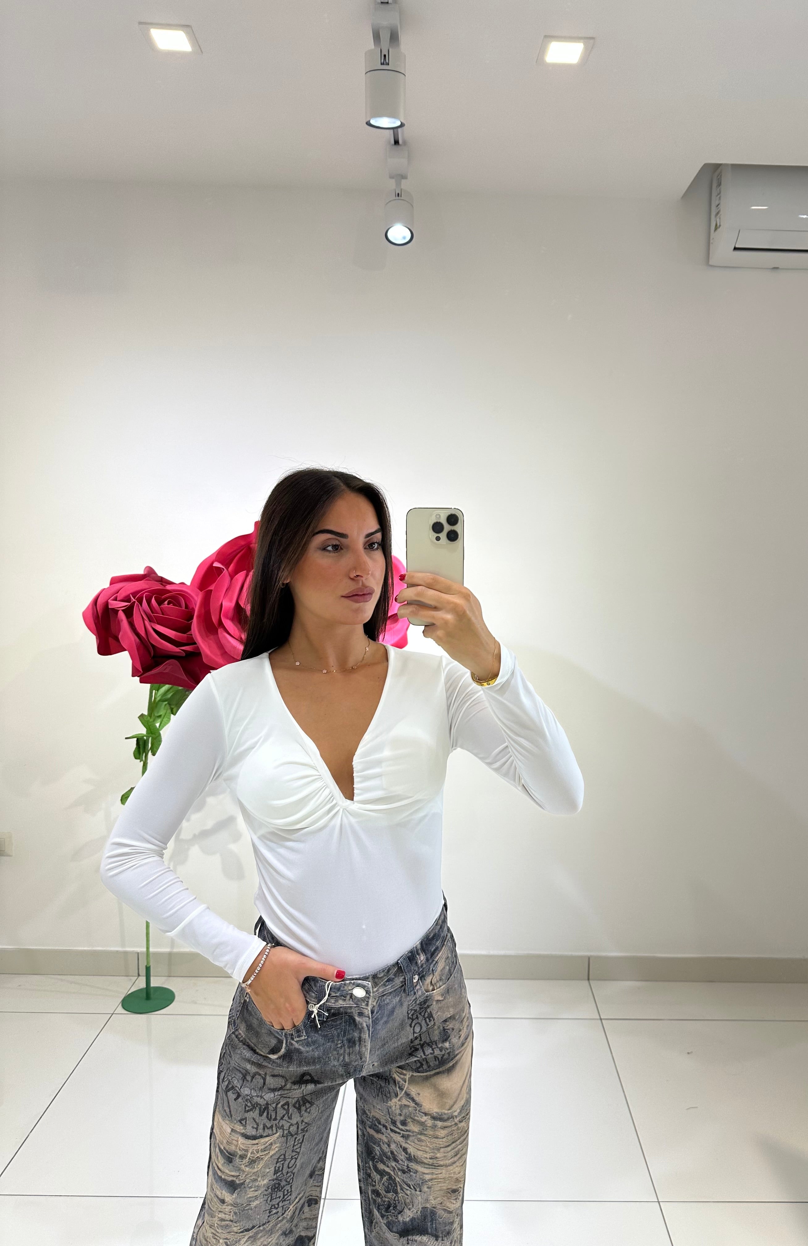 V-Neck Underwired Bodysuit, Cups Included, Draped Sides. Available in Various Colors.