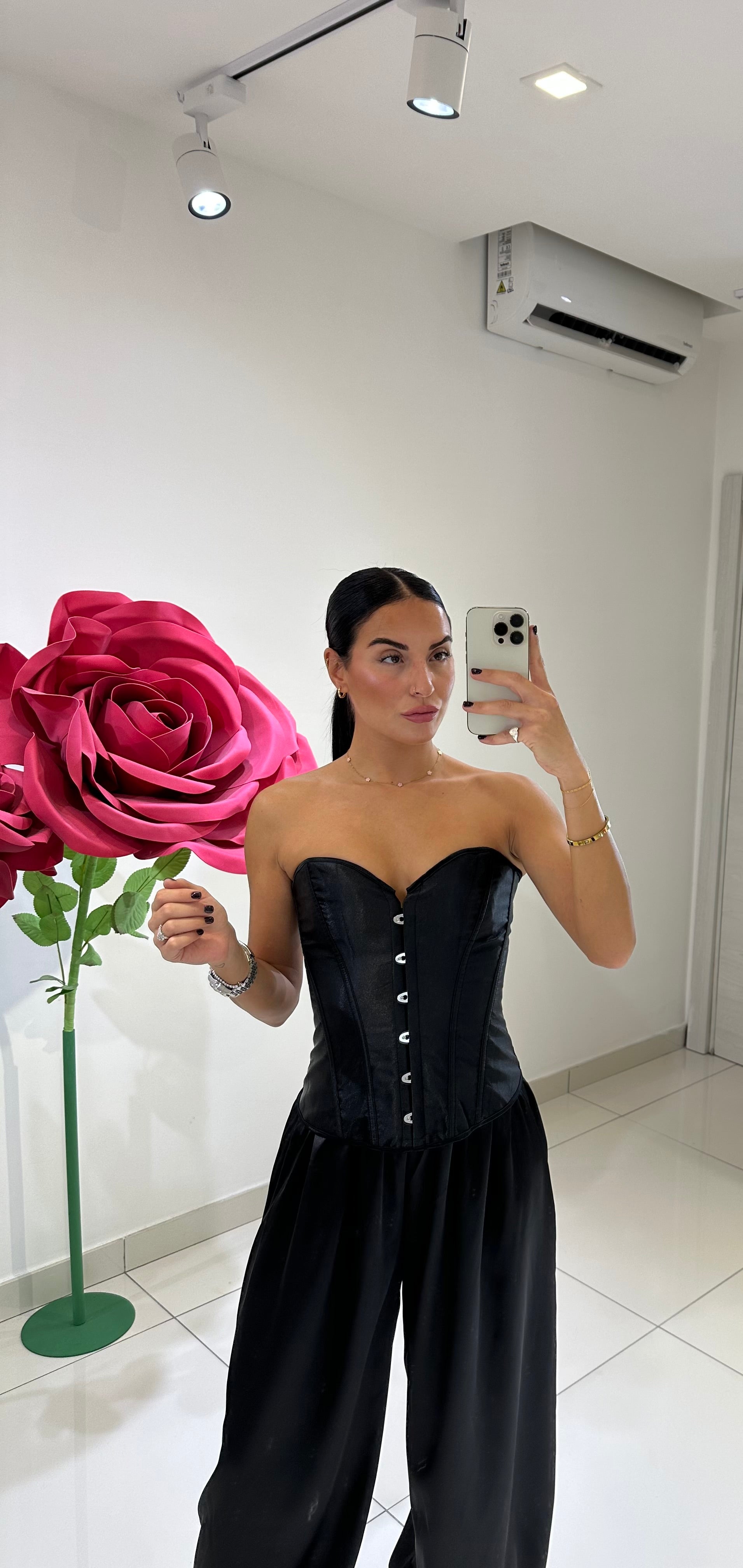 SATIN CORSET WITH UNDERWIRE, CENTER CLOSURE, AND SWEETHEART NECKLINE. ADJUSTABLE STRAPS AT THE BACK. AVAILABLE IN VARIOUS COLORS.
