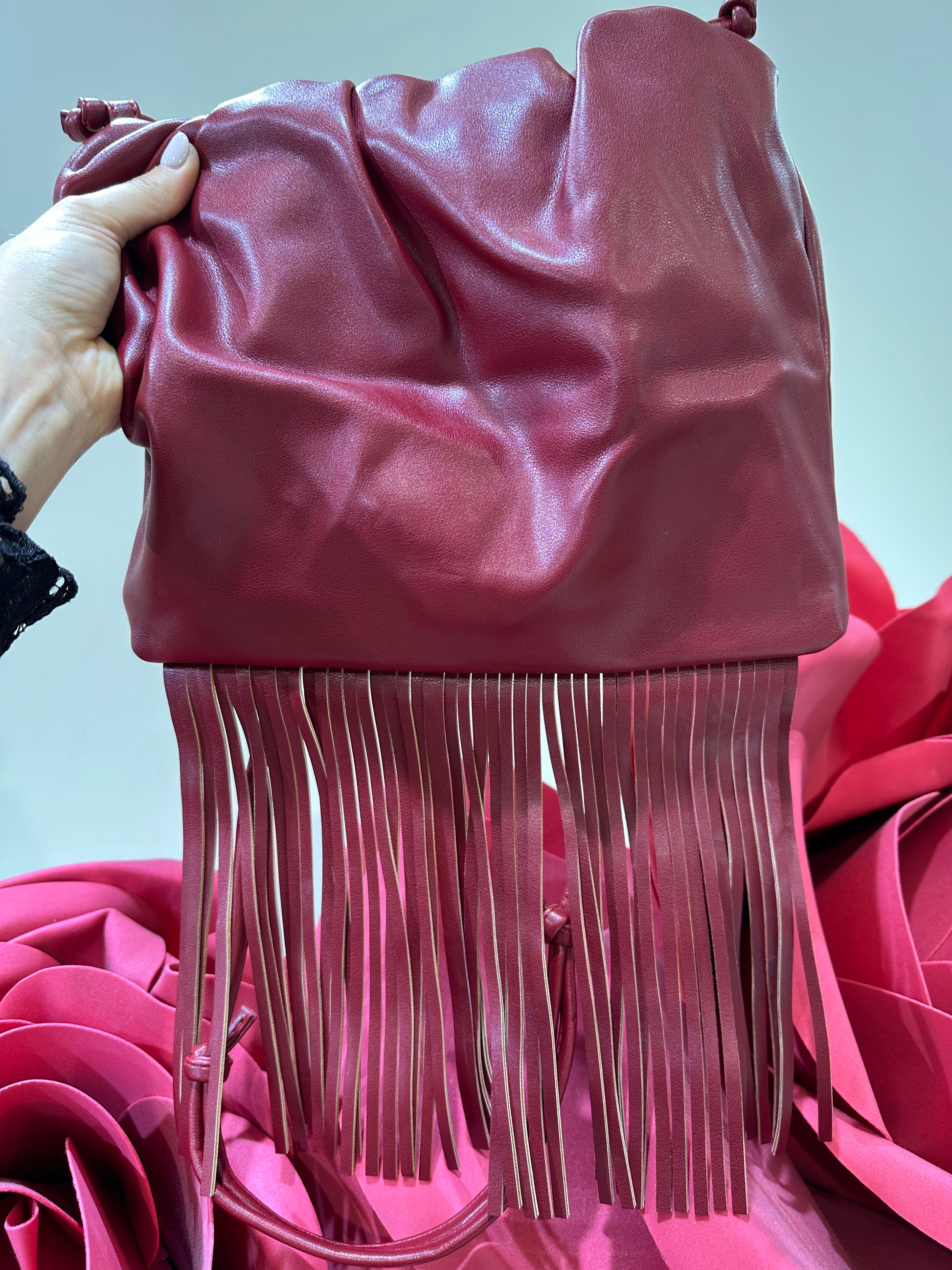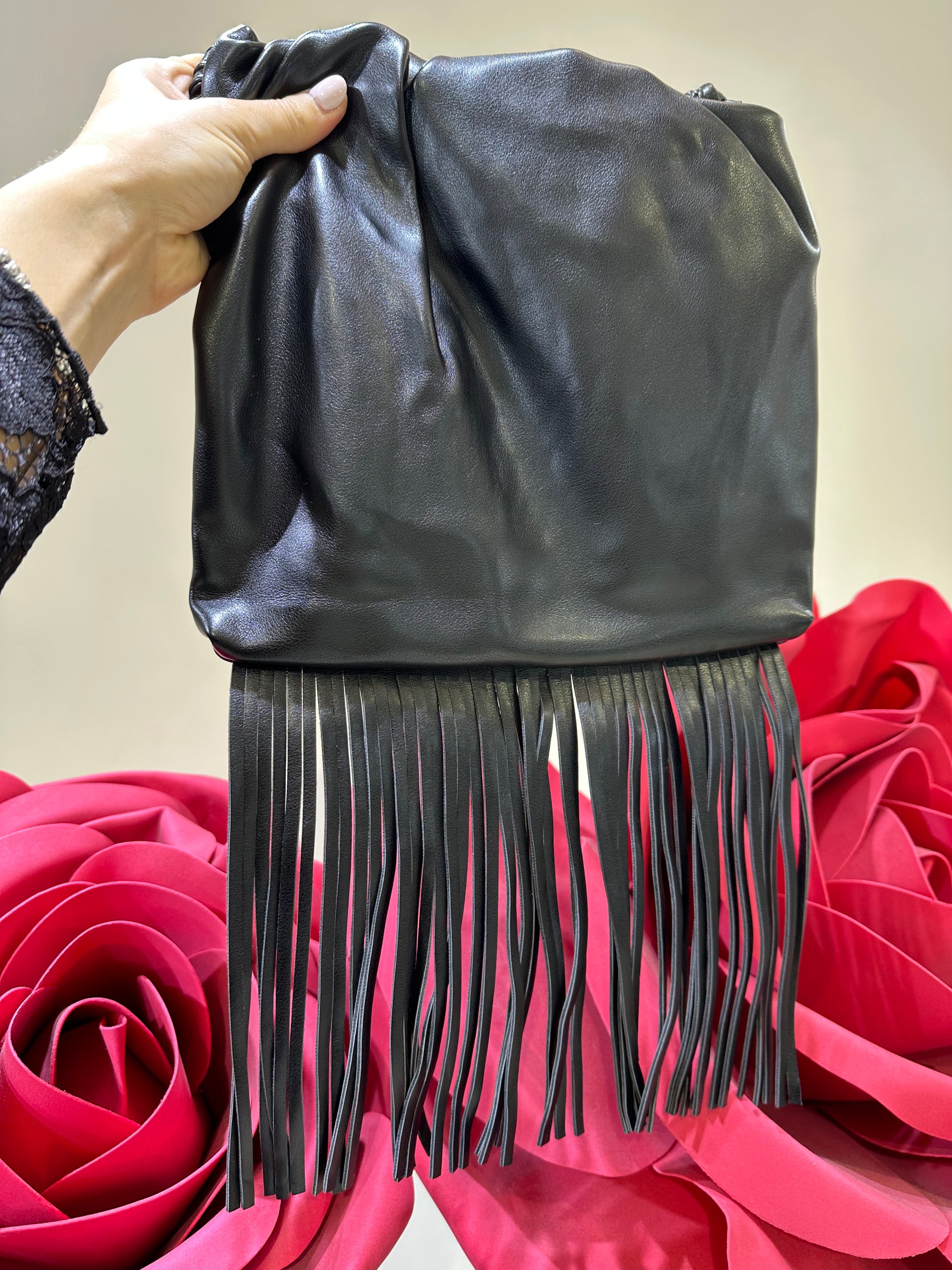 BORSA IN ECOPELLE CON FRANGE AL FONDO E TRACOLLA. IN VARI COLORI