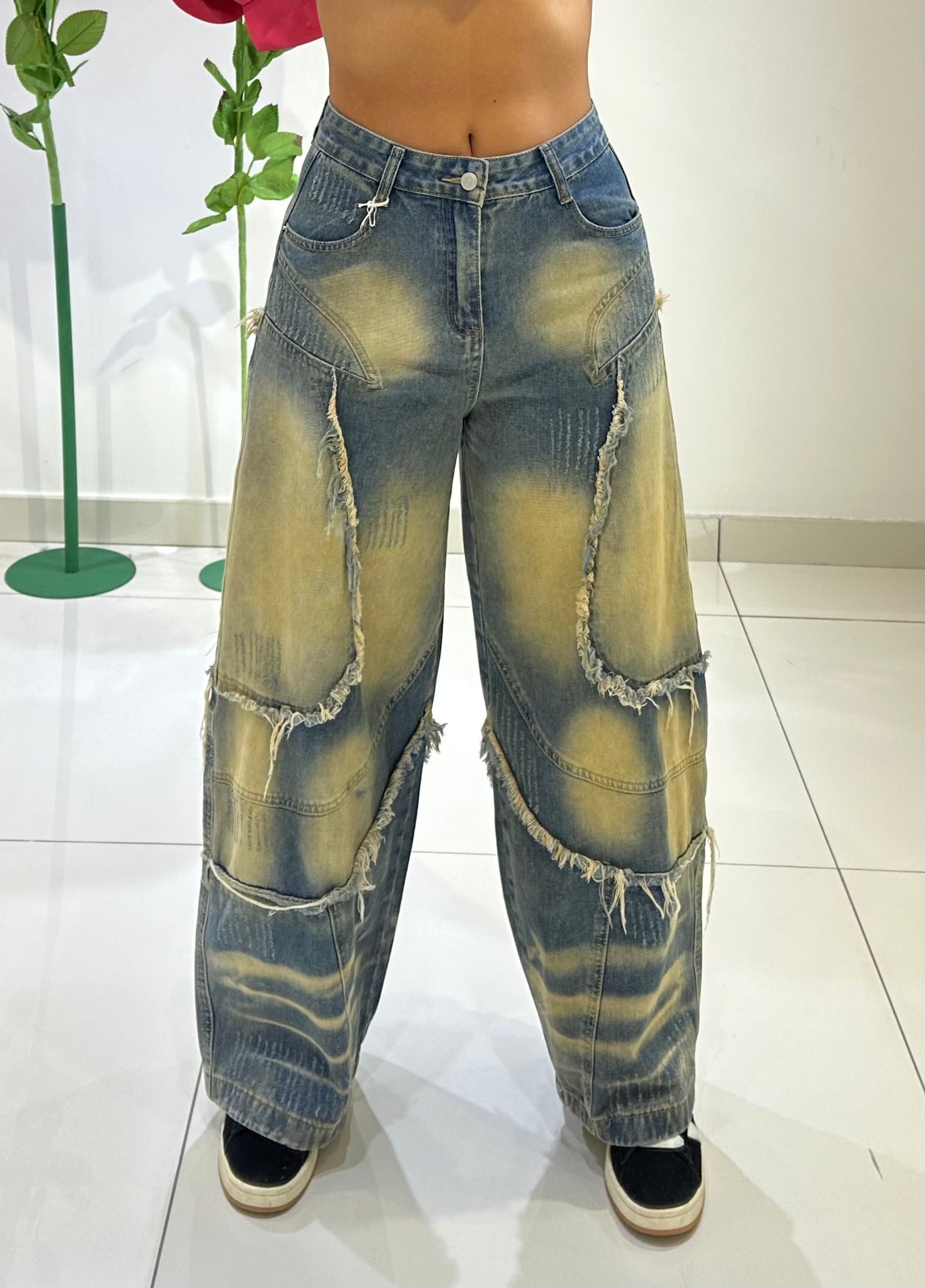 BAGGY ALTA VITA, COLORI SFUMATI ,INTERAMENTE DETTAGLIATO DA TOPPE. VA A TAGLIE