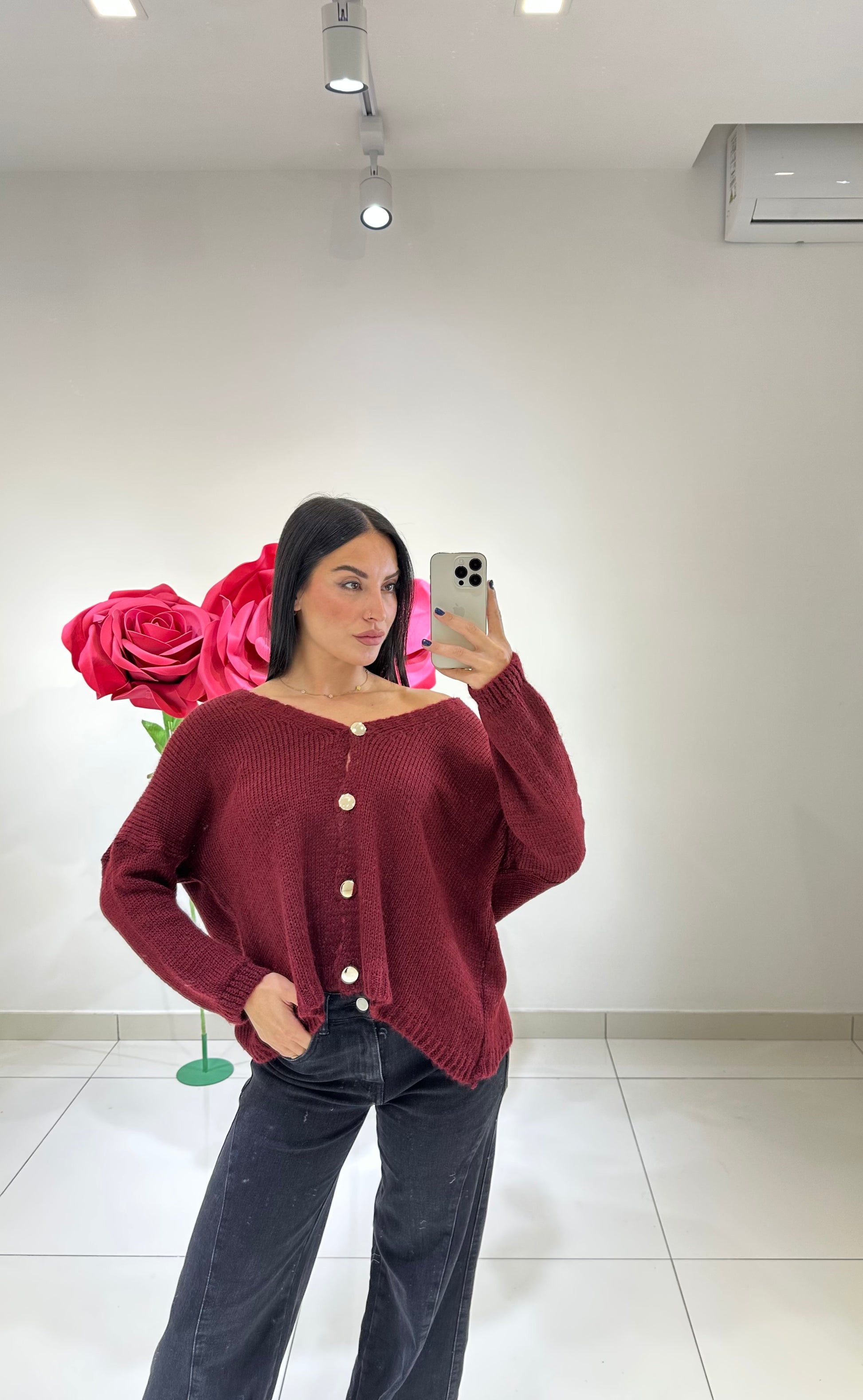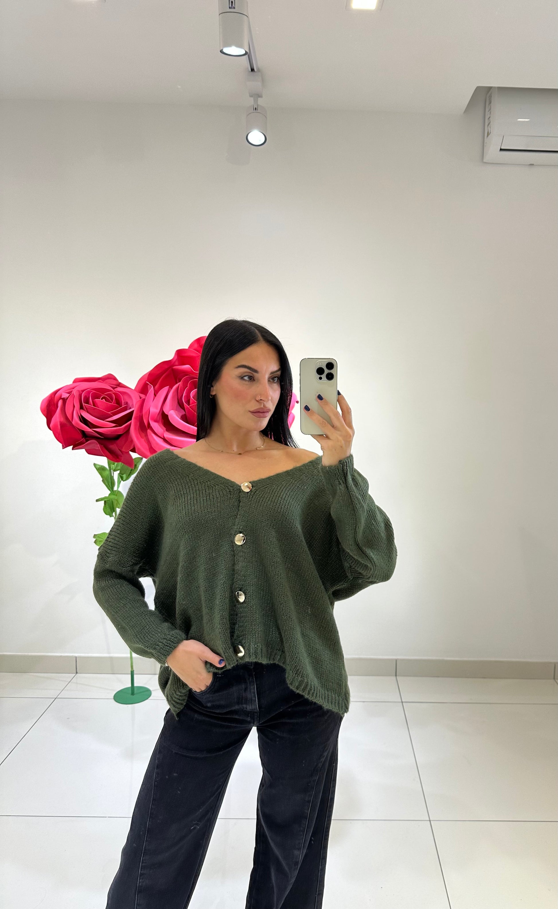 CARDIGAN IN LANA OVER, AMPIO SCOLLO E BOTTONI ORO. IN VARI COLORI