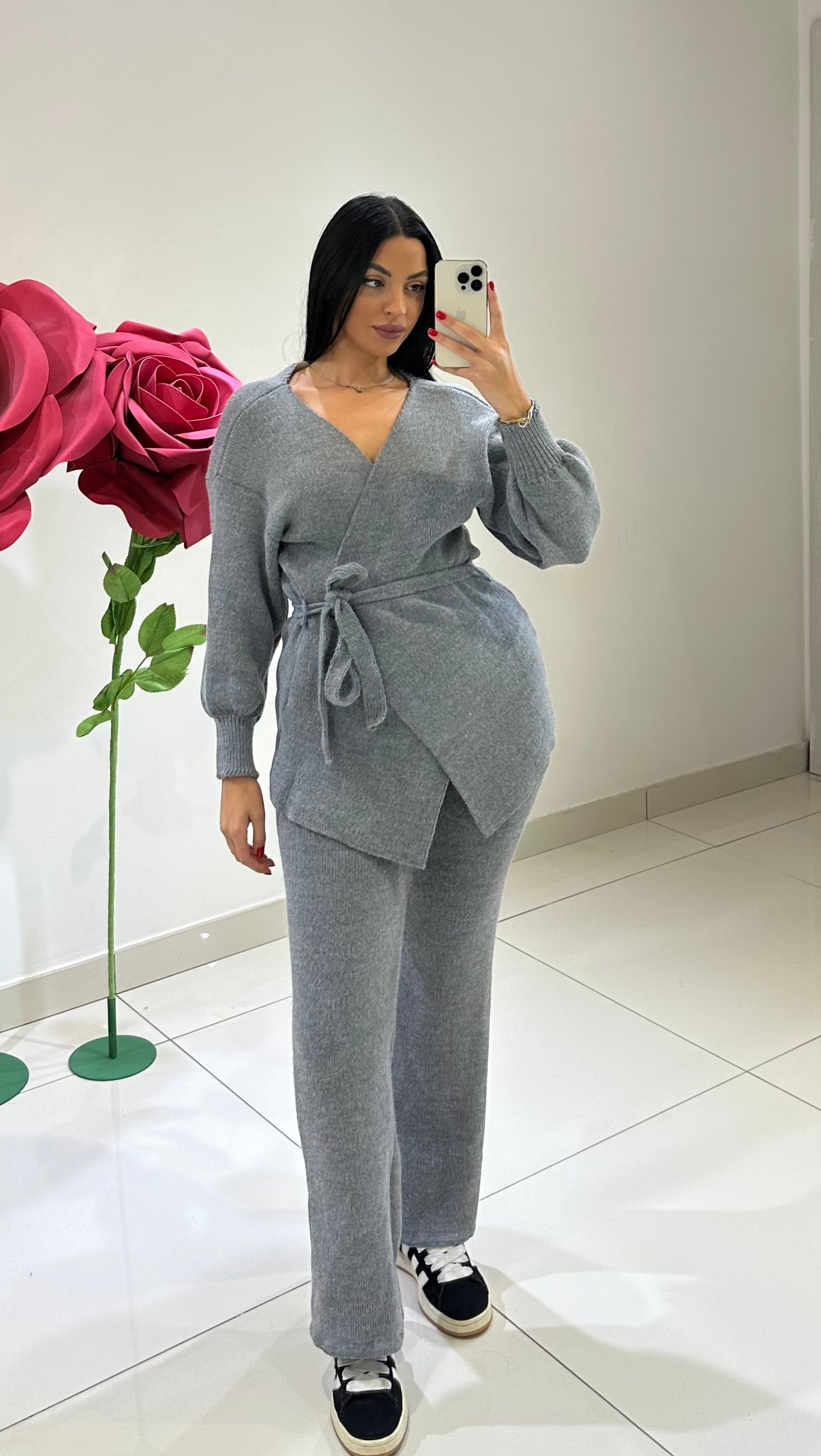 COORDSET IN LANA CON MAGLIA CON CHIUSURA A KIMONO E PANTALONE GAMBA DRITTA CON ELASTICO IN VITA. VARI COLORI