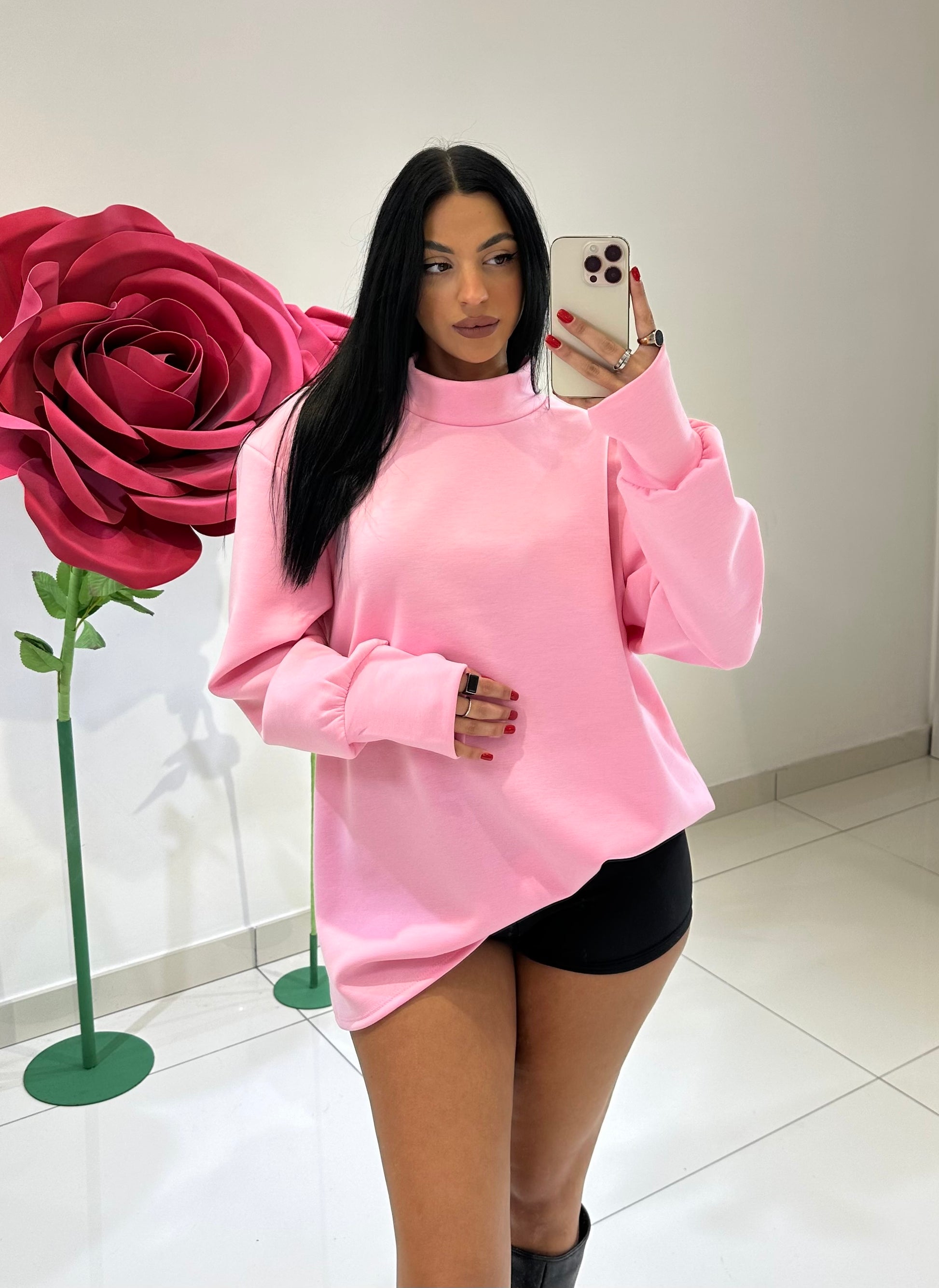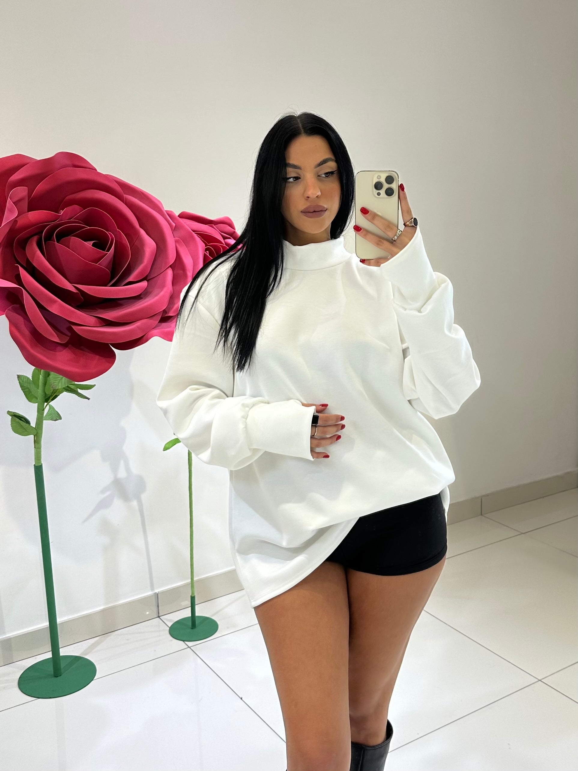 FELPA DAL TAGLIO OVER ,TESSUTO ELASTICO, MEZZO COLLO E MANICA CHE FINISCE A MEZZO GUANTO. VARI COLORI.