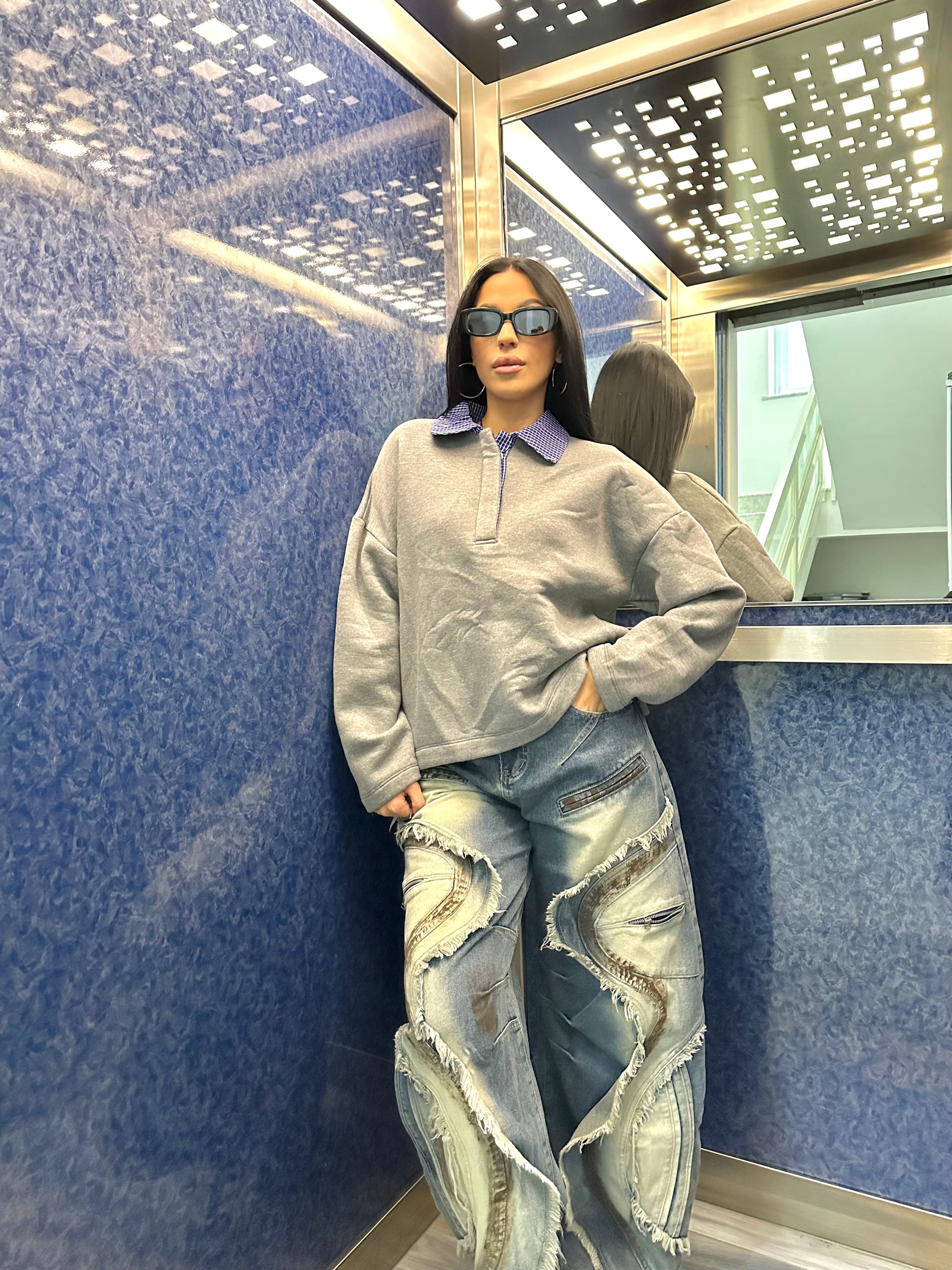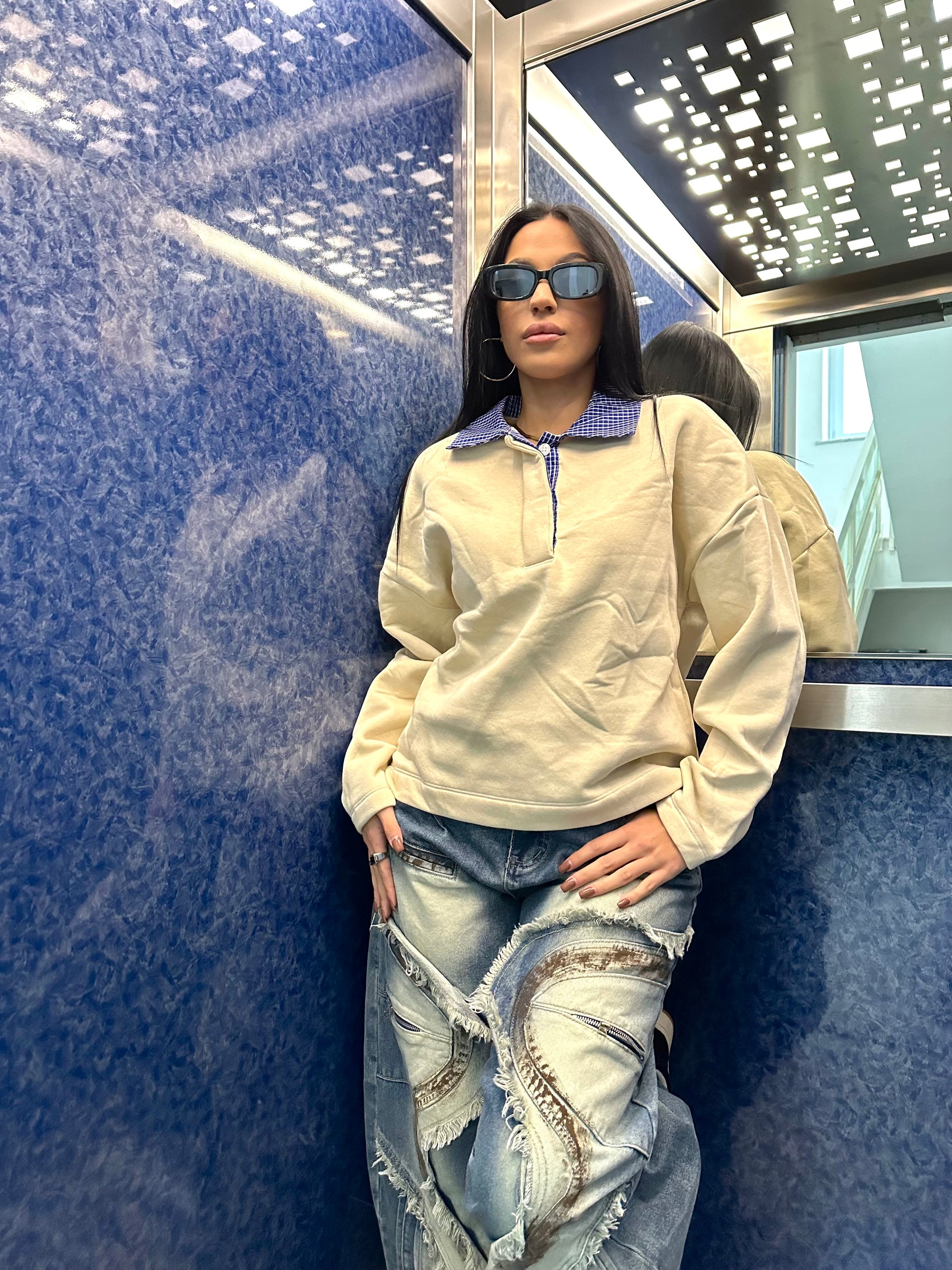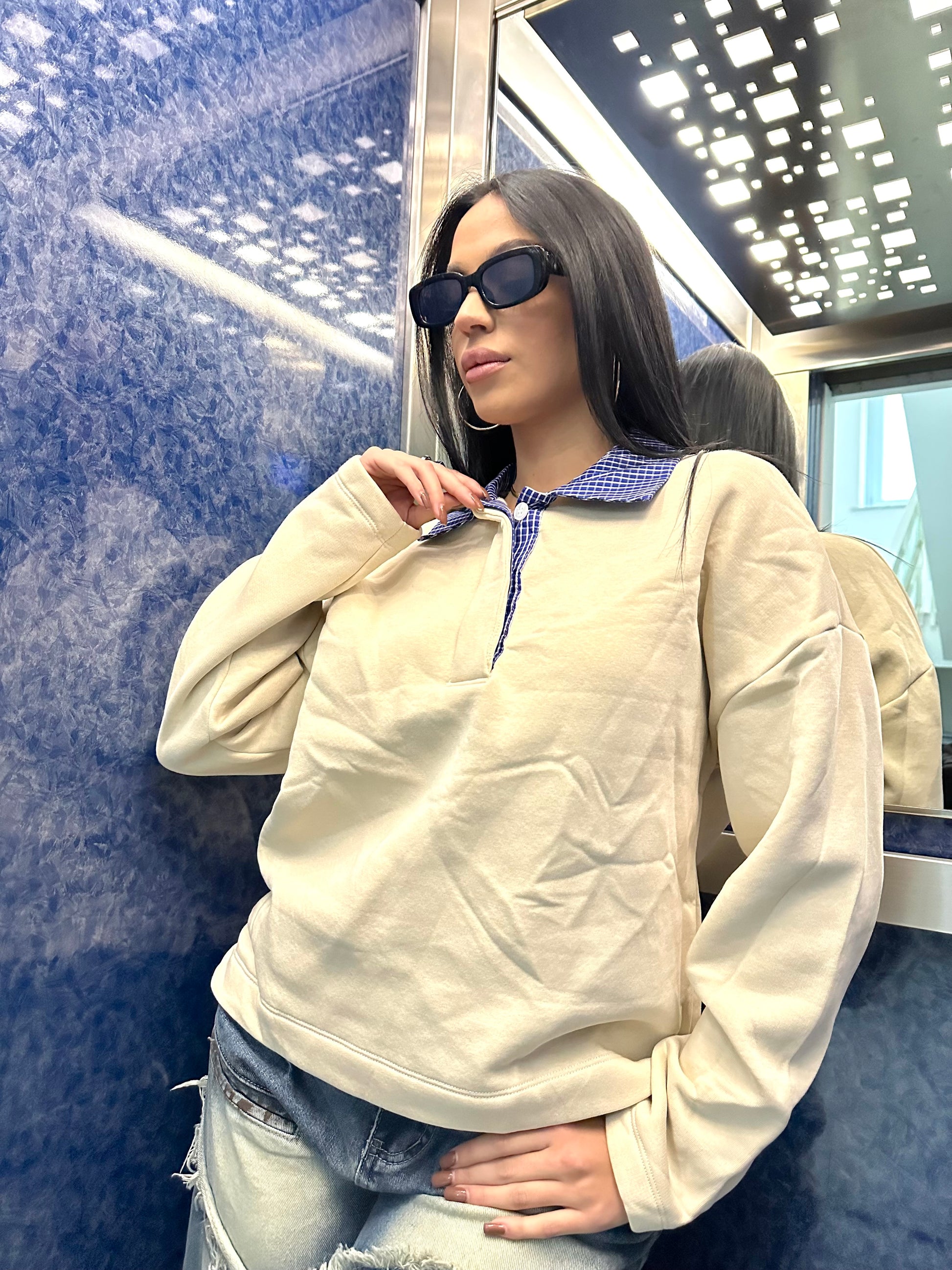 FELPA LUMINA TOP QUALITY, CALDO PILE ALL’INTERNO, COLLETTO A CAMICIA CON BOTTONCINI A CONTRASTO DI COLORE. VARI COLORI.