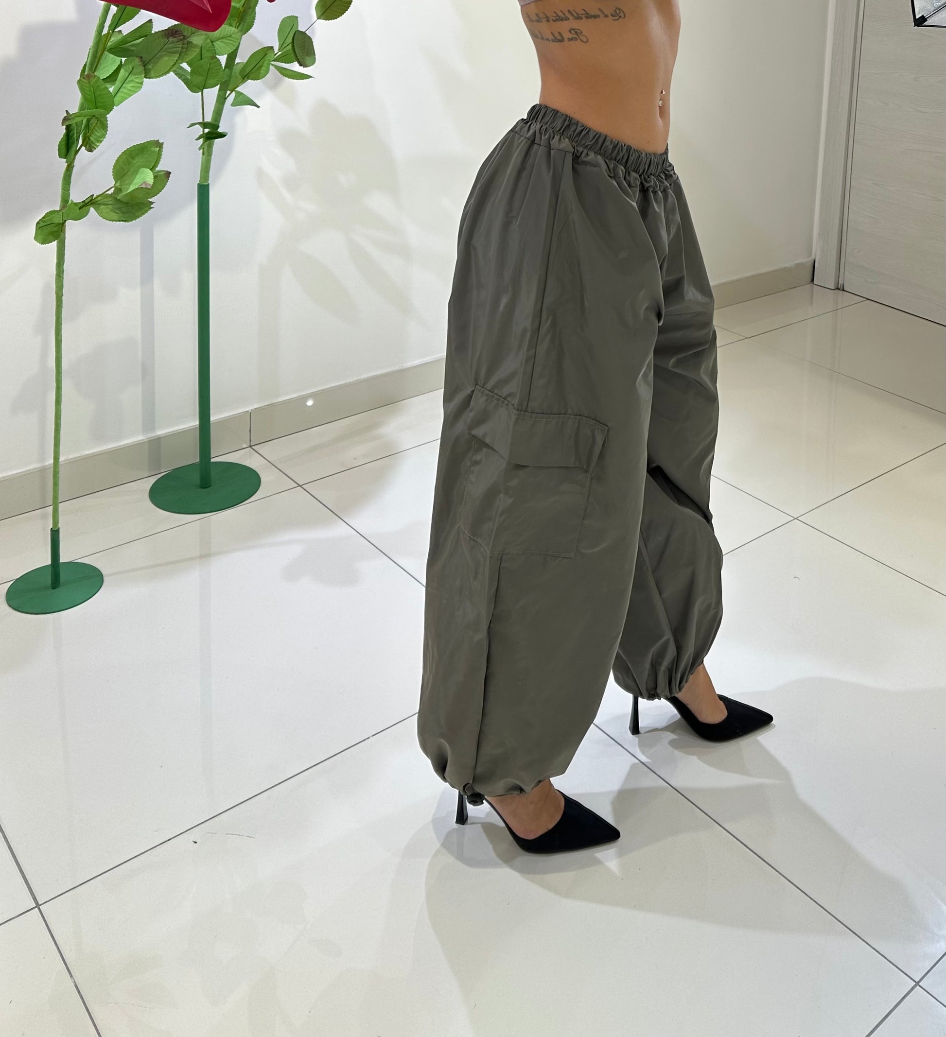 PARACUTE CARGO WITH ELASTIC WAIST, DRAWSTRING AT THE BOTTOM, IN VARIOUS COLORS