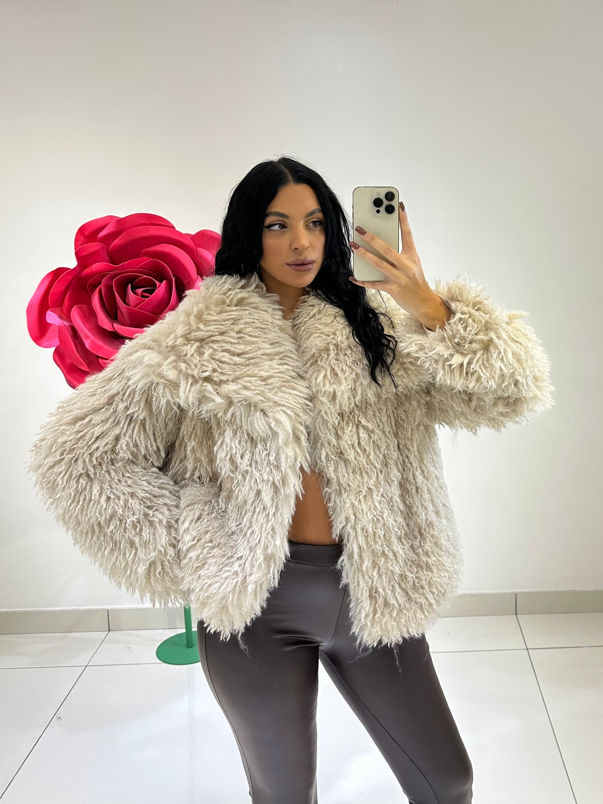 PELLICCIA A PELO LUNGO, FODERATA ALL’INTERNO , CHIUSURA CON BOTTONI A SCOMPARSA. VARI COLORI