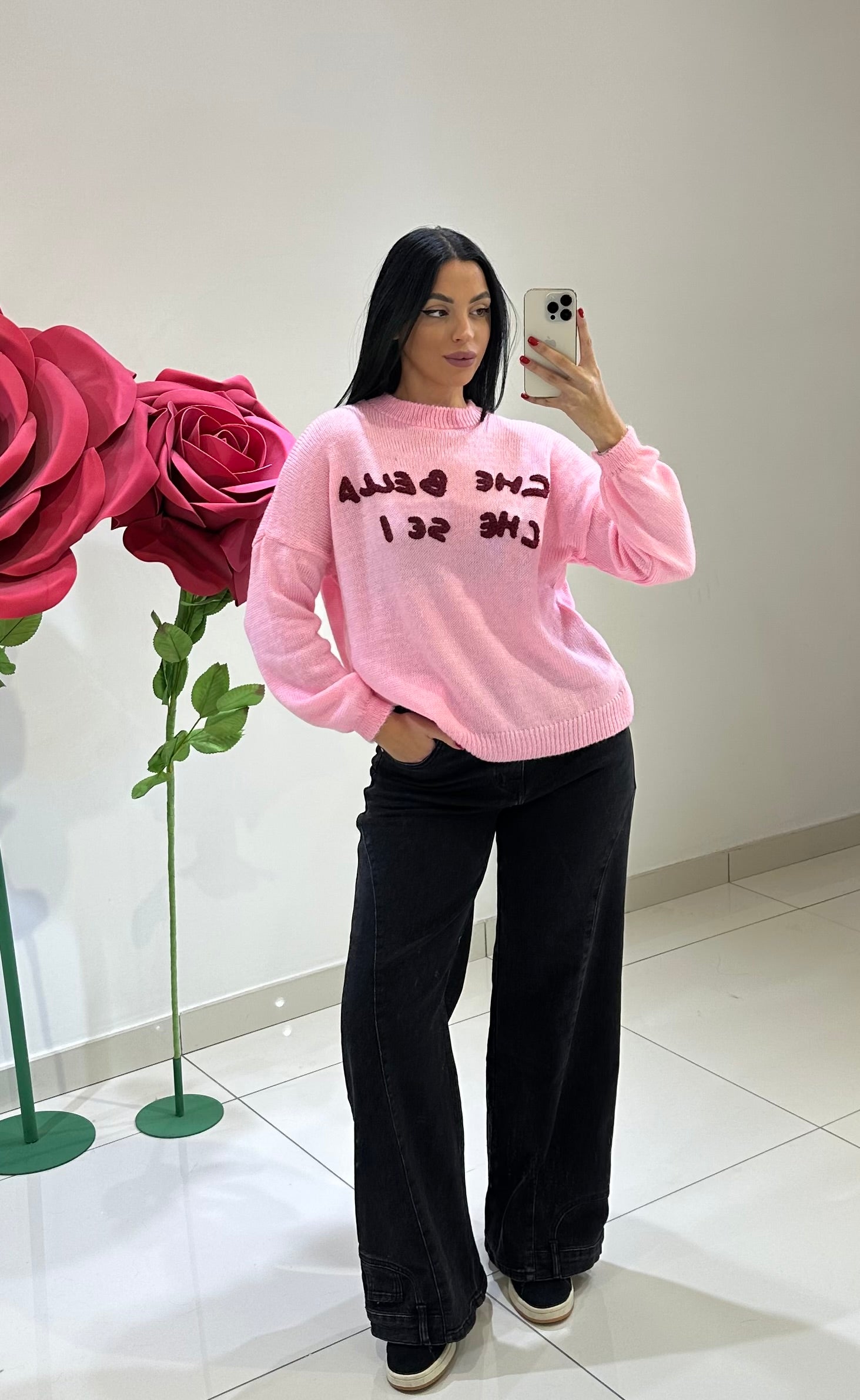 PULL IN LANA CON COLLETTO E POLSINI A COSTE, DETTAGLIATA DA SCRITTA SUL DAVANTI A CONTRASTO DI COLORE. VARI COLORI.