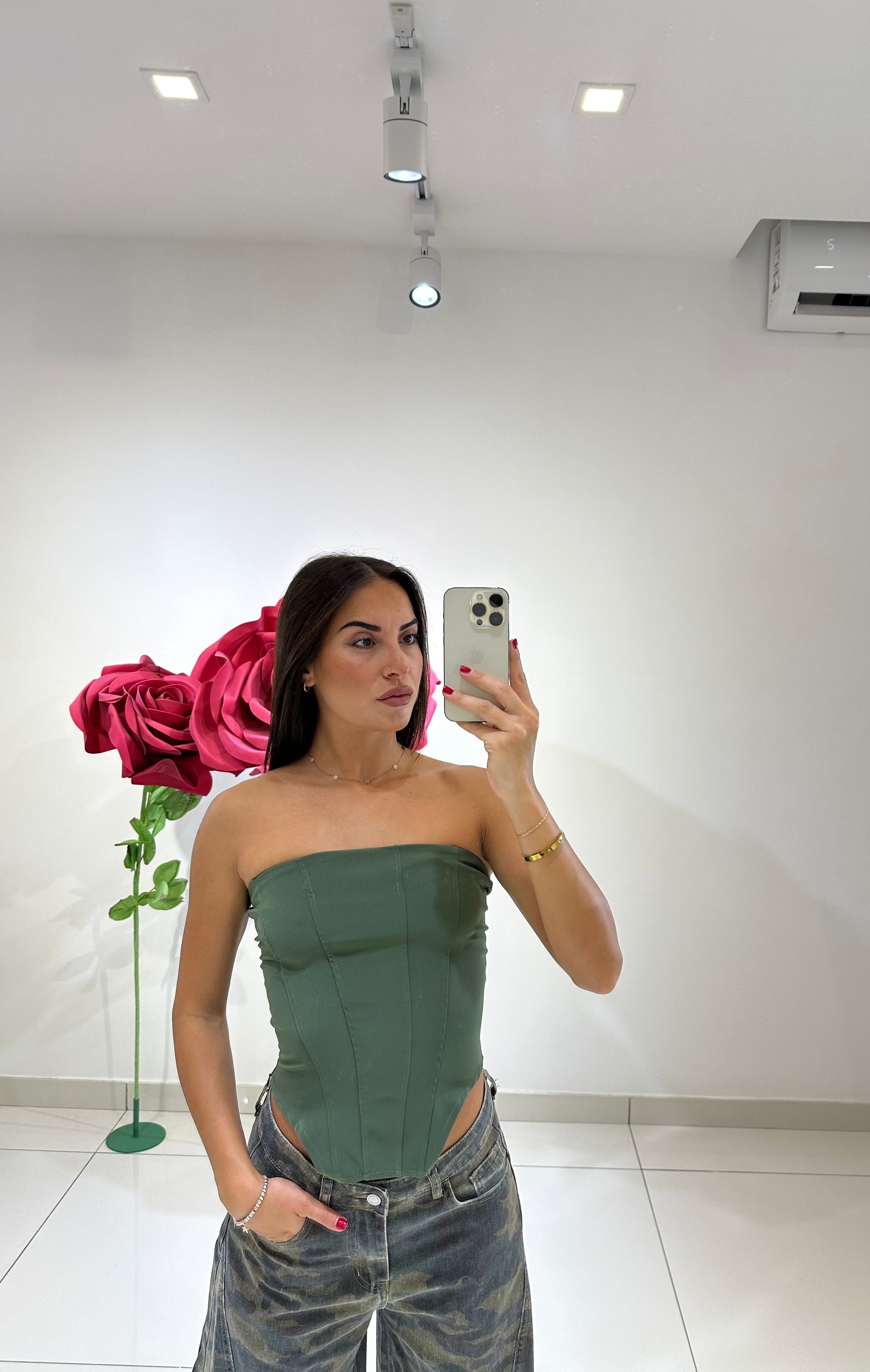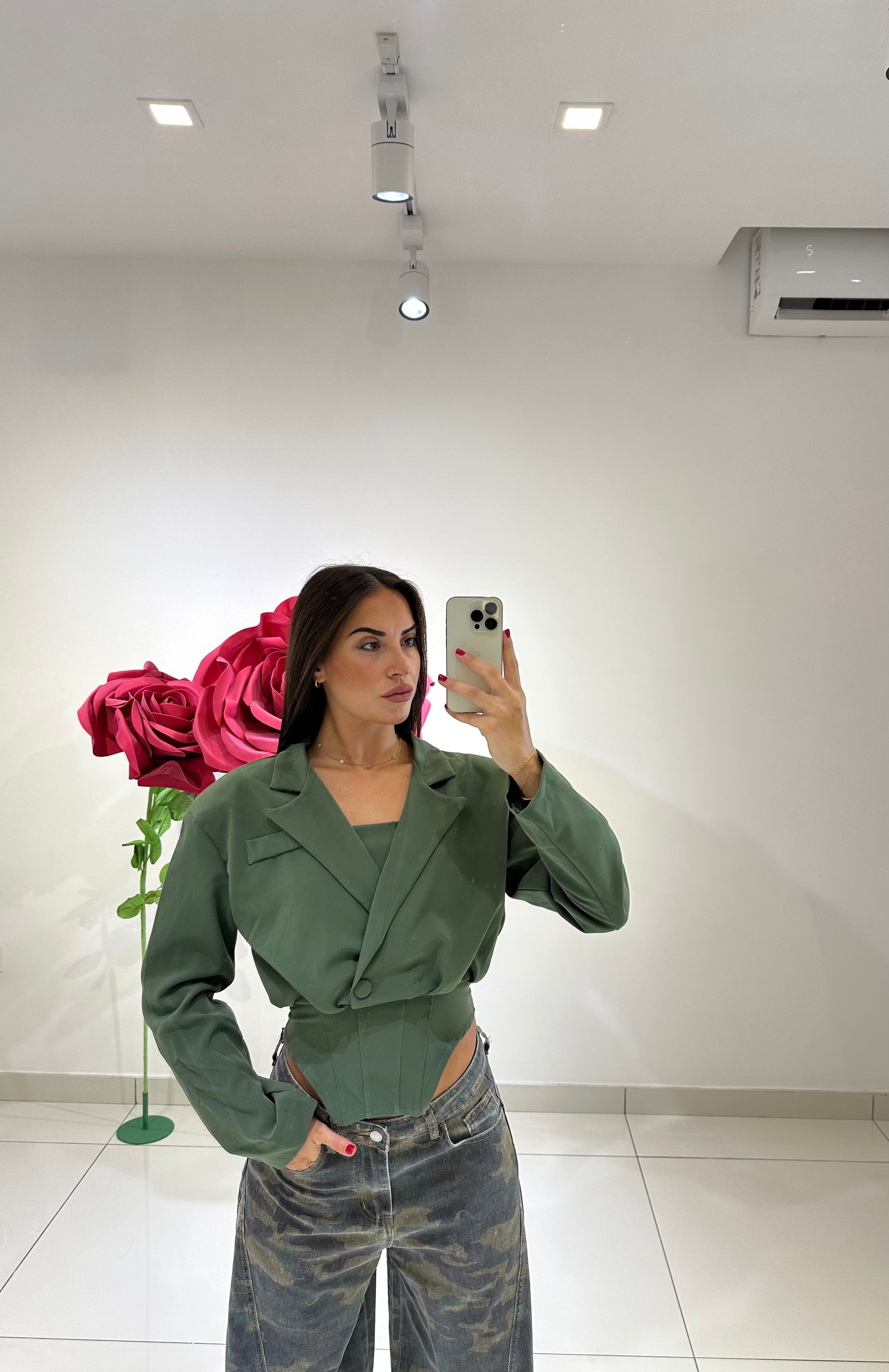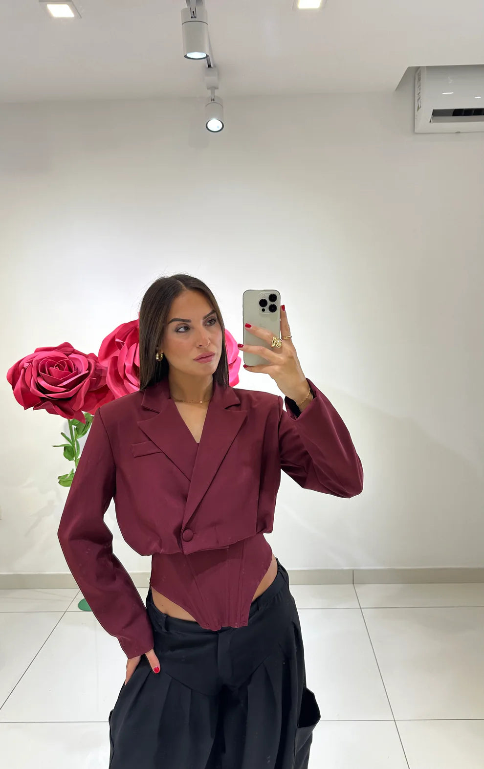 CORSET WITH STRINGS ON THE BACK, CROP JACKET WITH ELASTIC WAIST, LINED INSIDE AND PADDED STRAPS. IN VARIOUS COLORS