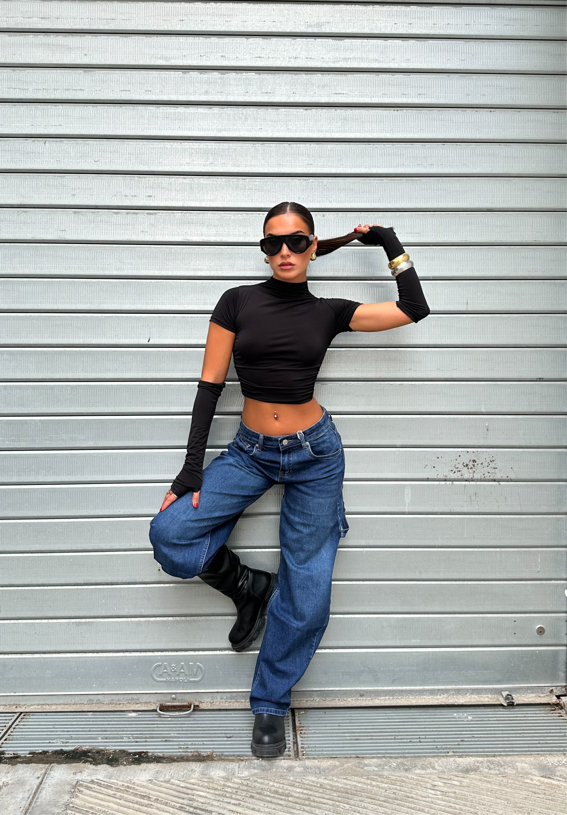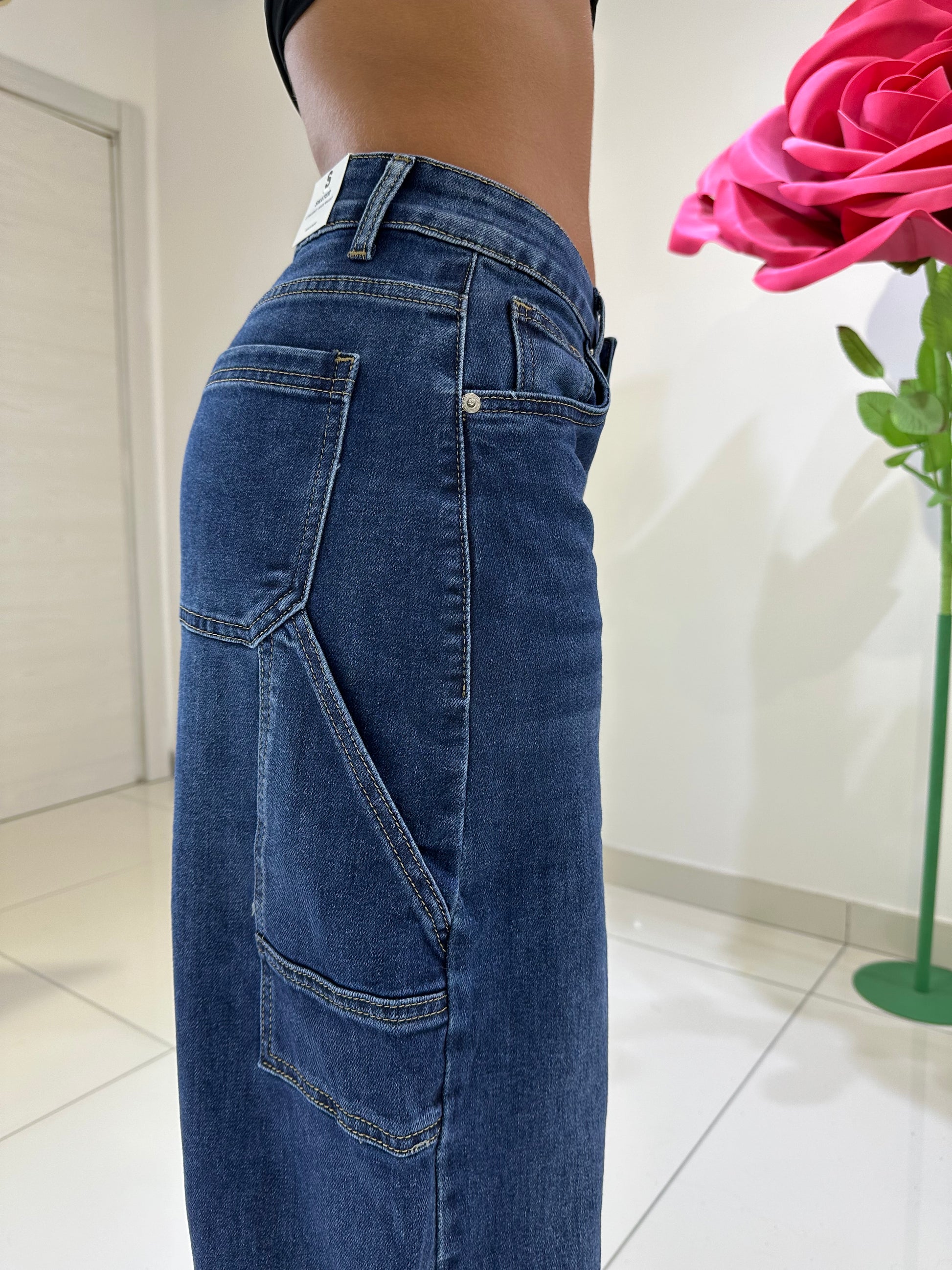 BAGGY JEANS LAVAGGIO SCURO, VESTIBILITÀ COMODA CON DETTAGLI AI LATI. VA A TAGLIE