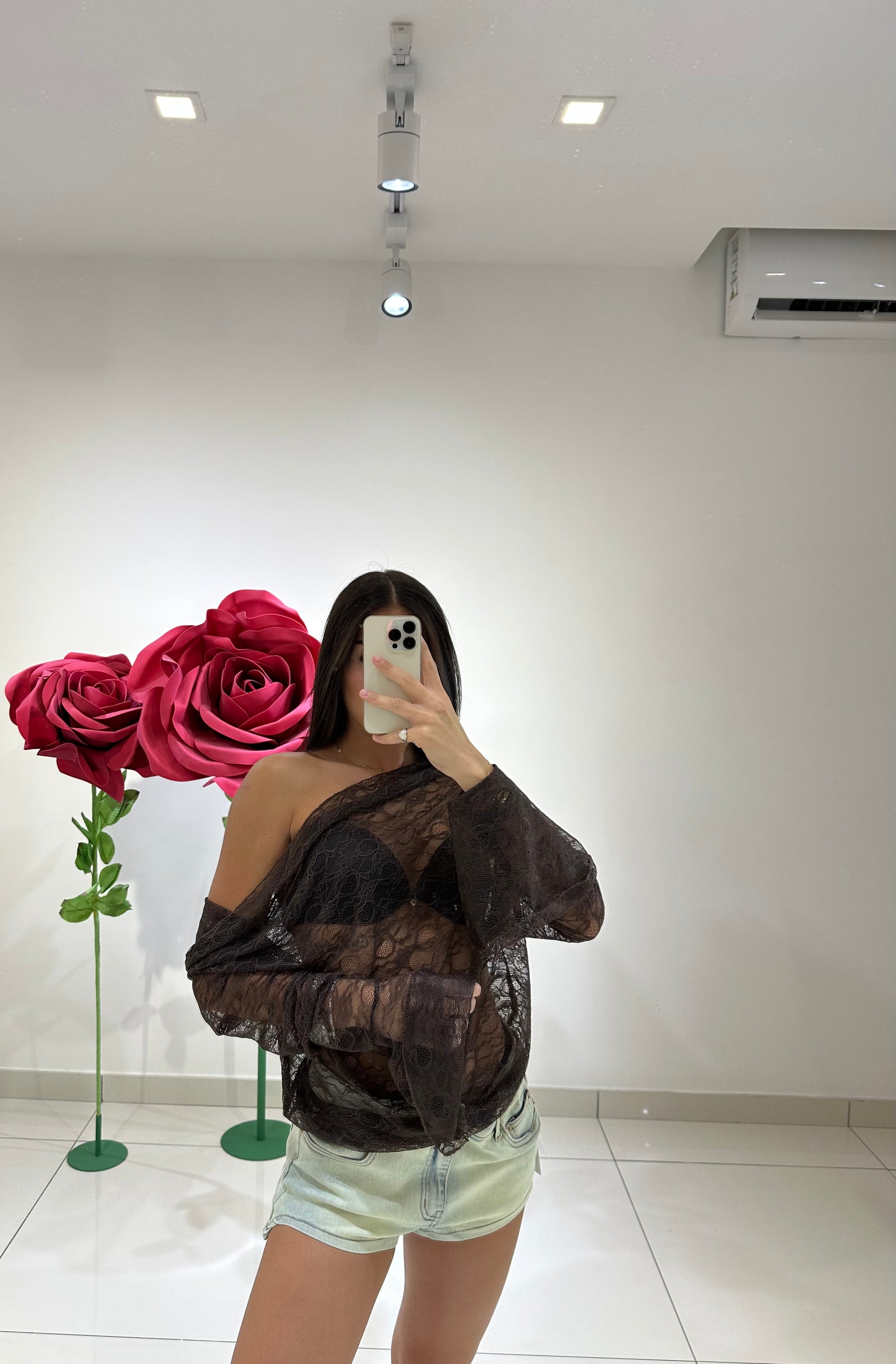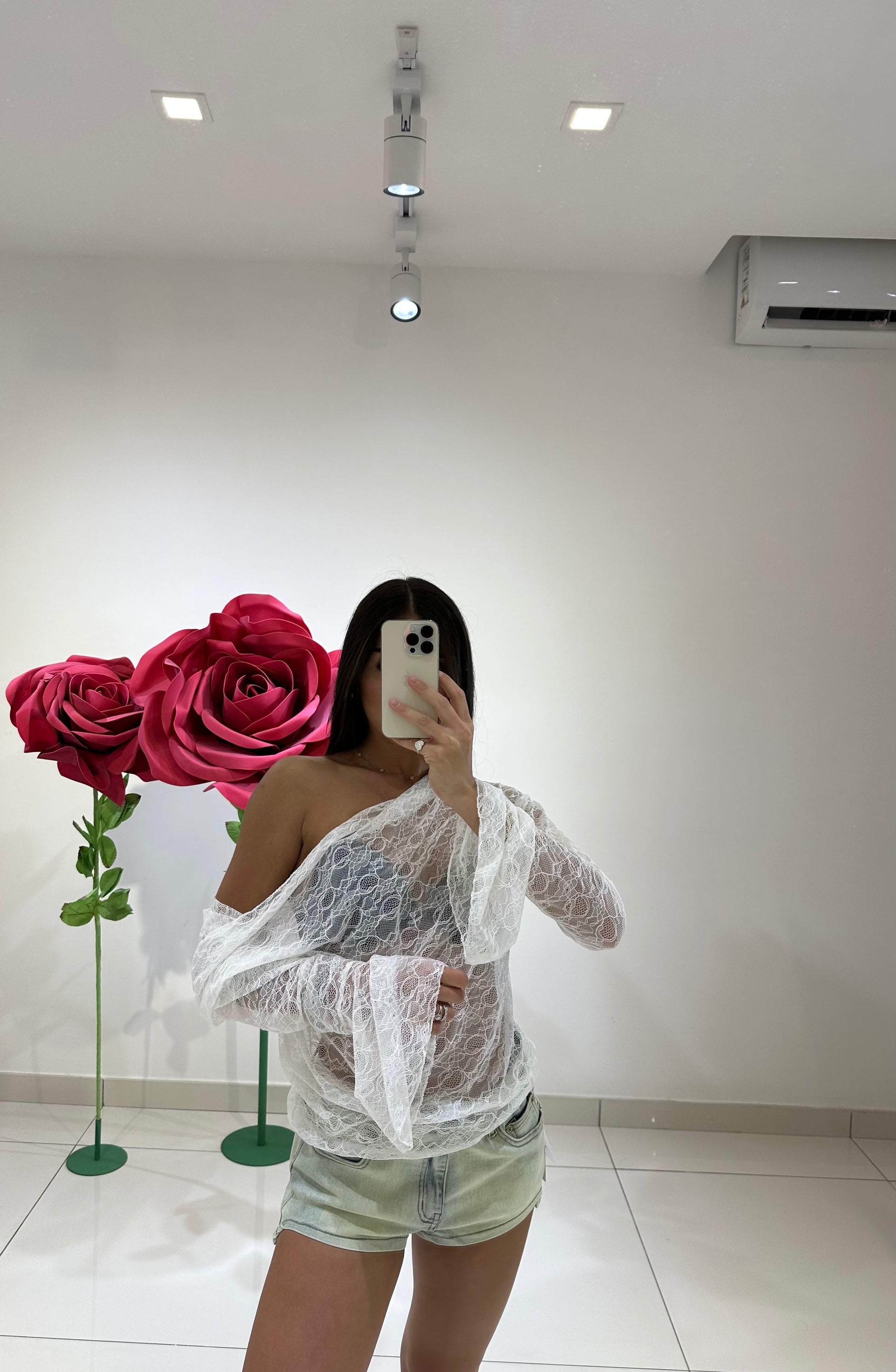 BLUSA IN PIZZO, SCOLLO MORBIDO MANICA LUNGA. IN VARI COLORI