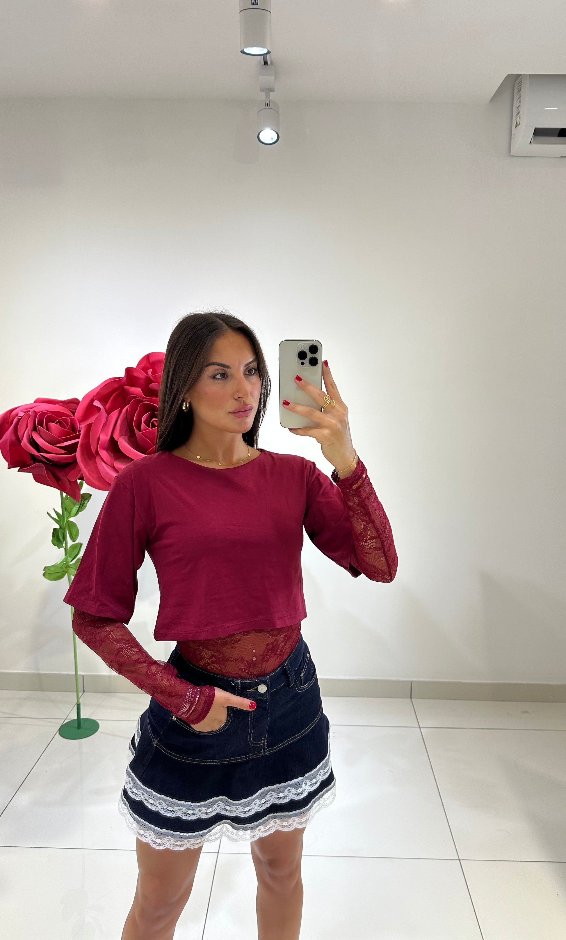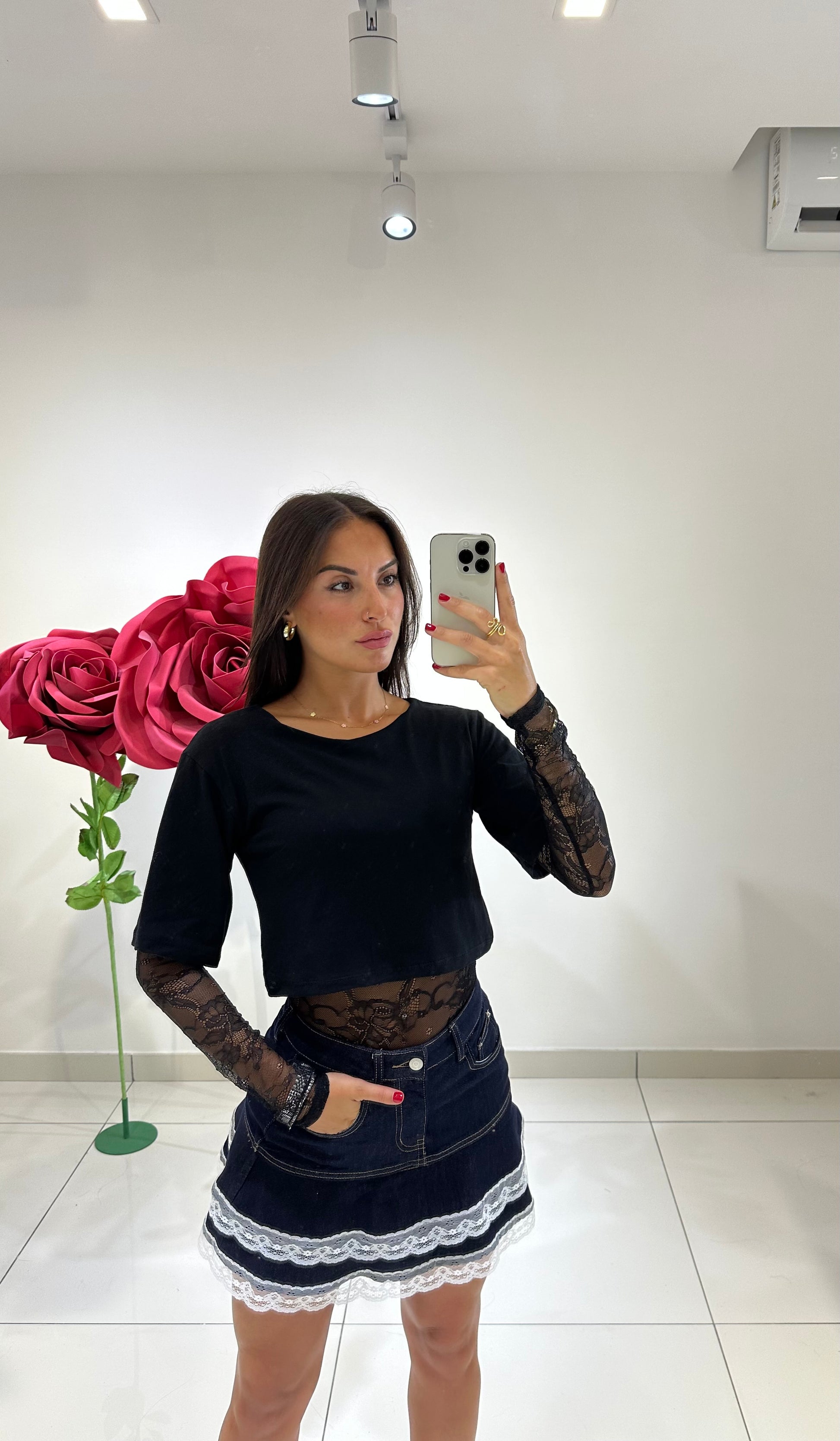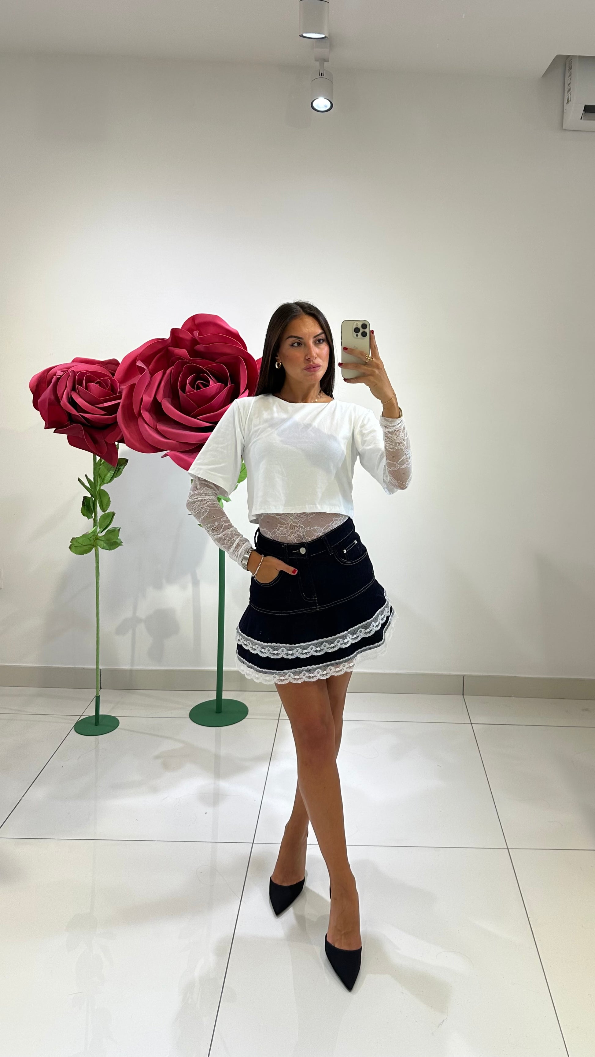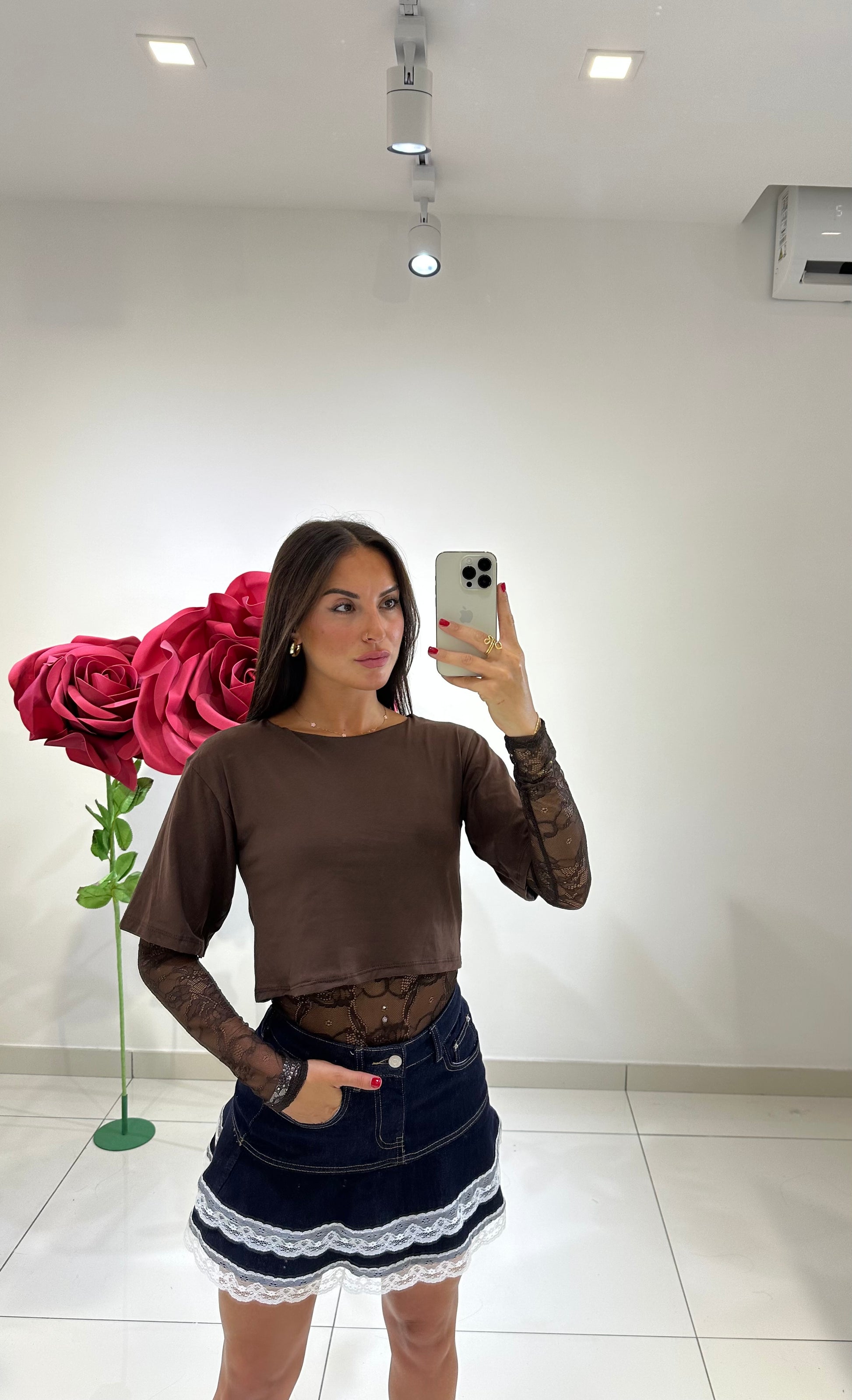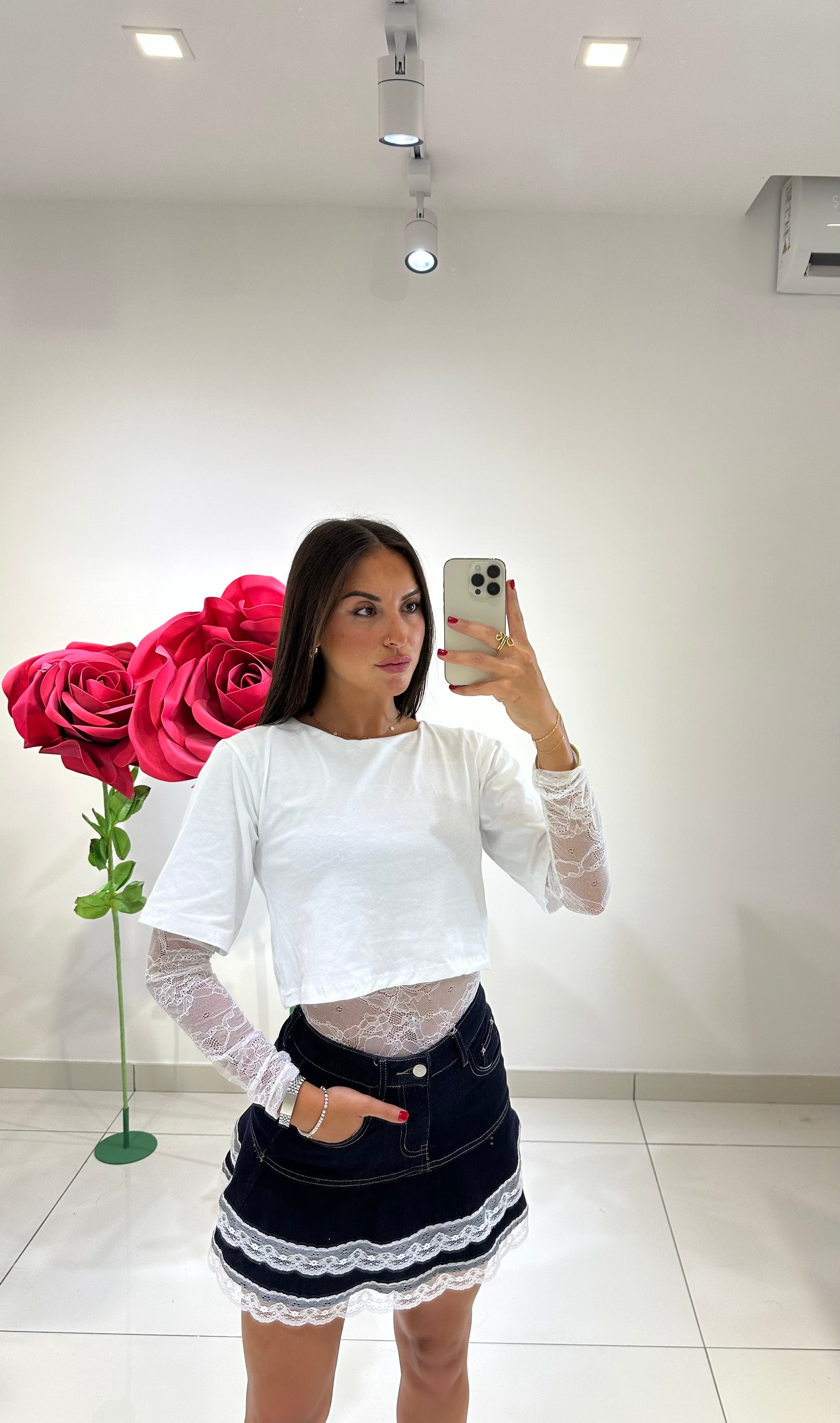 BODY IN PIZZO CON T-SHIRT CROP INCORPORATA. IN VARI COLORI