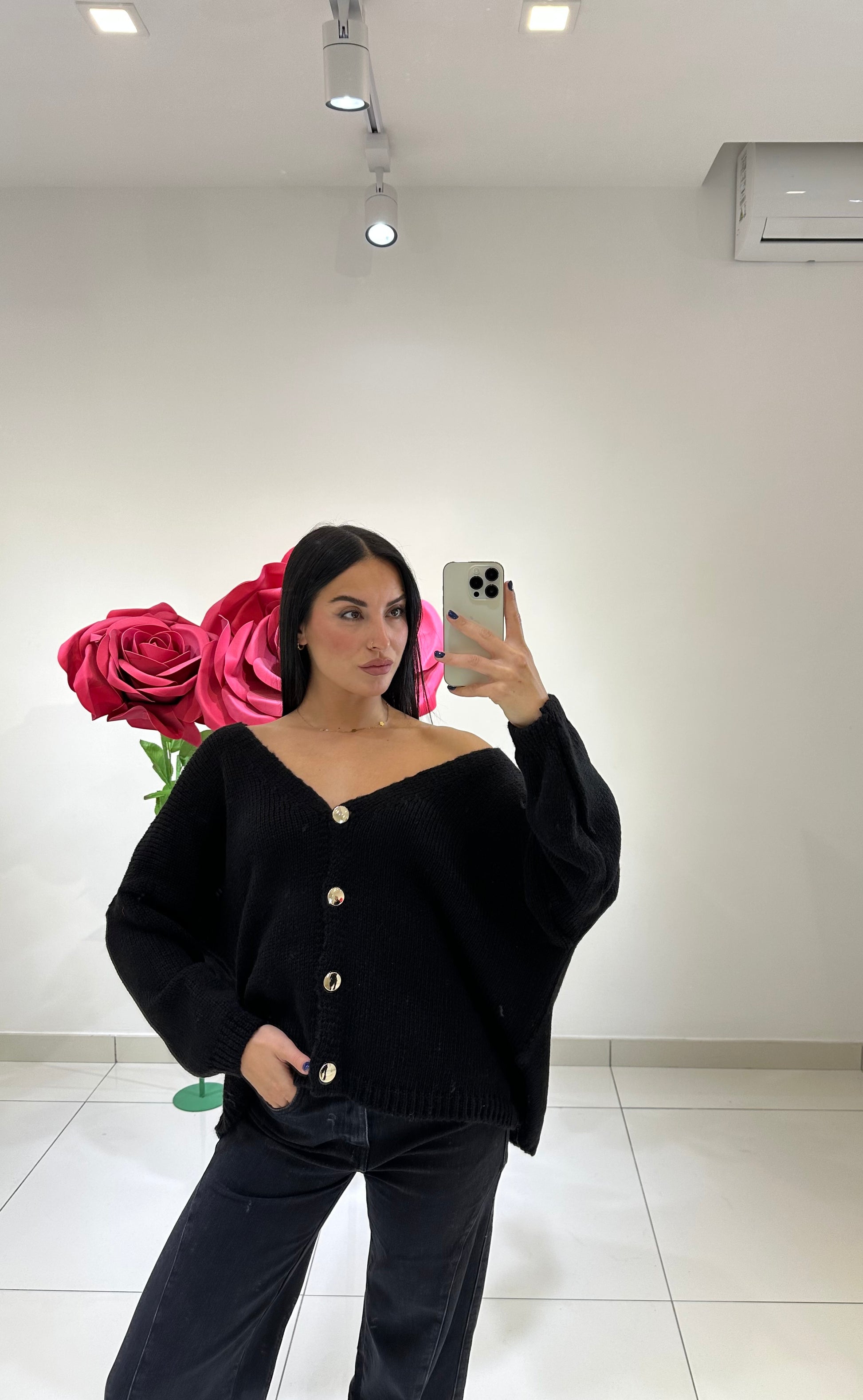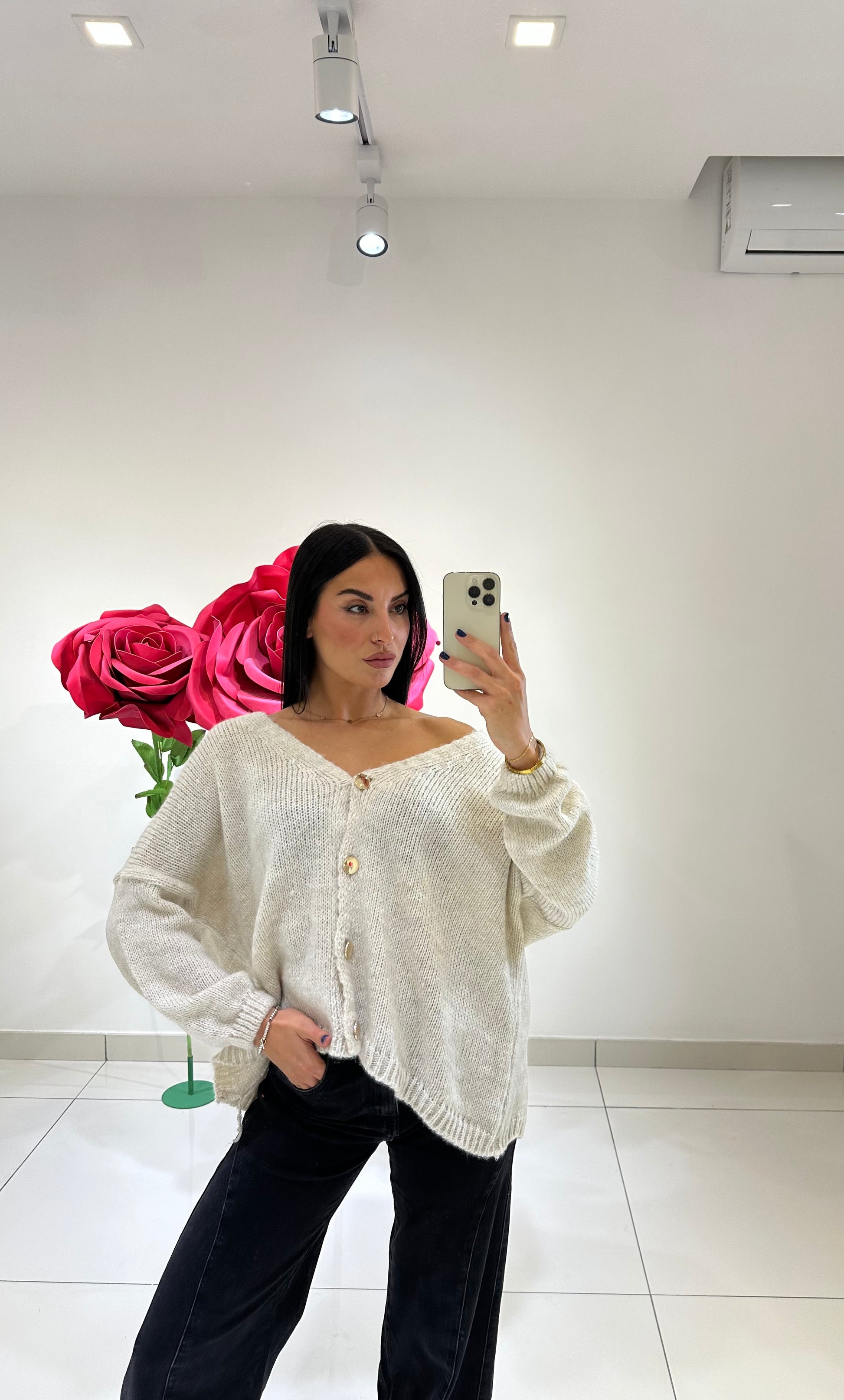 CARDIGAN IN LANA OVER, AMPIO SCOLLO E BOTTONI ORO. IN VARI COLORI
