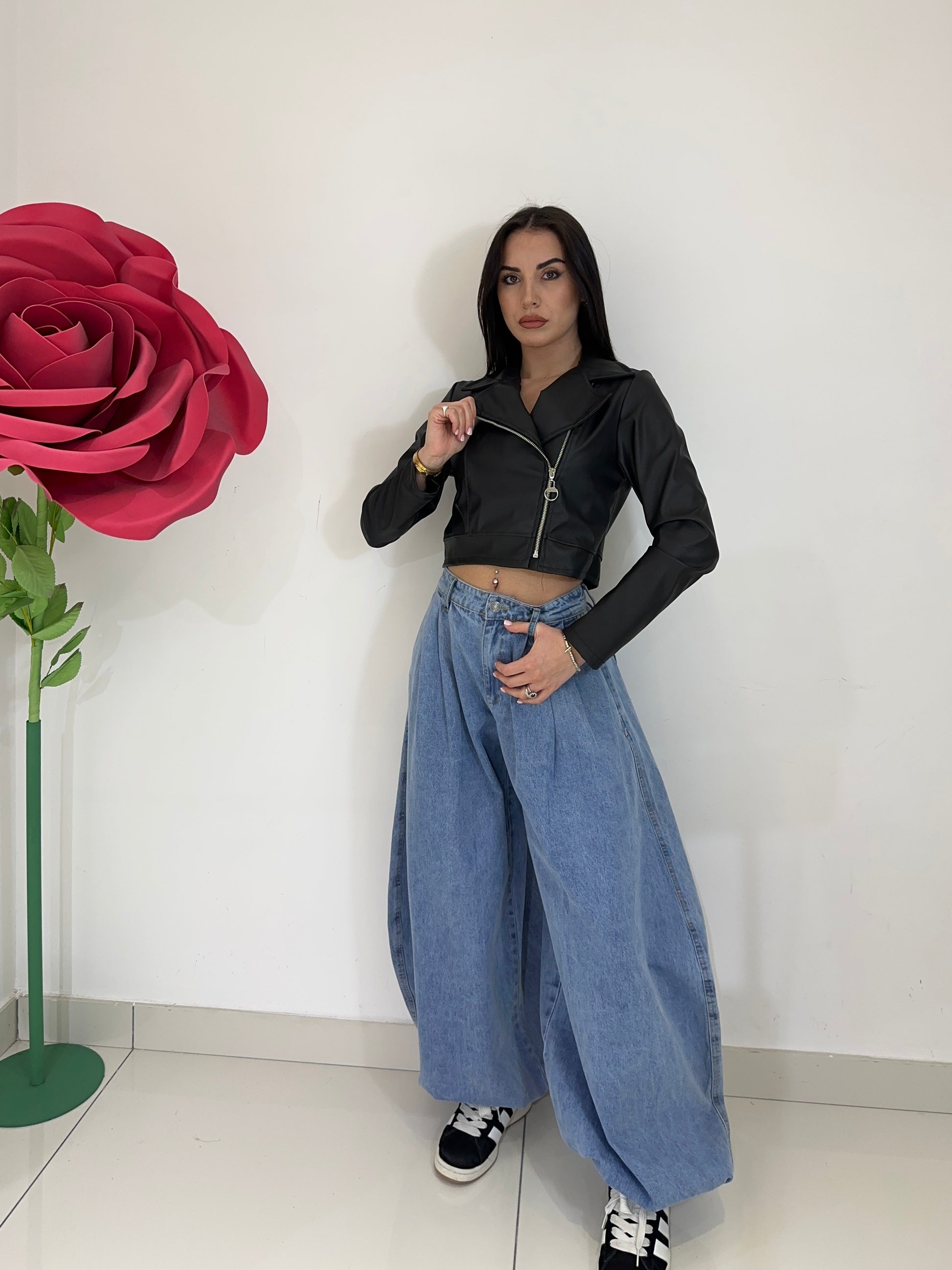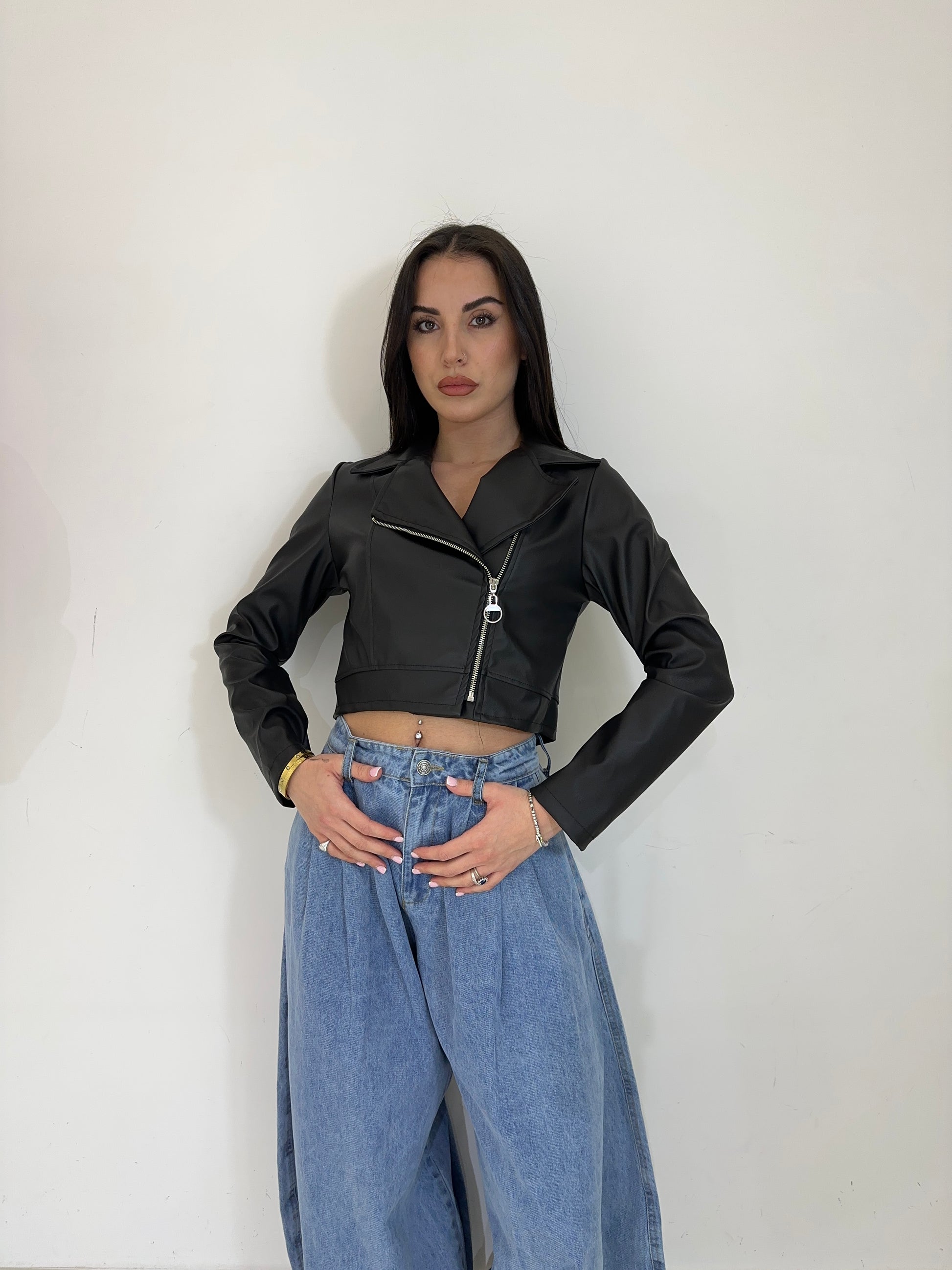 CHIODO ECOPELLE CROP CON CHIUSURA LATERALE. VA A TAGLIE