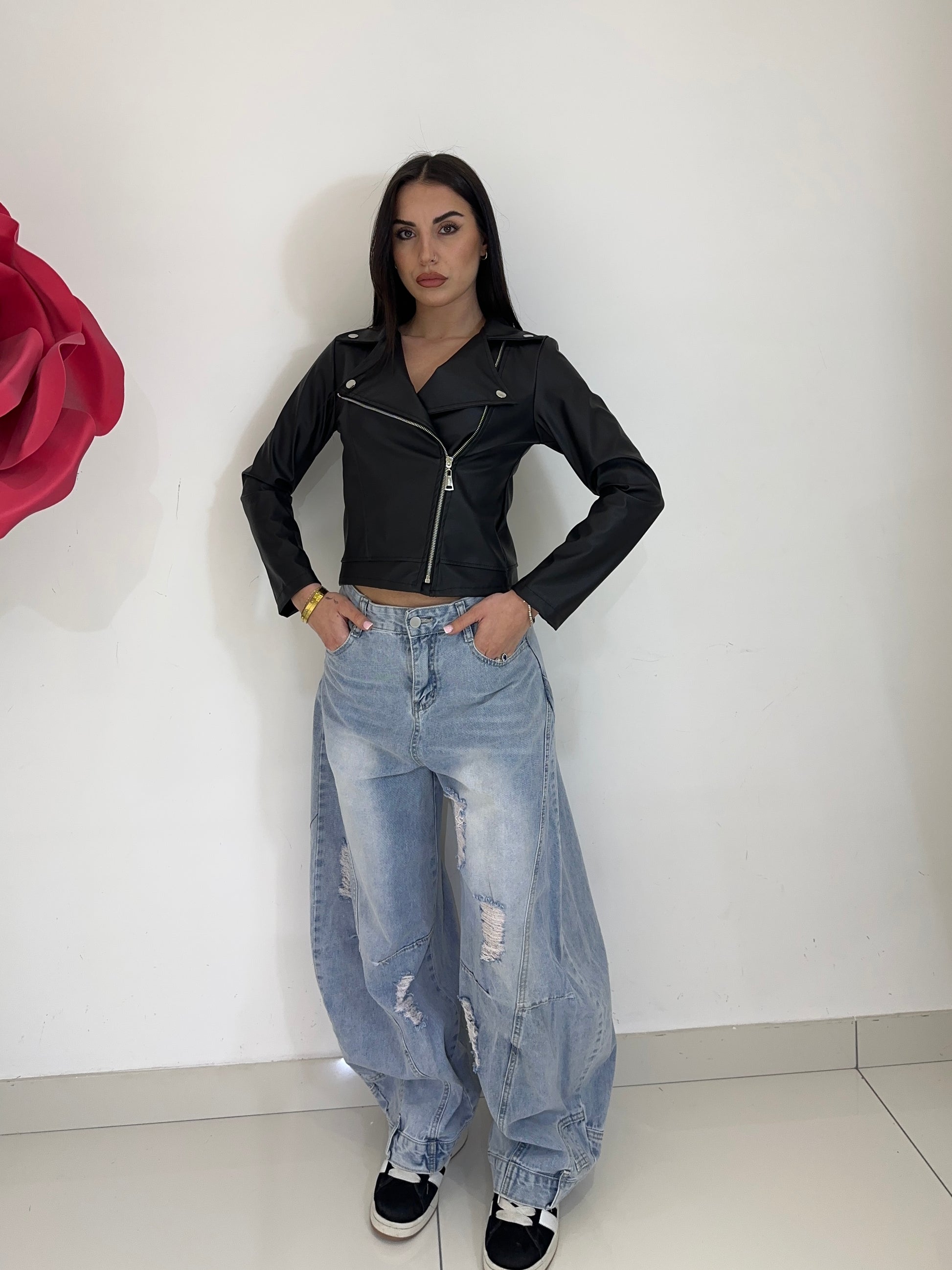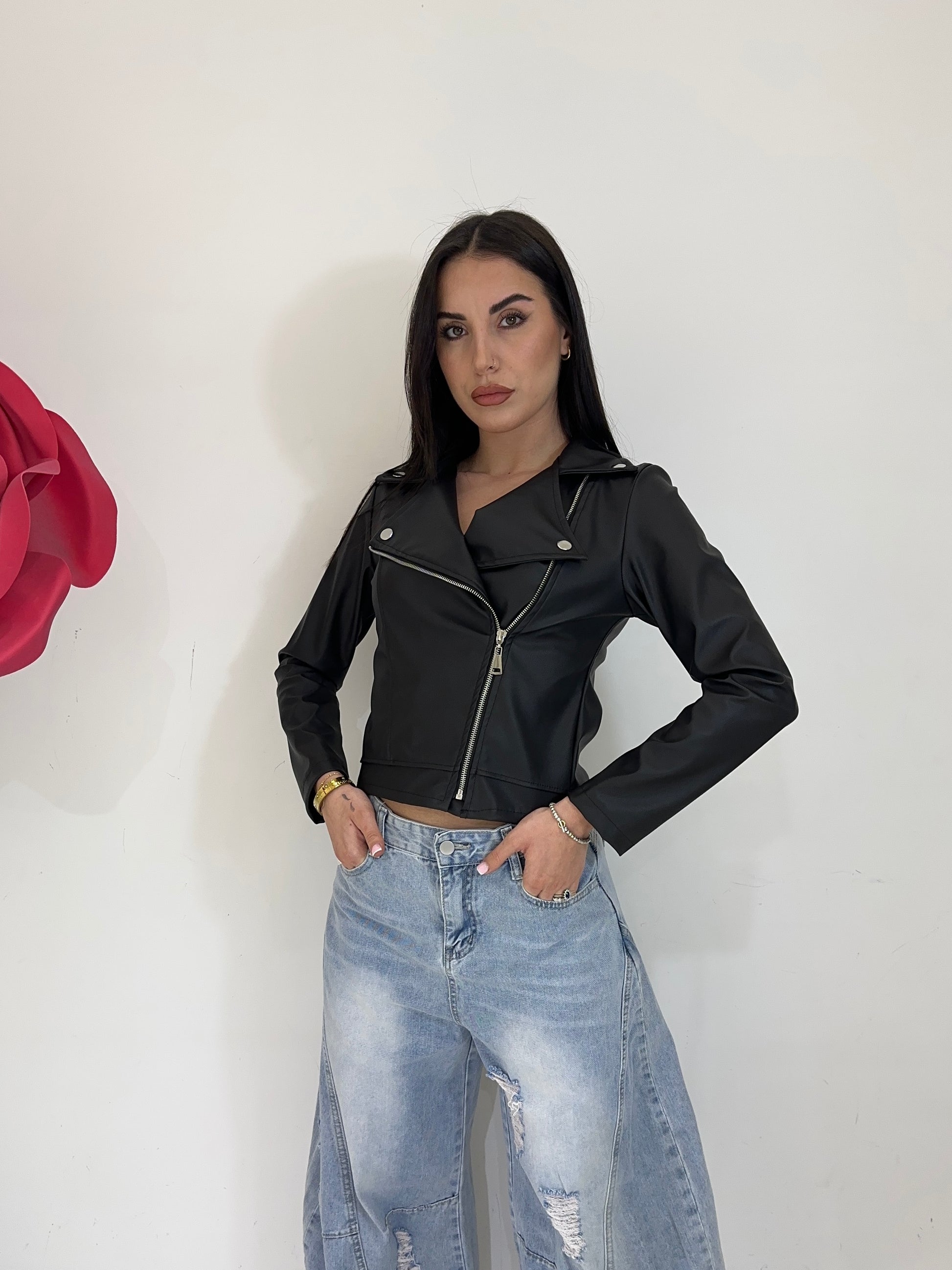 CHIODO IN ECOPELLE CROP, CON CHIUSURA LATERALE, VA A TAGLIE