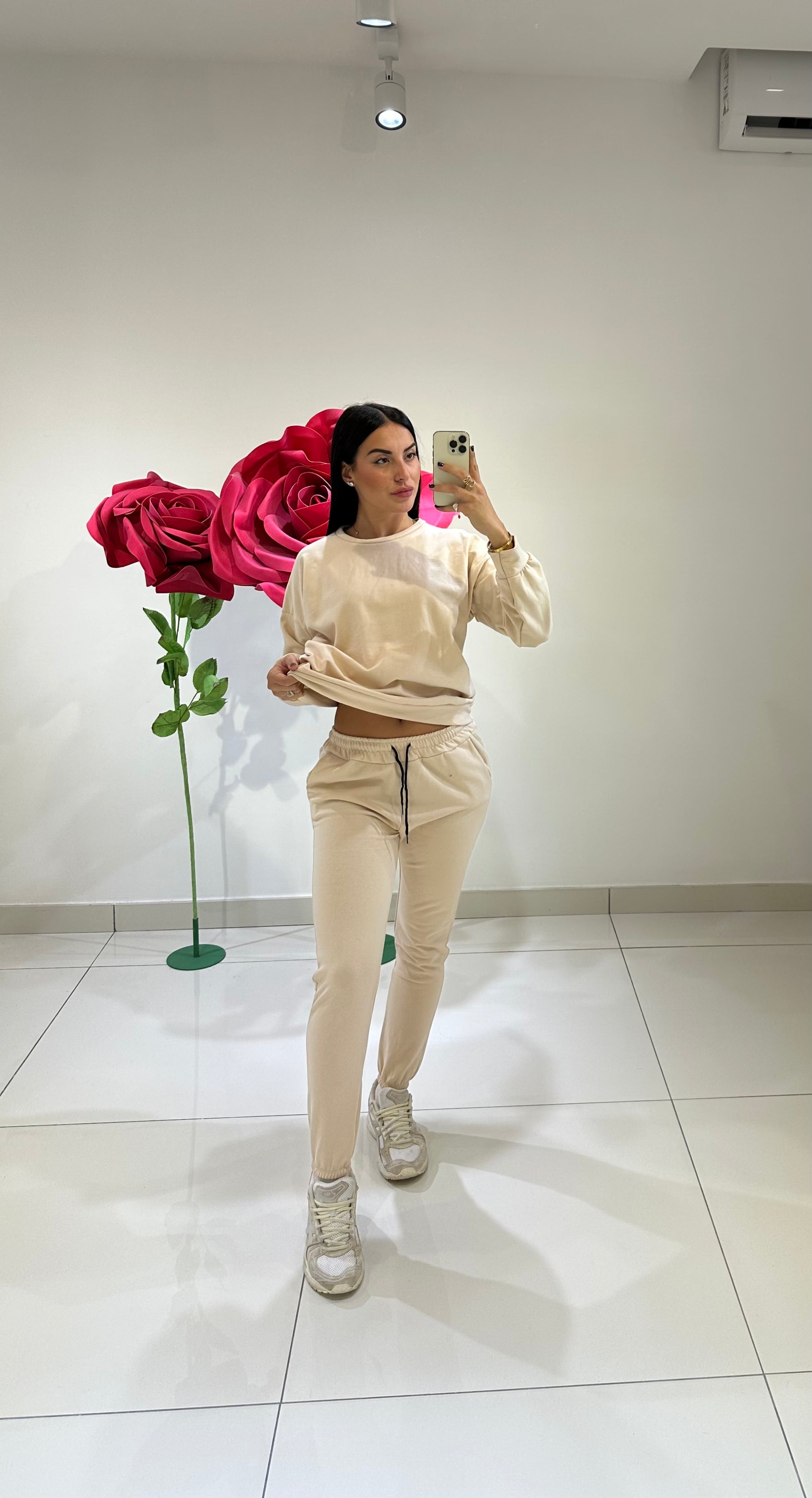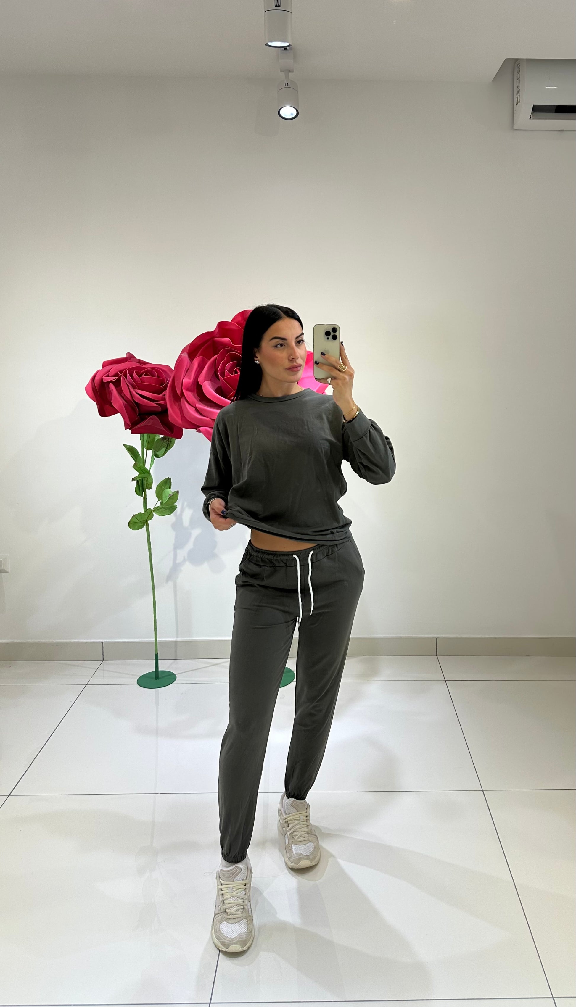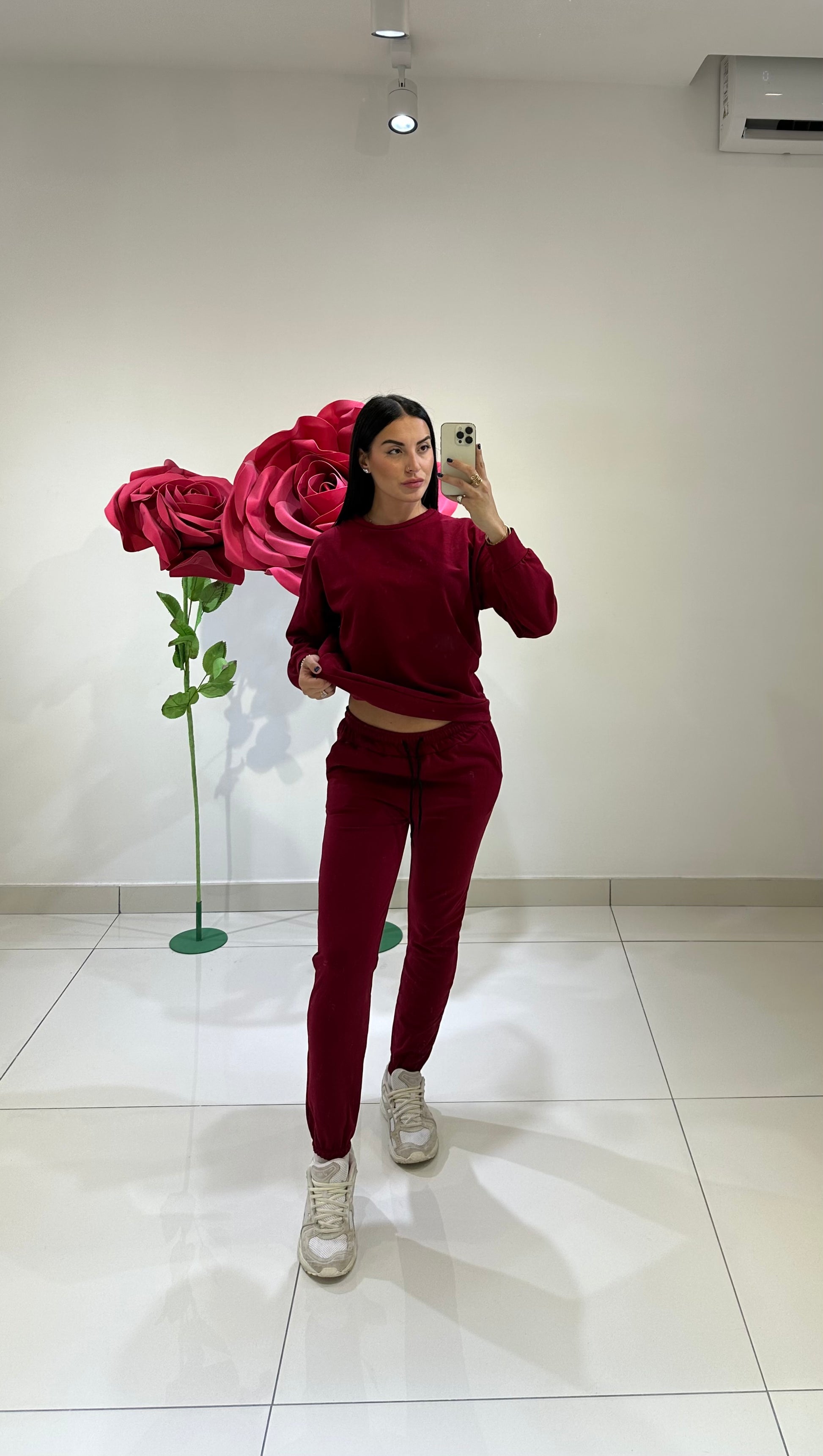COORDSET IN TINTA UNITA, FELPATO ALL’INTERNO, CON FELPA OVER E PANTALONE CON ELASTICO IN VITA E ALLA CAVIGLIA. IN VARI COLORI