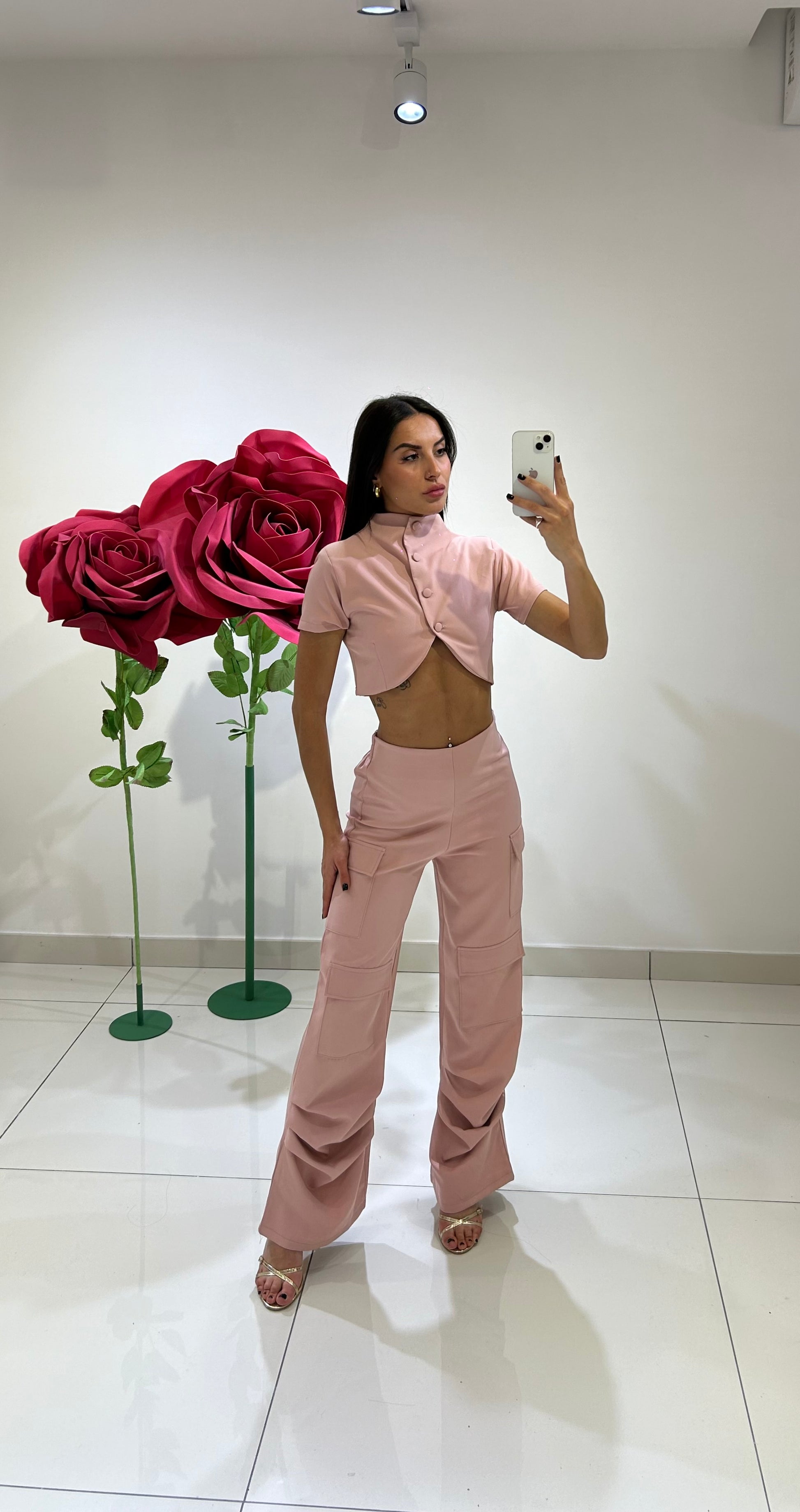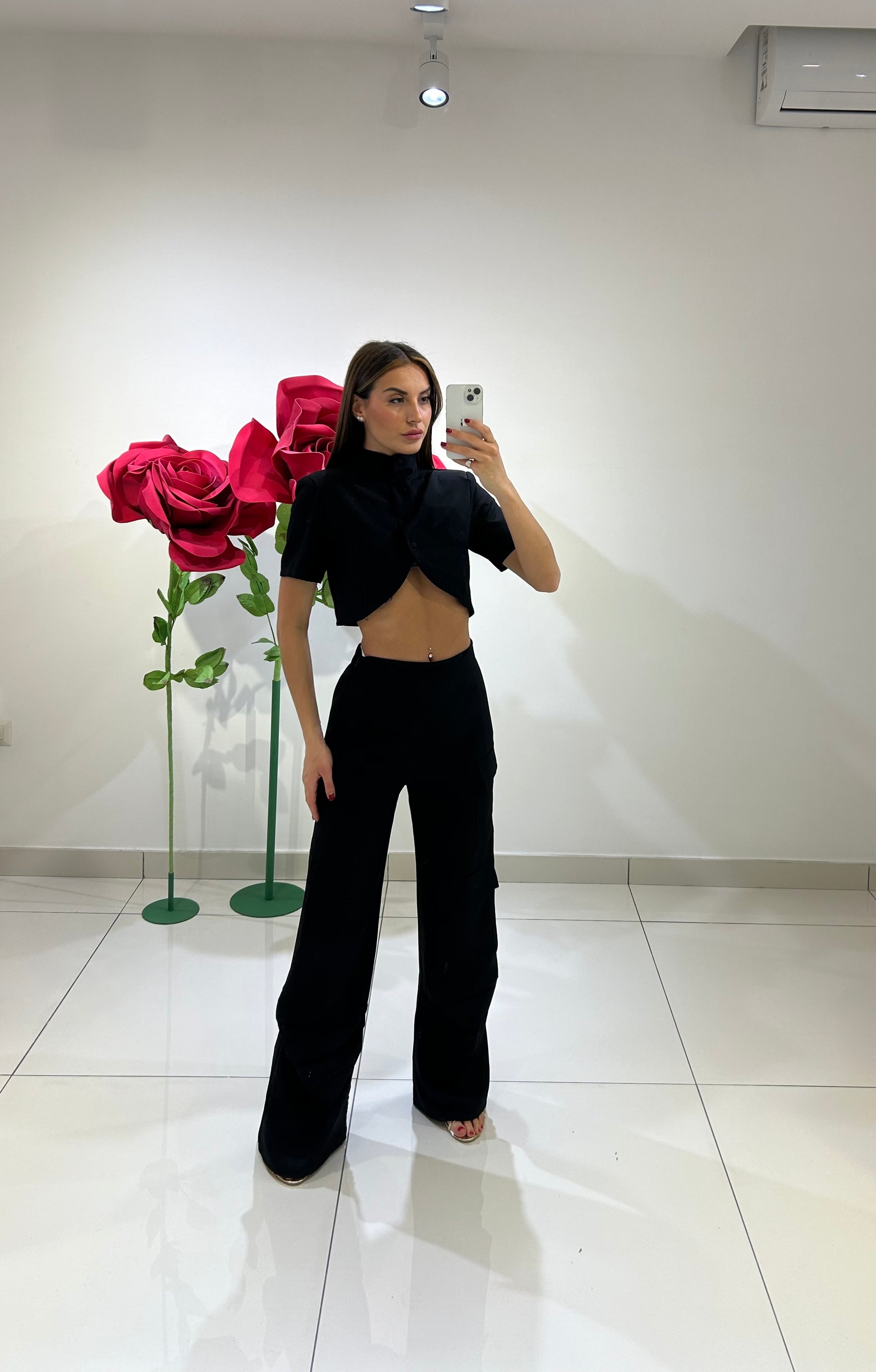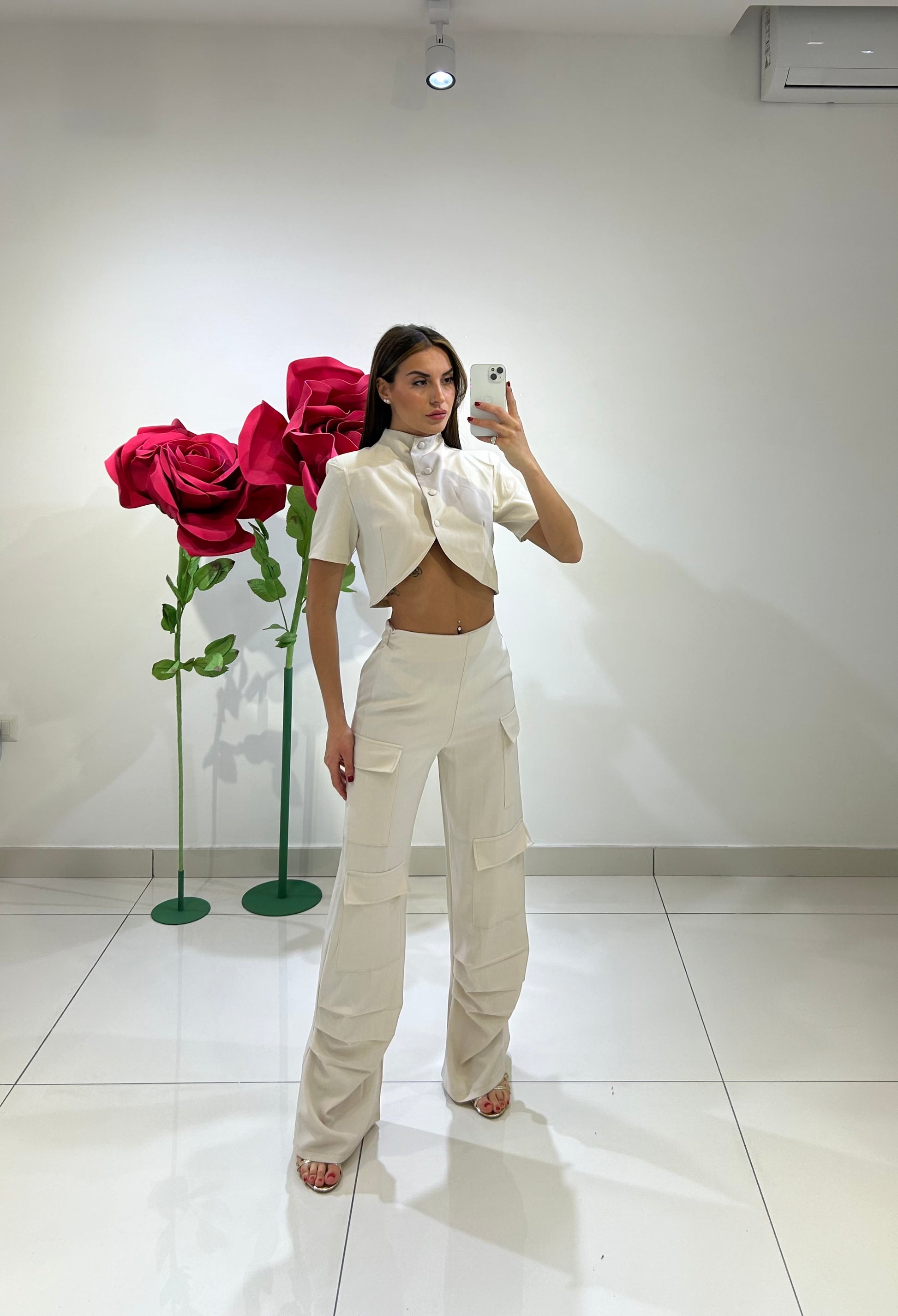 COORDINATO COMPOSTO DA GIACCA CROP E PANTALONE CARGO, TAGLIA UNICA